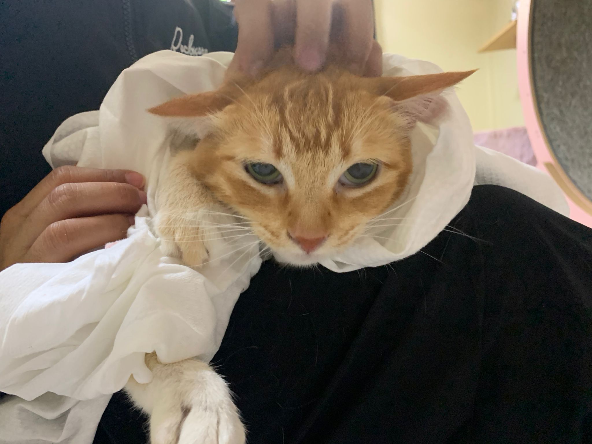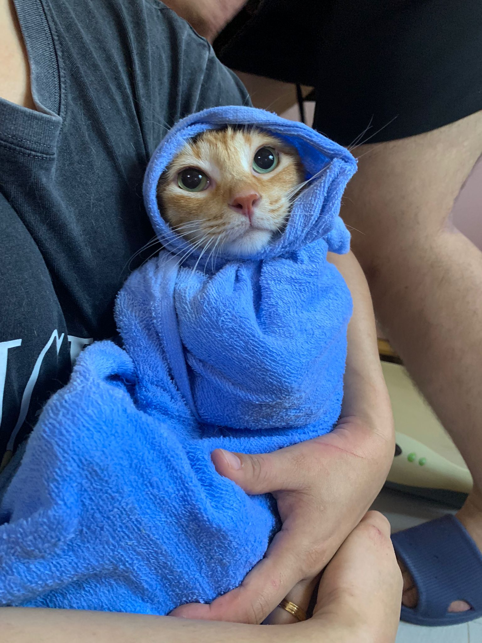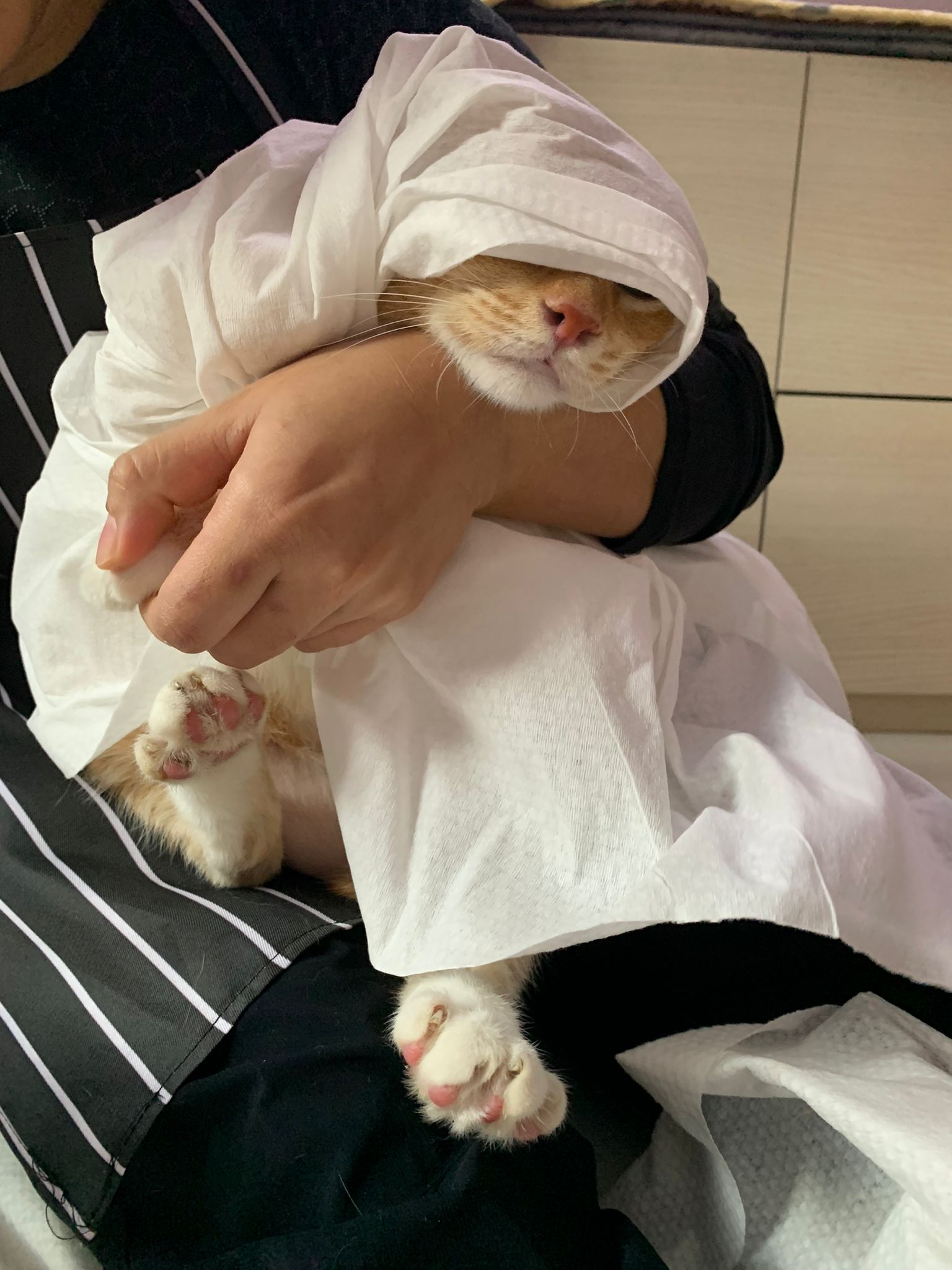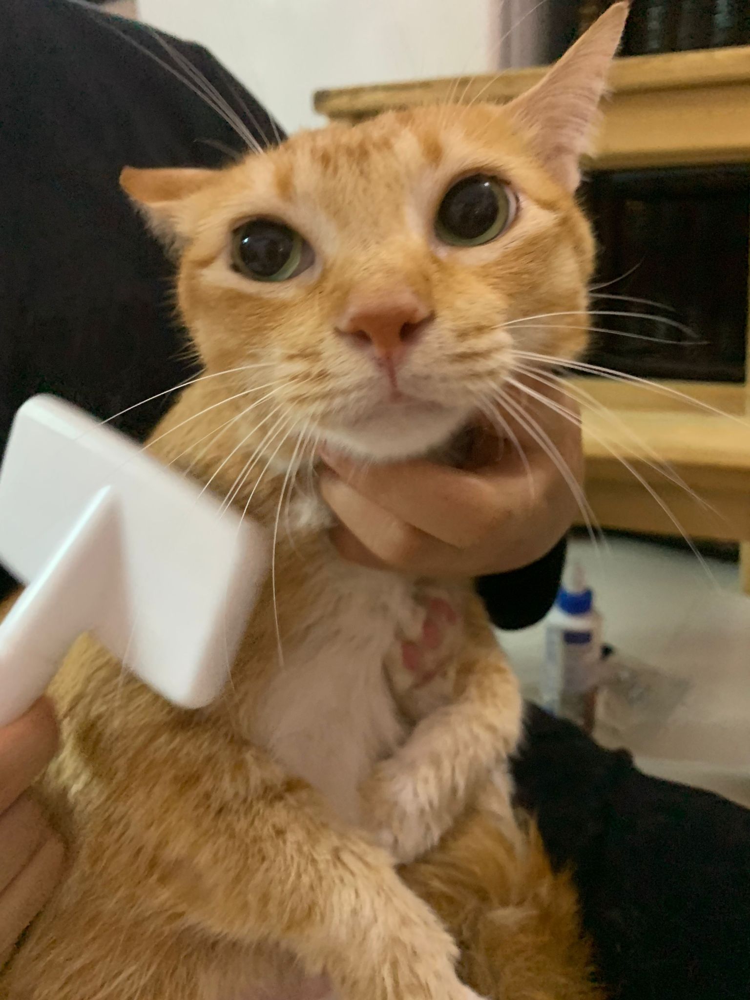 10am+: corner till one side, didn’t manage to get her into carrier. Told her clearly poke m/c then come back le. I sayang her back while my cardboard protect me. Feel her spine. Sigh she is thinner le. Old le. I say today if I didn’t get u I’ll bringing u to Ps then there I will do more bloods and treatment ah. Eventually manage to corner her after sunshine is caught. She walk into carrier. At clinic, come out towel cover n she is steady poke and go back carrier easy. 5.22kg – drop 210g in 20 months.