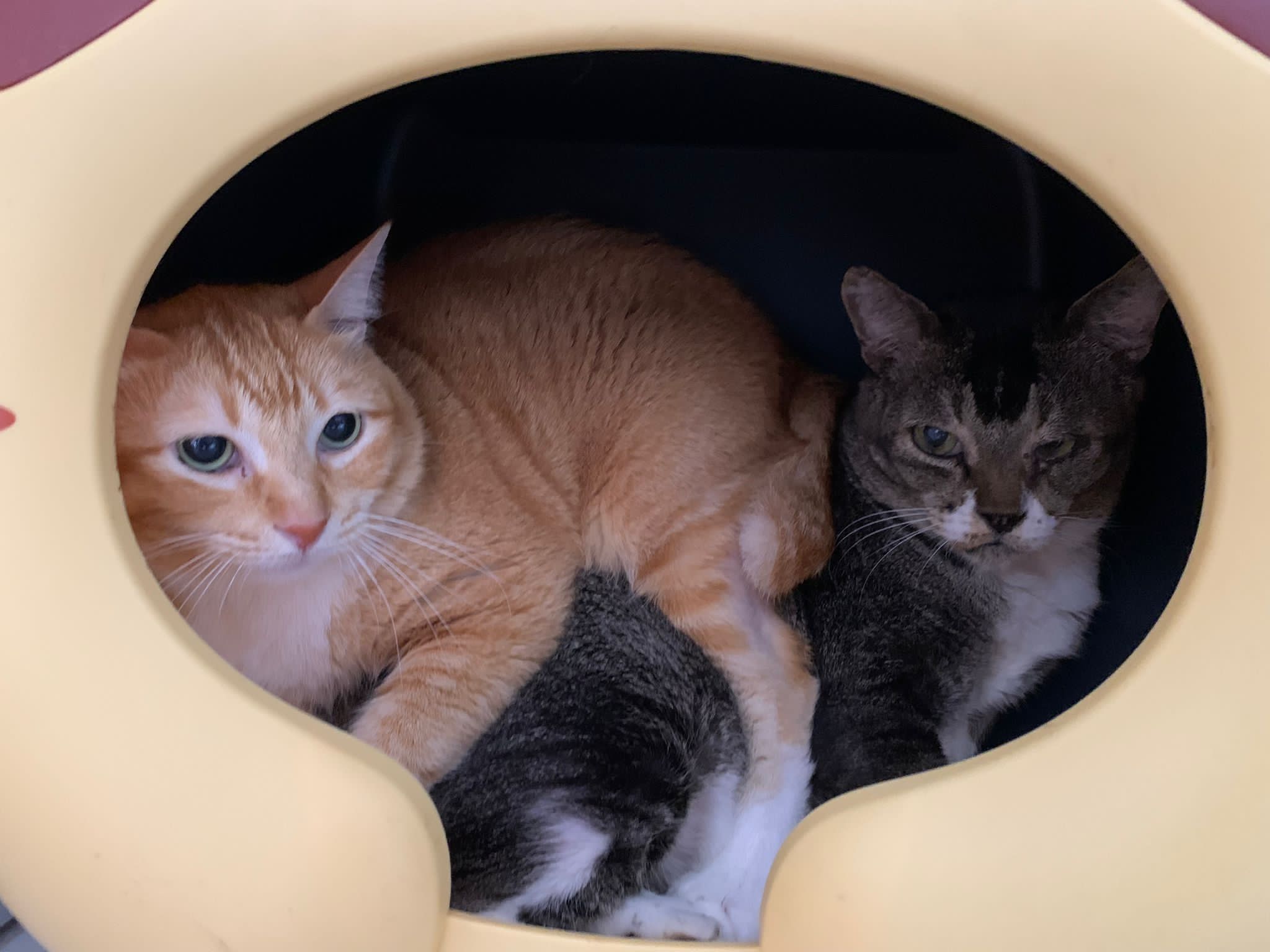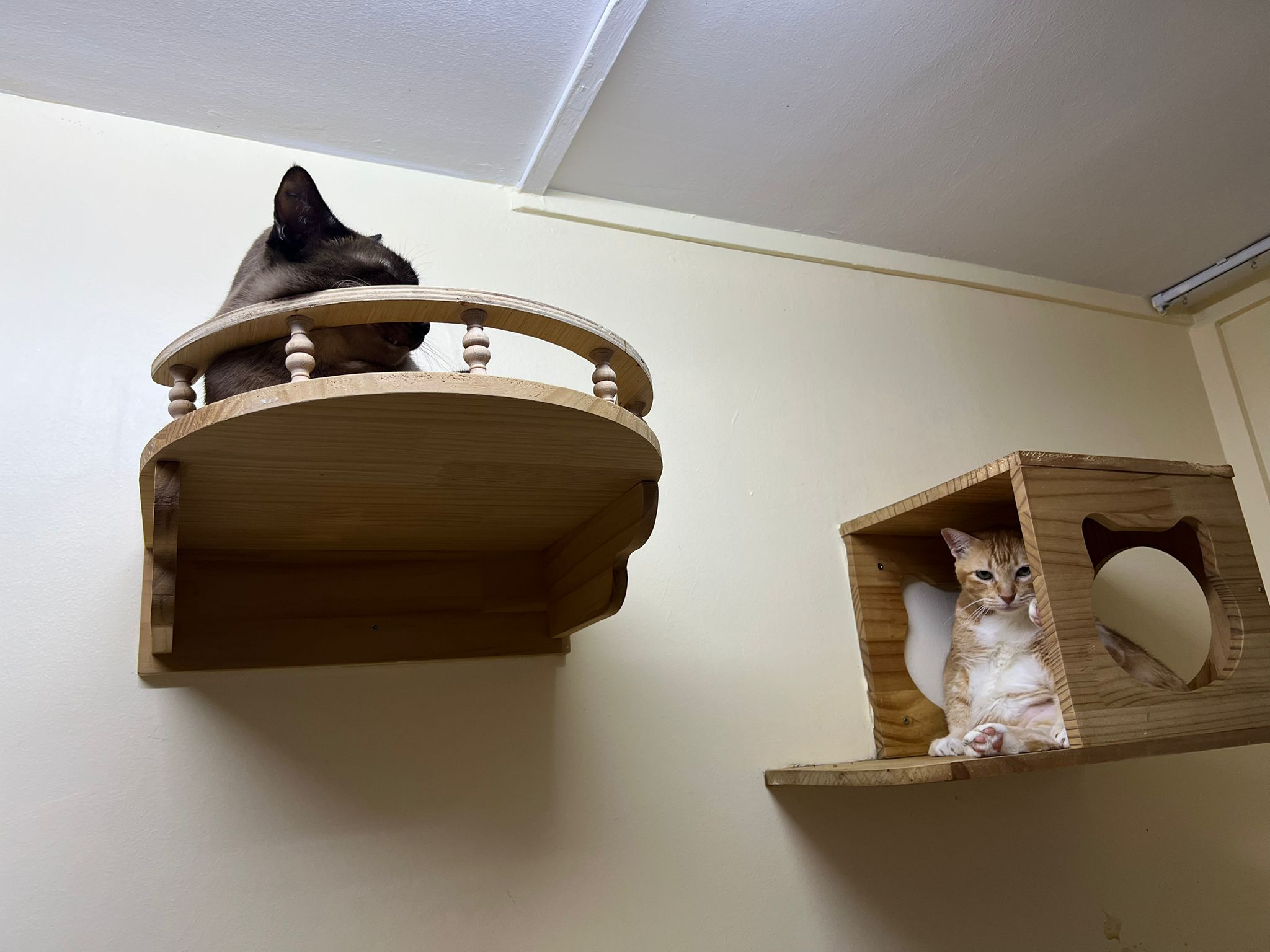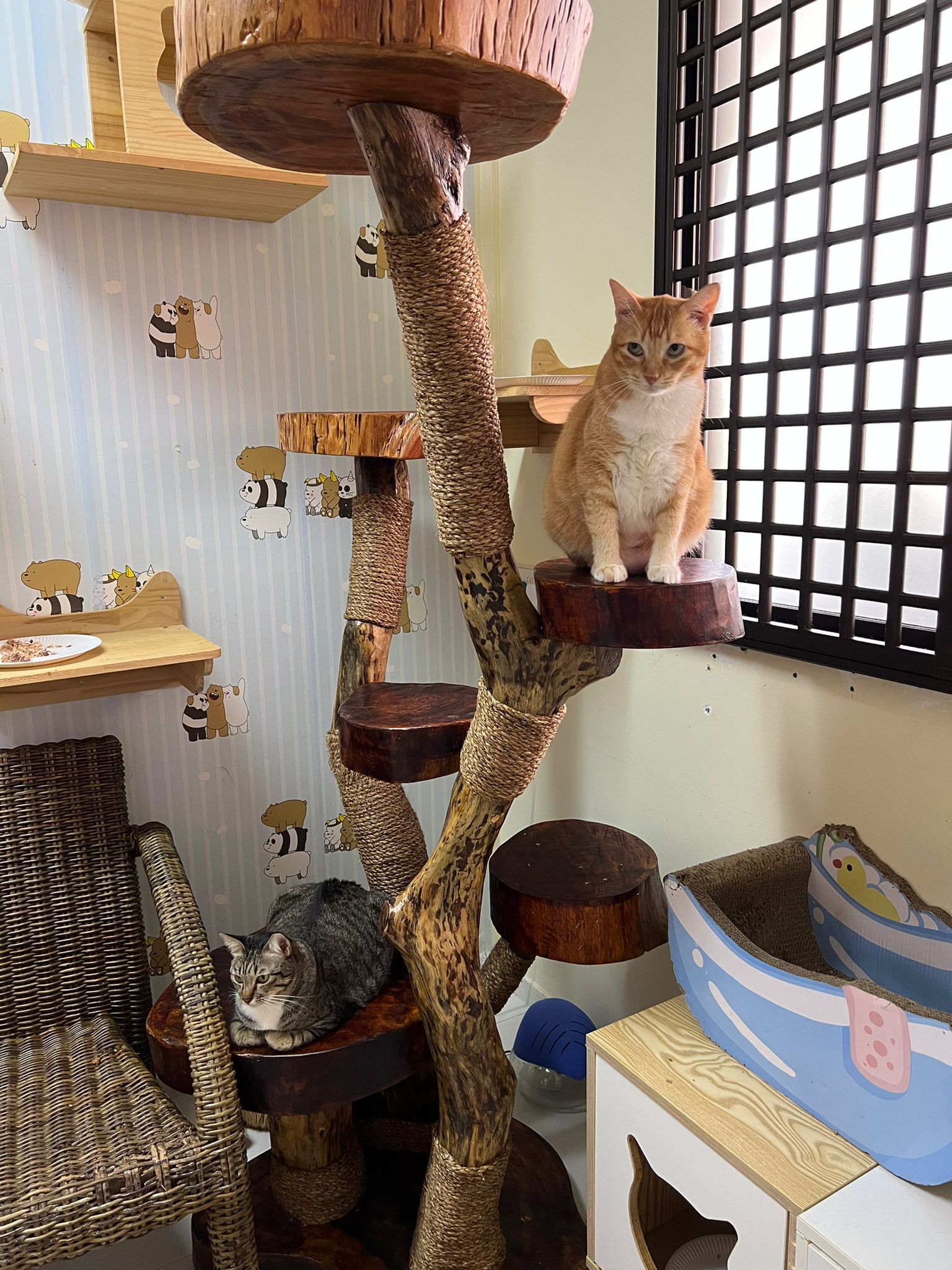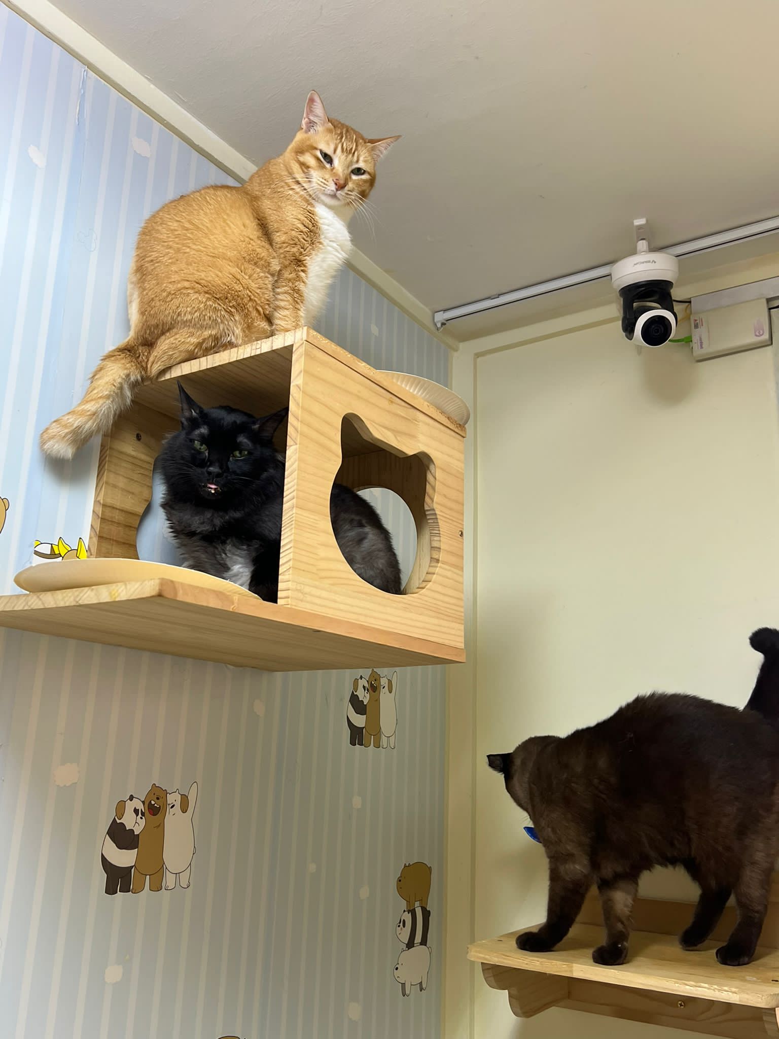 • insist on squeezing w dusty on the cat platform w dusty angry n hissing, but end up both girls calm down and rest tgt laze ard