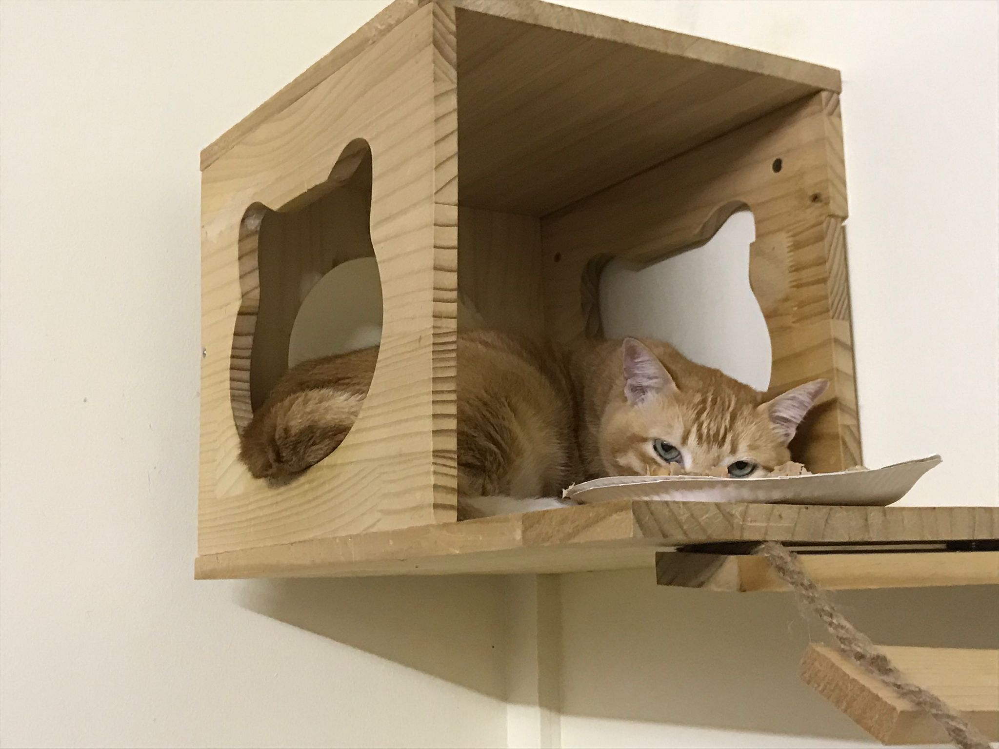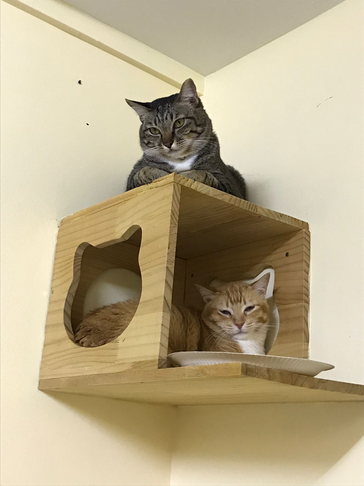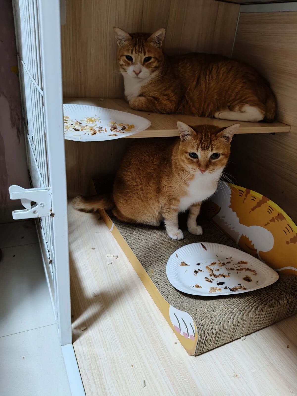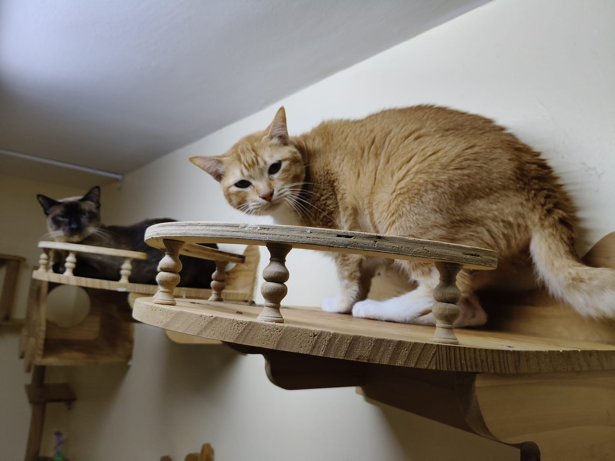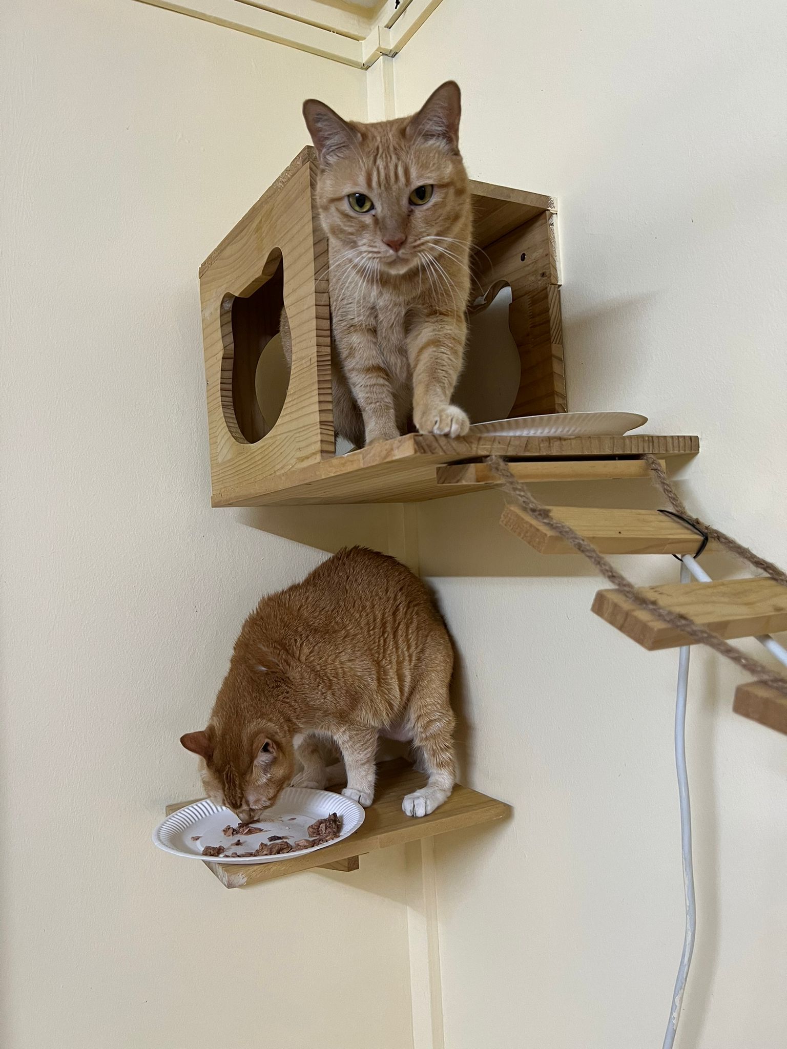 • insist on squeezing w dusty on the cat platform w dusty angry n hissing, but end up both girls calm down and rest tgt laze ard