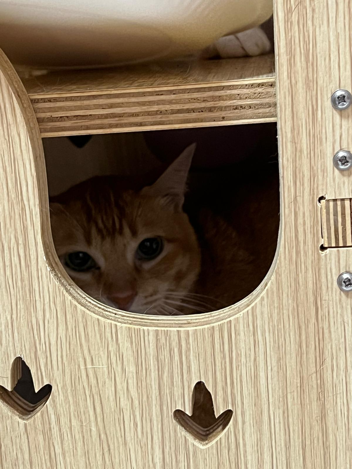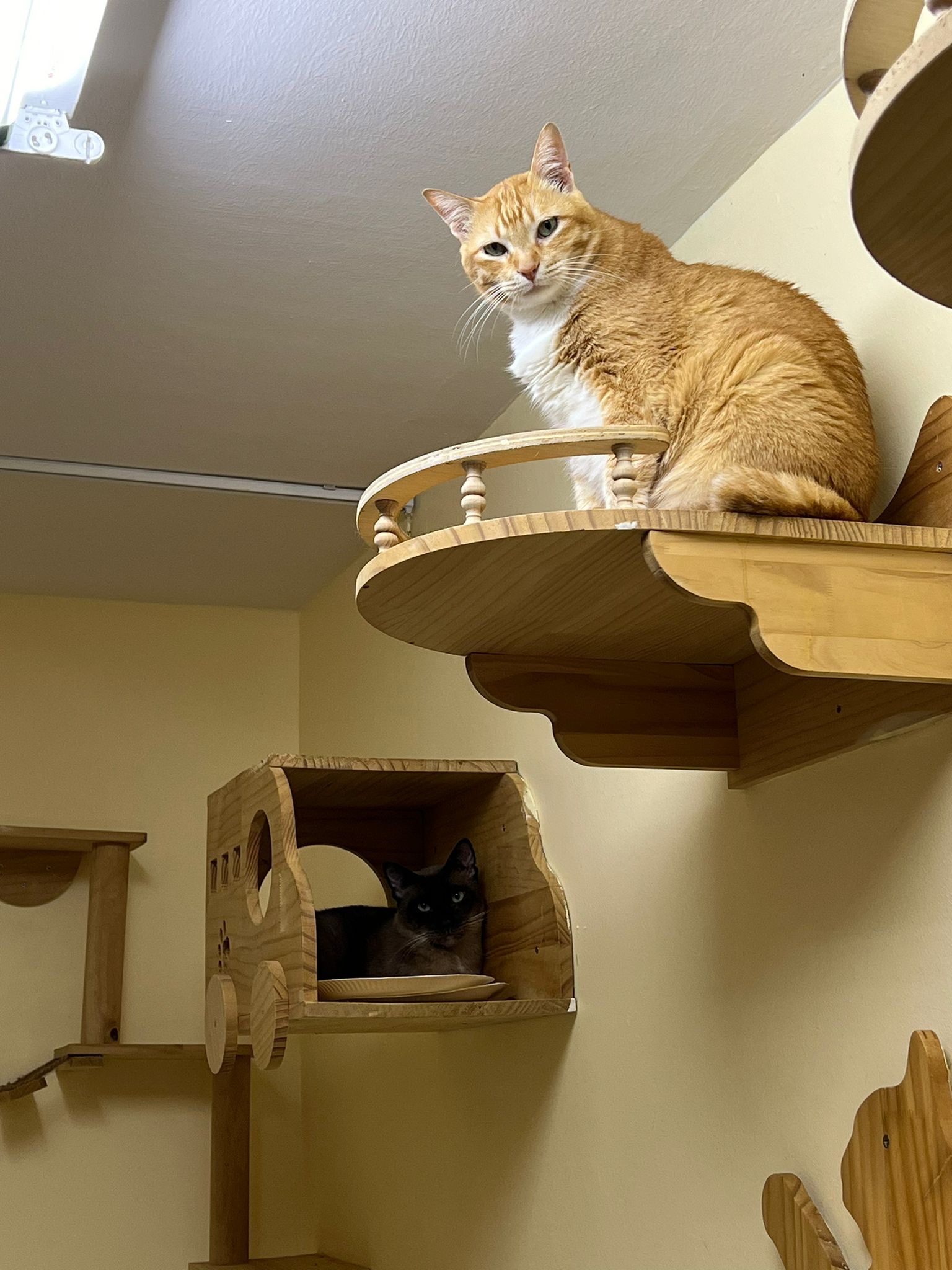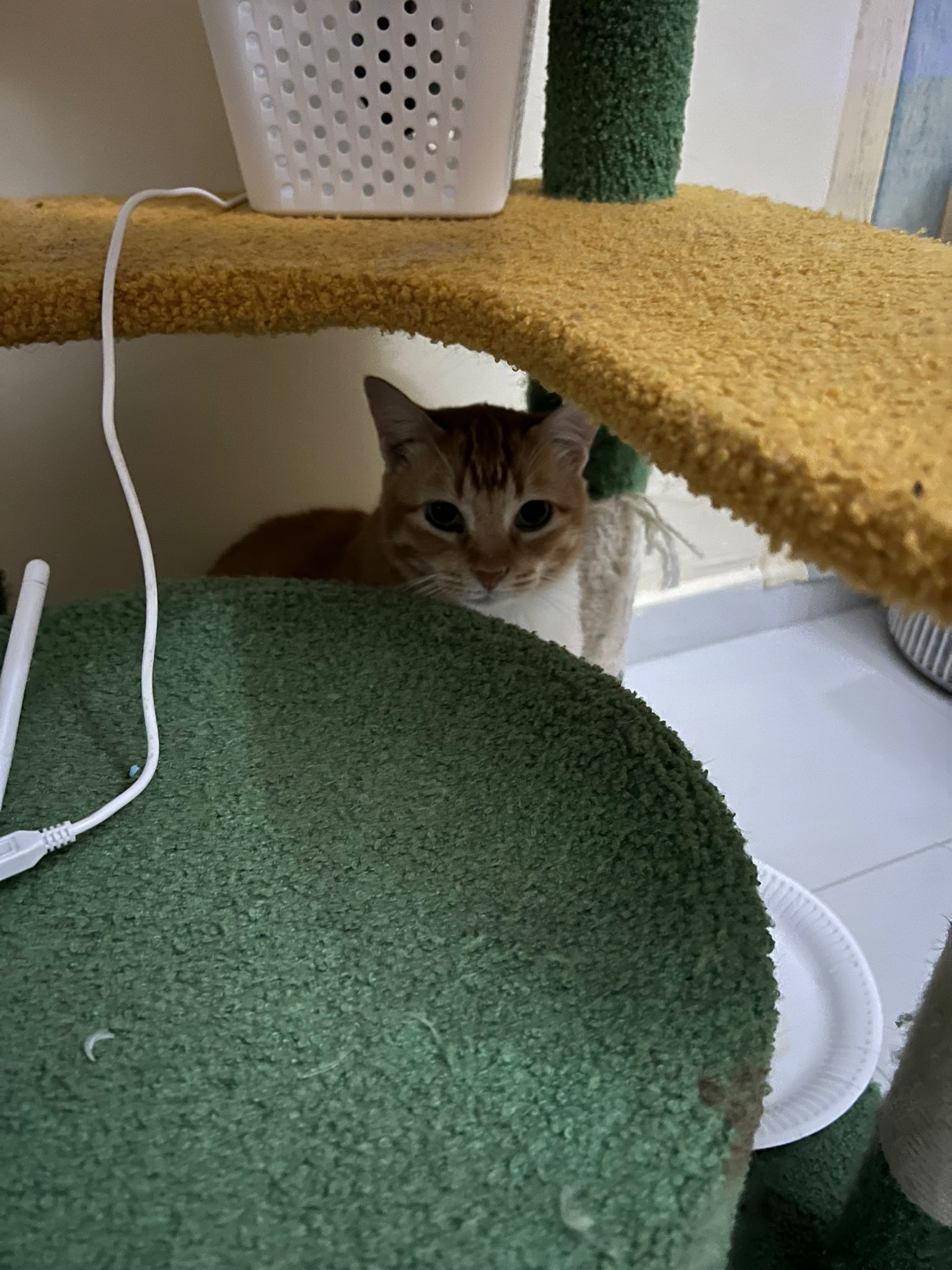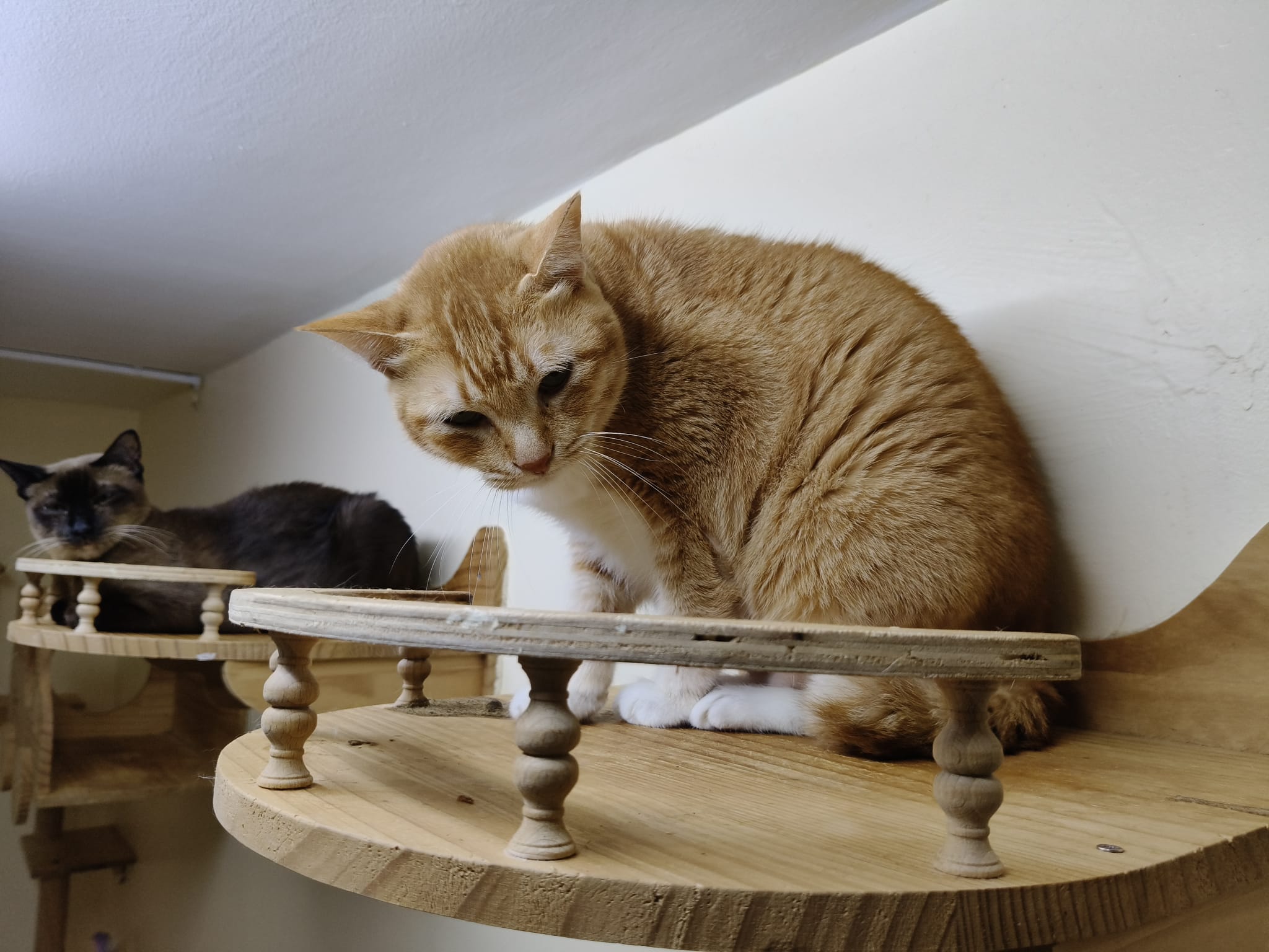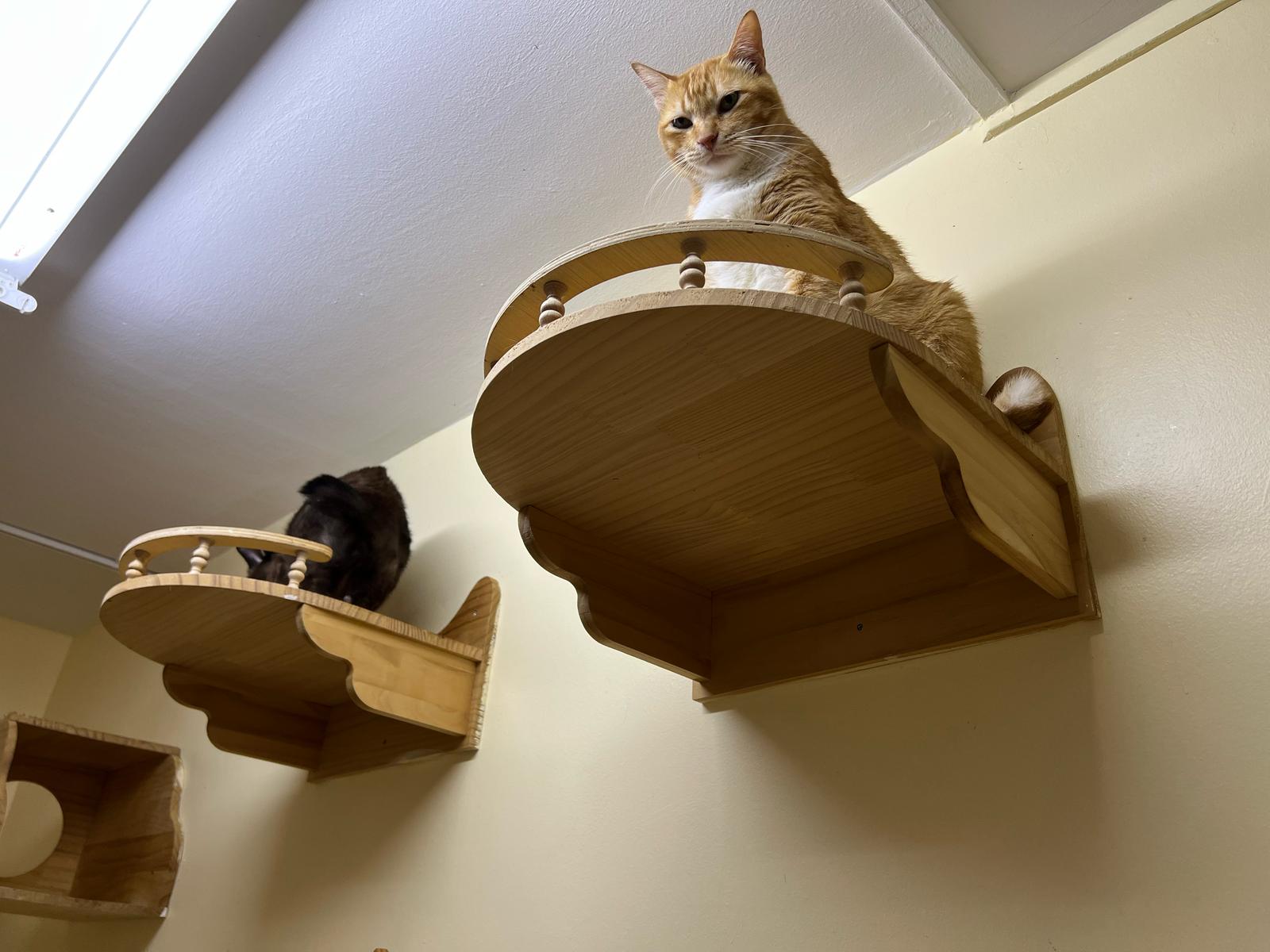 • insist on squeezing w dusty on the cat platform w dusty angry n hissing, but end up both girls calm down and rest tgt laze ard