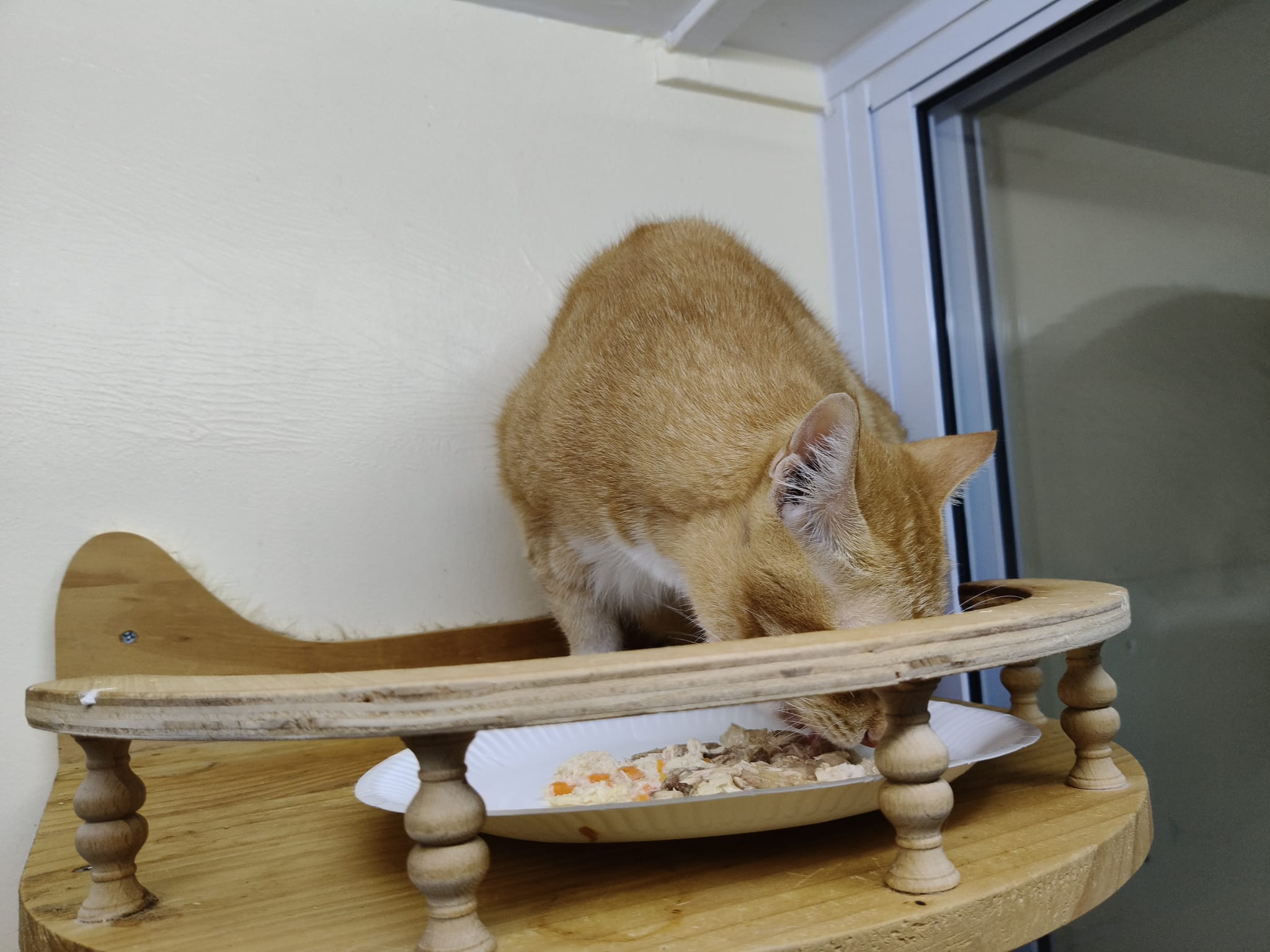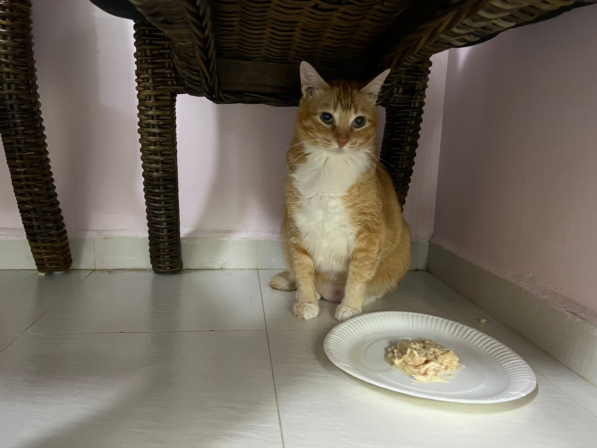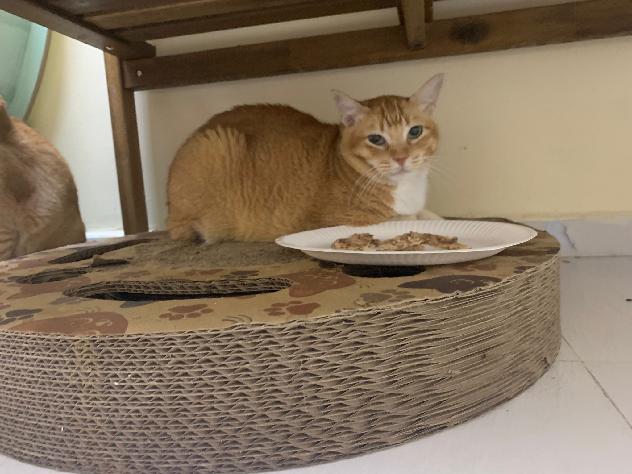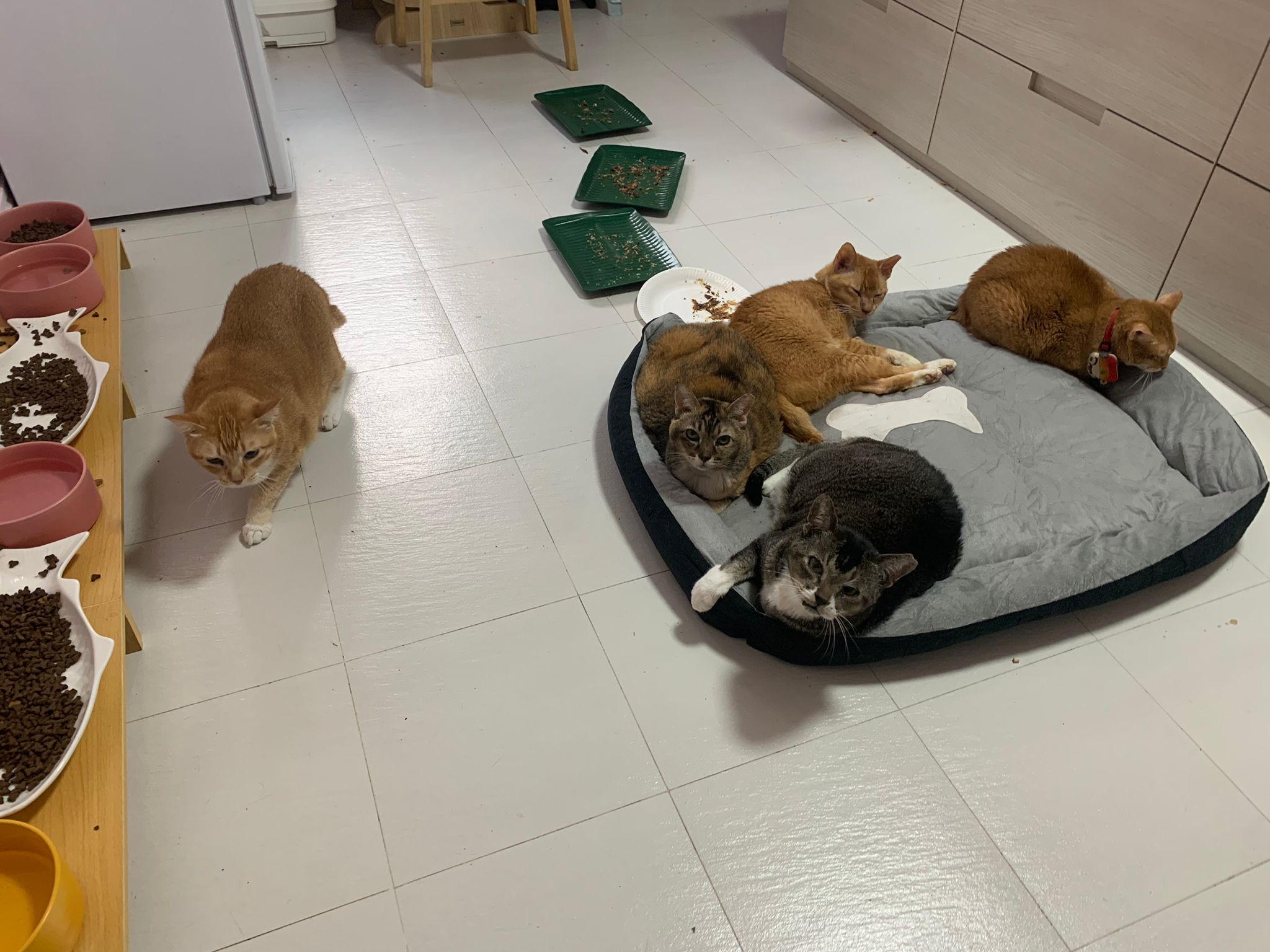 8am+-2.35pm: I’m a happy mao today. I stay in 猫房 for so long. She is the last cat that I get into the food room, I manage to scruff her and hug her to the room and place her w Jack. But she go hide under the cactus tree. Today all the cats staying in the food room for safety air reason. Cos new room need through and proper clean up first. B4 I leave, I serve her a plate of gim cat tuna and ff.
