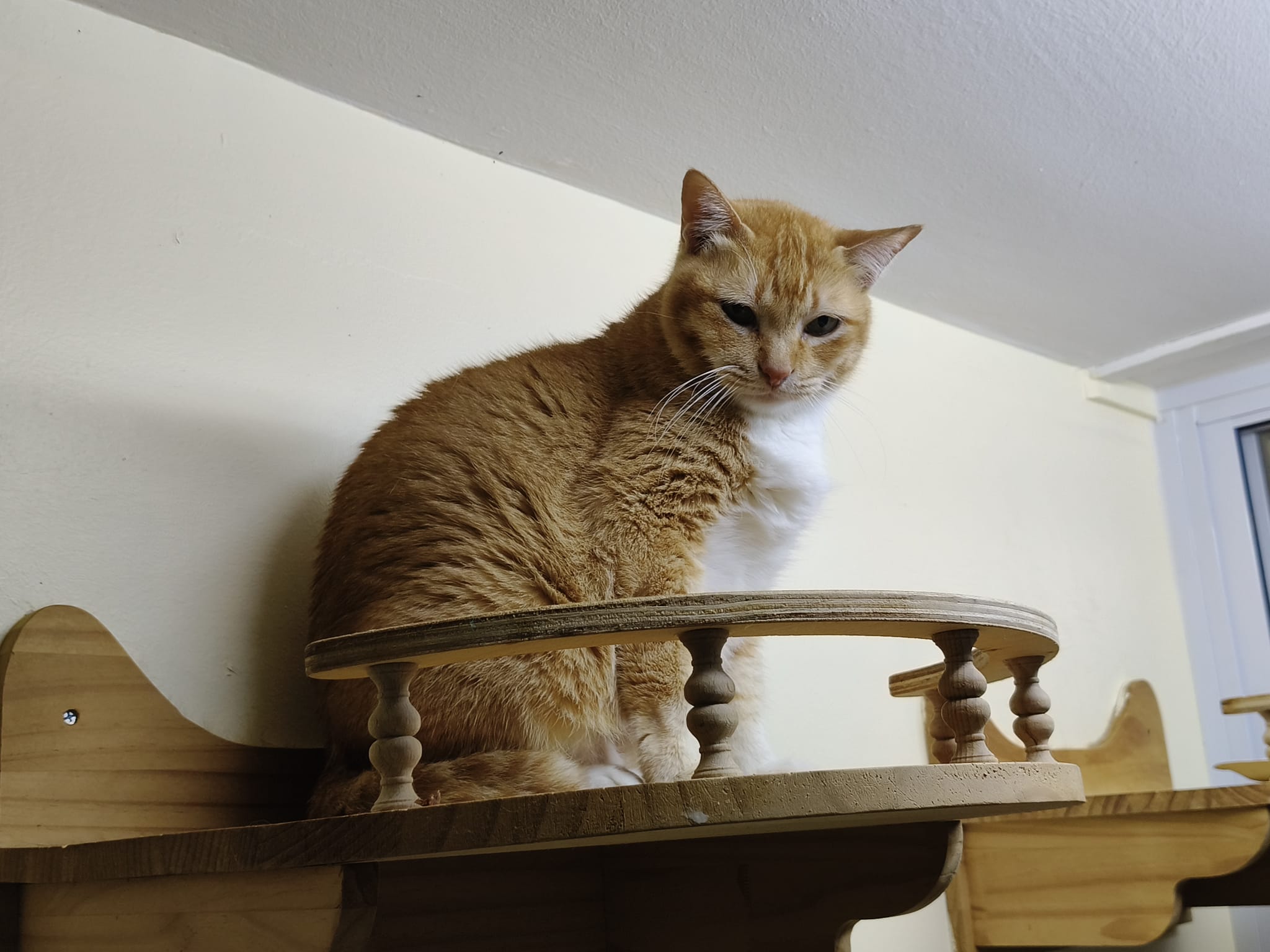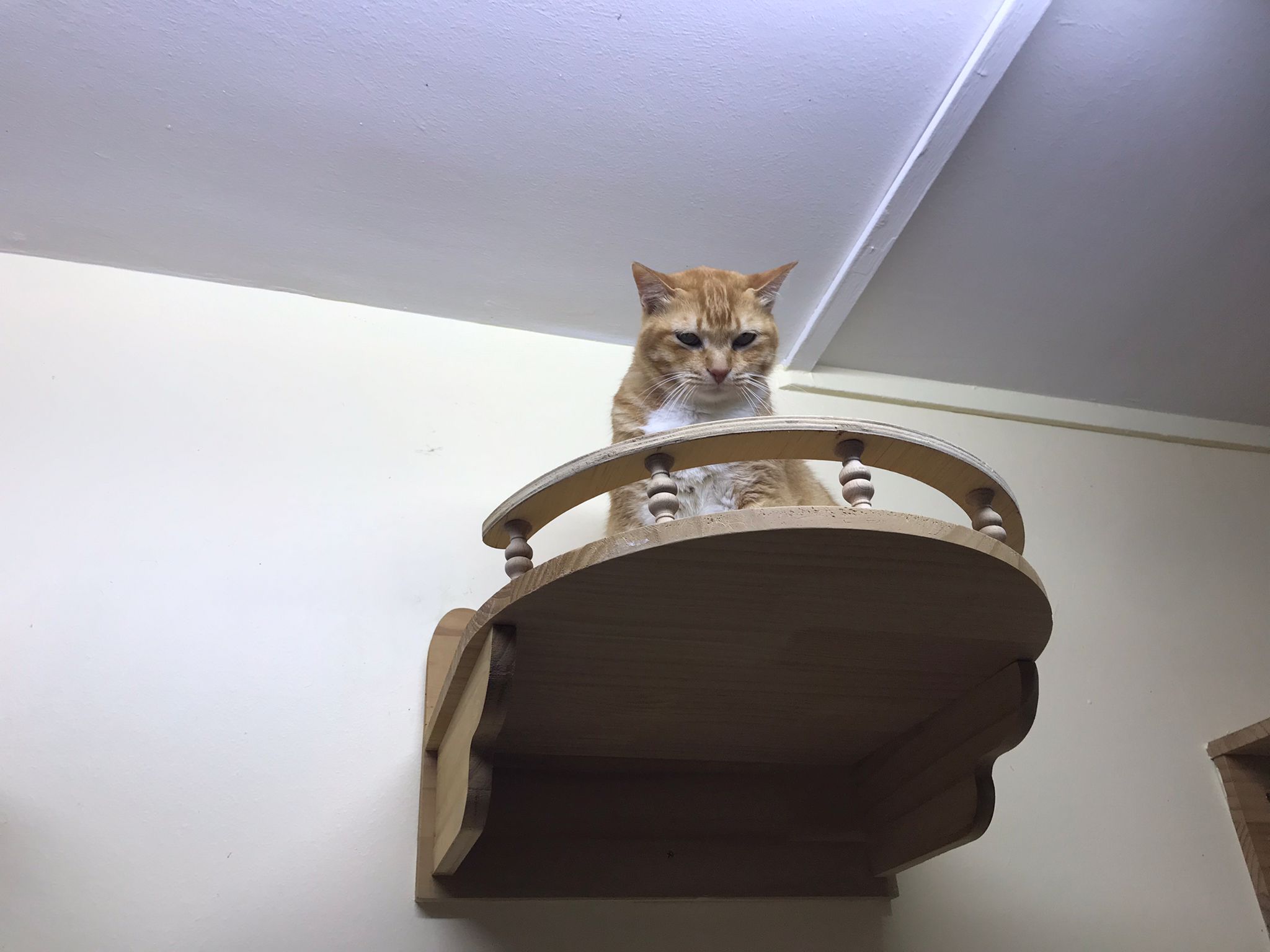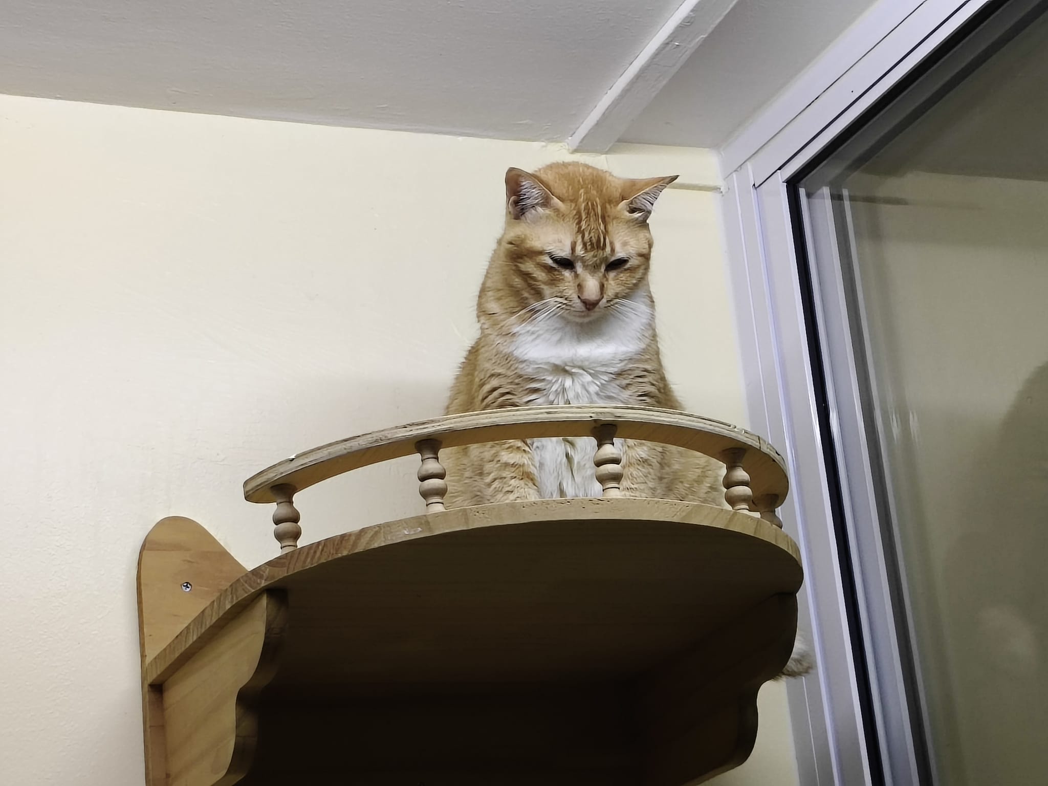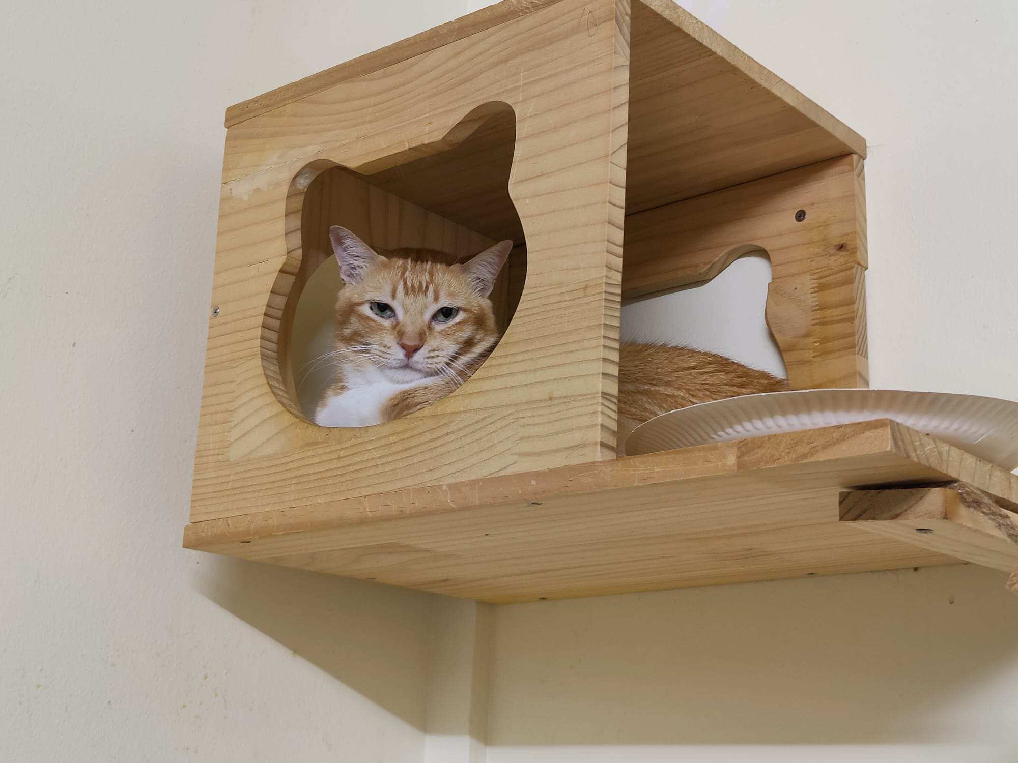 Morning: this morning I revamp the whole tv area for char. Char will run away when I signal her to go off while the man need to tear off the platforms. Almost all platforms r gone, Amber still stay in the box. I sayang her n she didn’t show aggression, i signal her tell her I not catching her or anything, just need her to jump away onto the tree but she isn’t moving. So i scruff her n manage to change hand and hug her Close to me n carry her to food room to eat w buddy. But she run back to tv room. This morning I did have one feeling – the feeling that socks suddenly switch on the i ok w sayang mode feel.