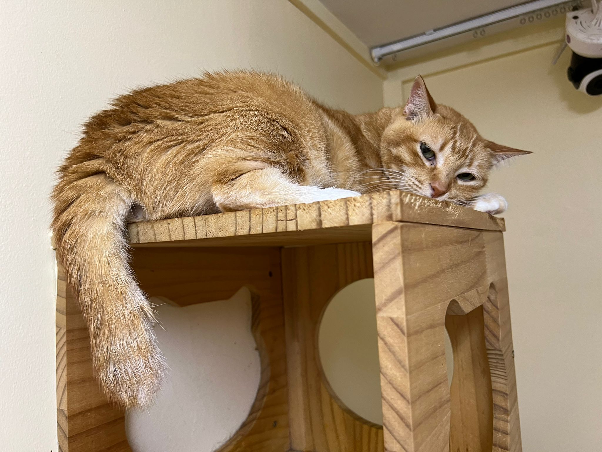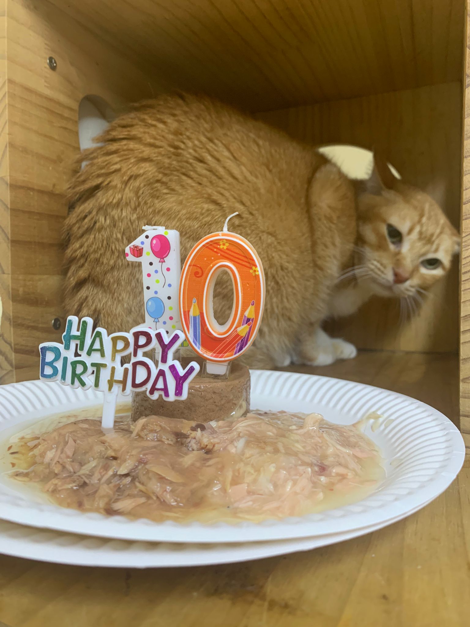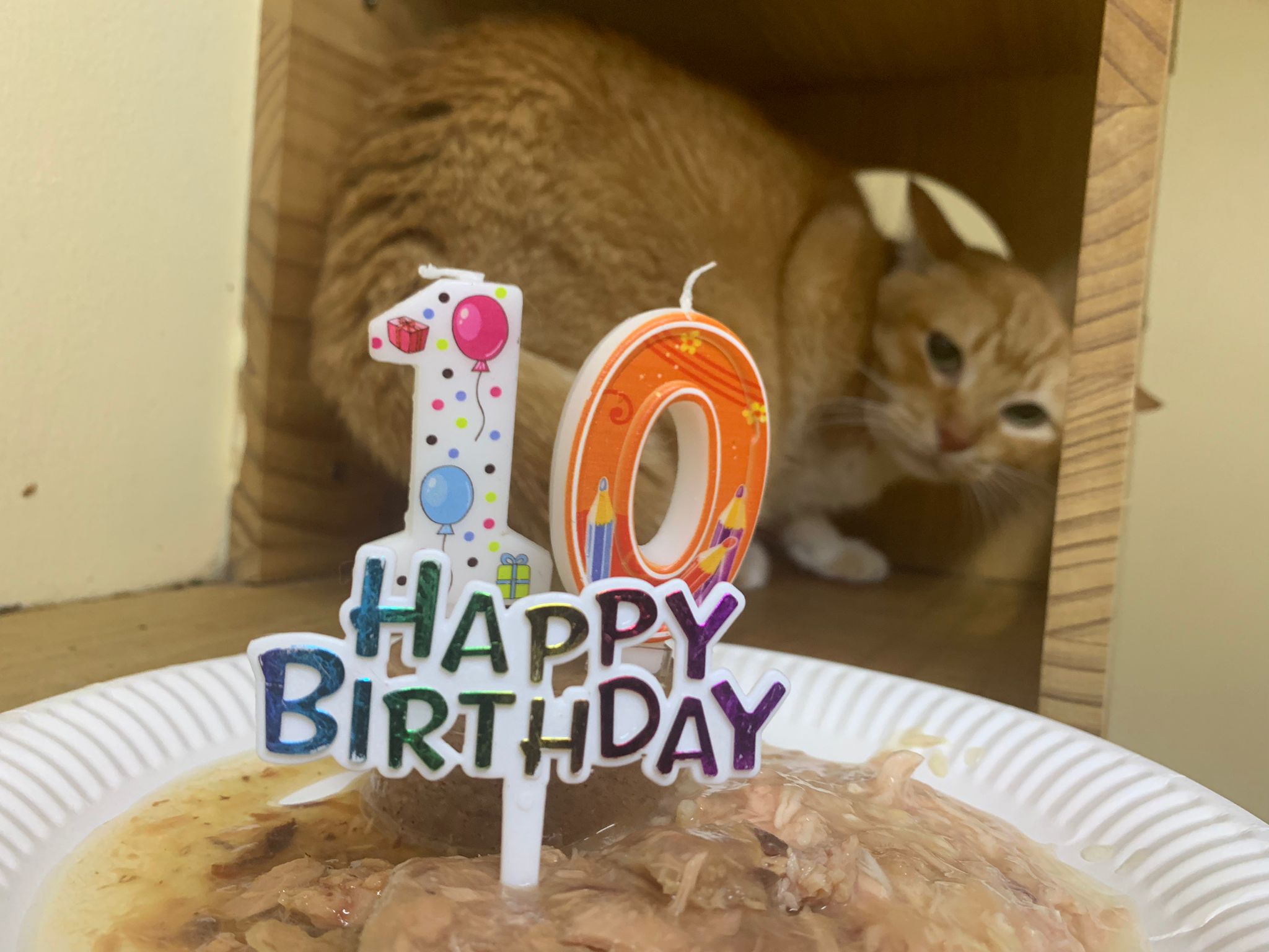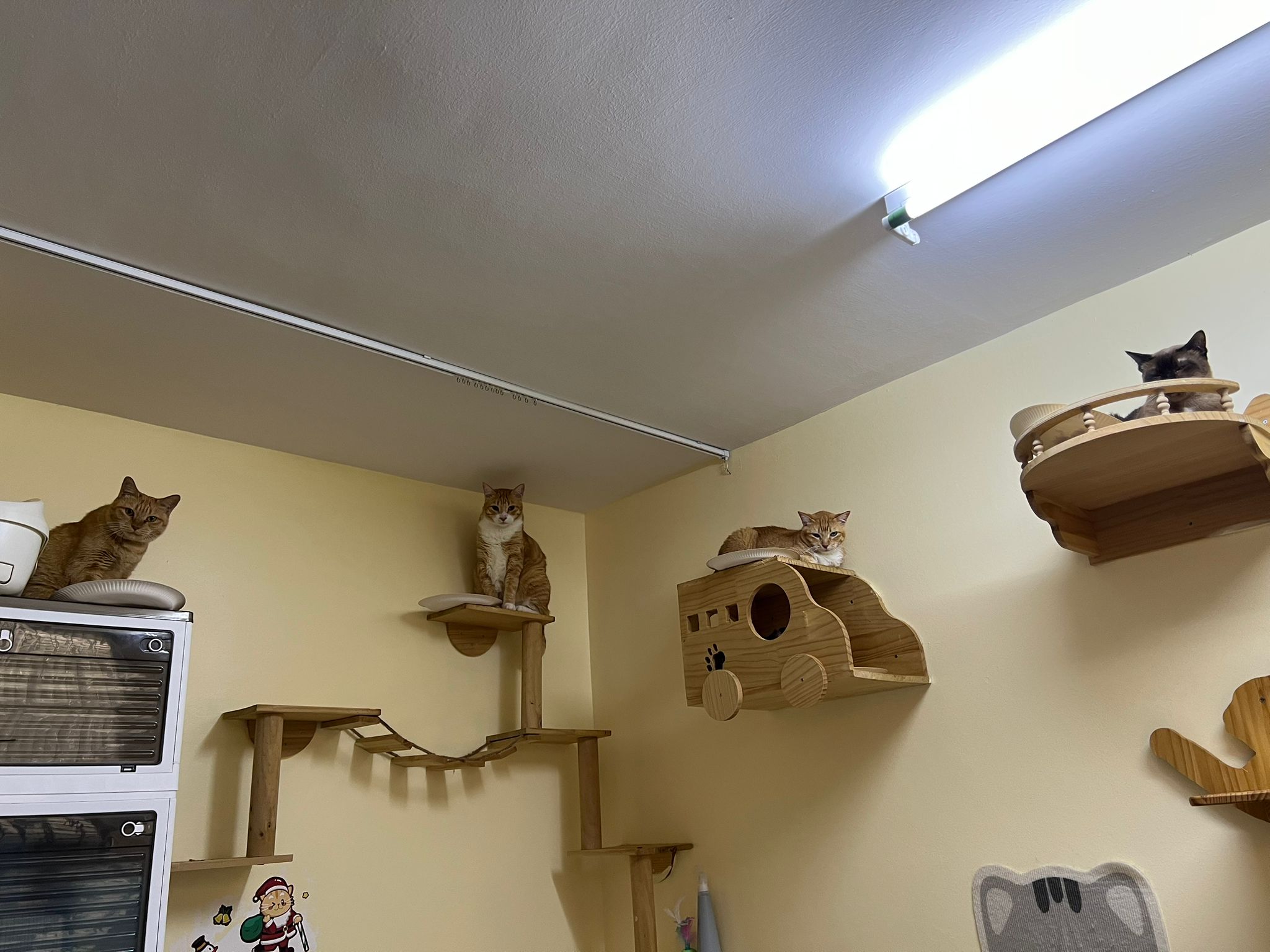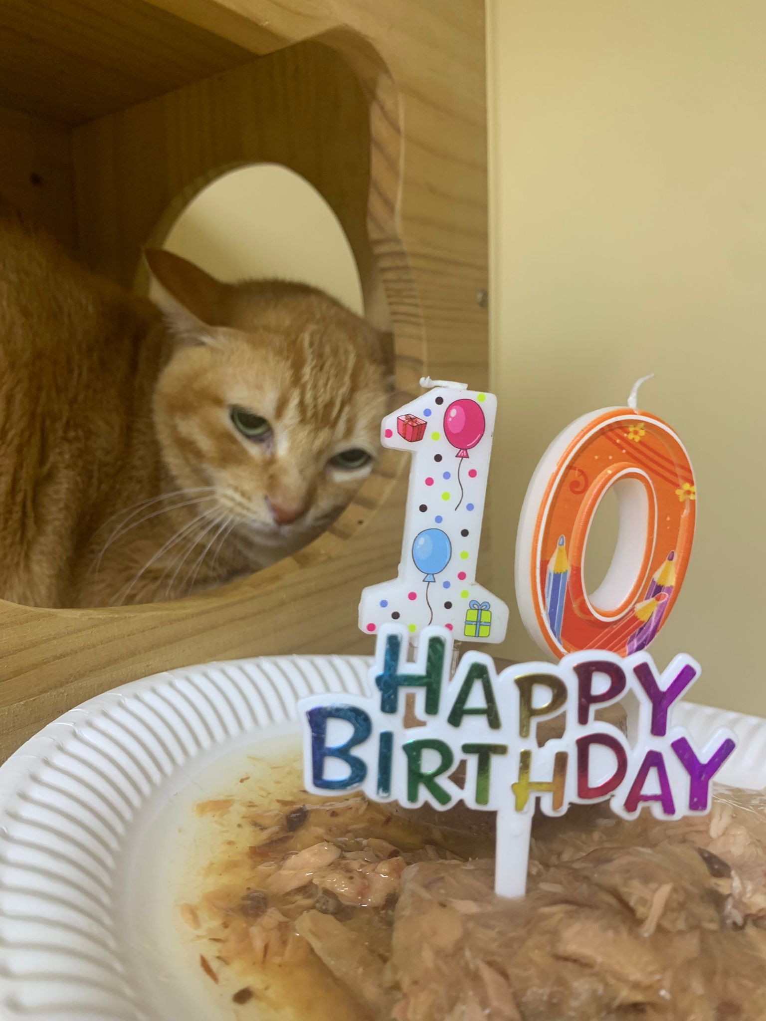 Morning: Amber n sunny n sunshine celebrate 11th bday in 猫房. When I’m out of Kerry room, i look in and she is on the tree looking at me. Blink blink to each other n I told her I got to leave