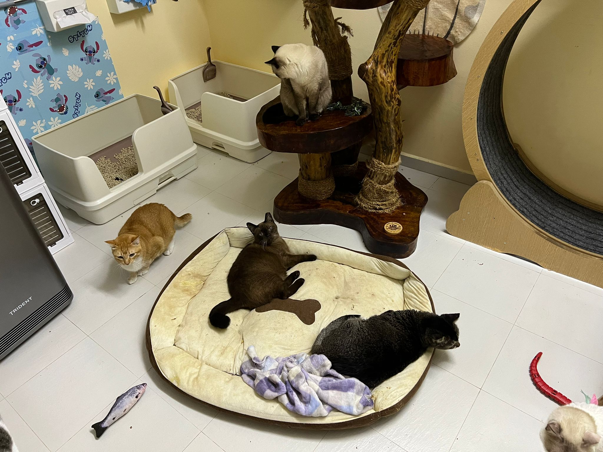 11am+: I go back 猫房 try to tell everyone n sayang everyone that ah mao love them and pamper them but I can’t come so frequent le, even come have to do medi n leave, they know I’m worry and love them can le. Sayang Amber head a little bit only n I didn’t push further she didn’t really want to scratch me but she did react n I can’t afford to be injured in anyway. Just talk to her while I sayang renny, told her no worries. Life is as good here, just eat and play w Jack papa n watch tv. Give her a share of wellness tiny when I leave