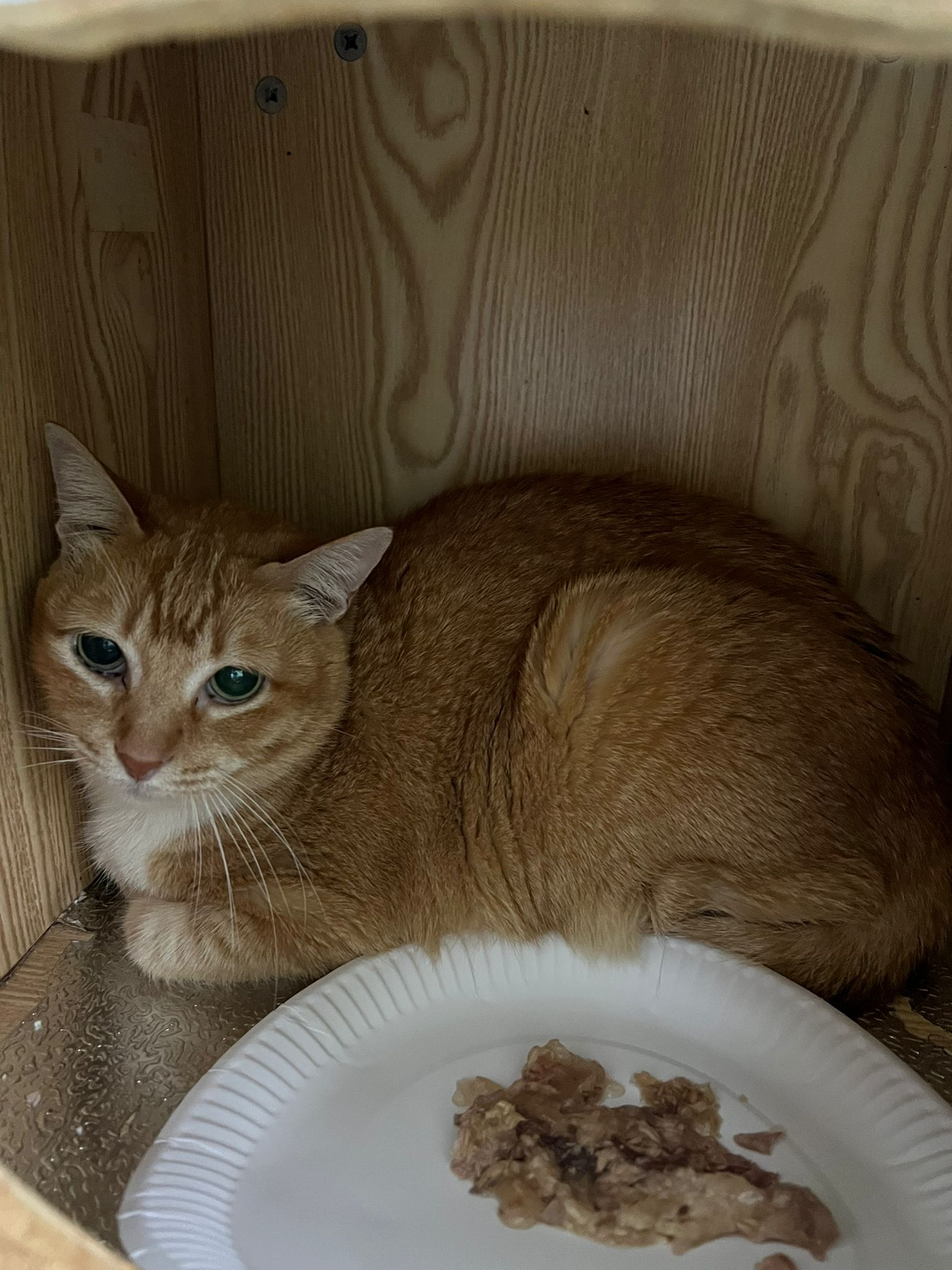 Yesterday Near to 2pm: let all the cats out so they can roam and go tv room. Amber didn’t go back, and today she is in the cage.