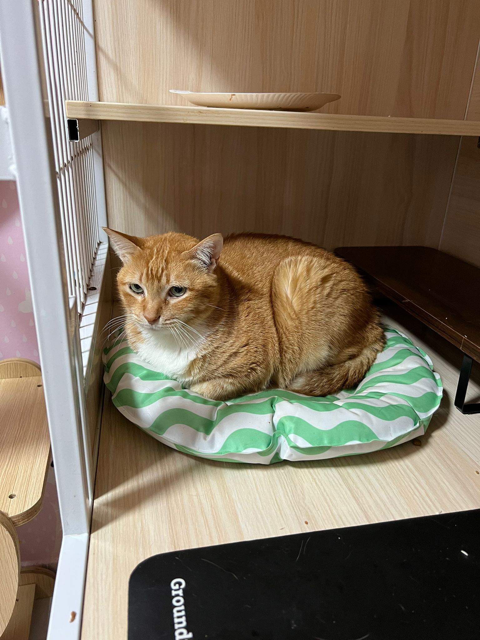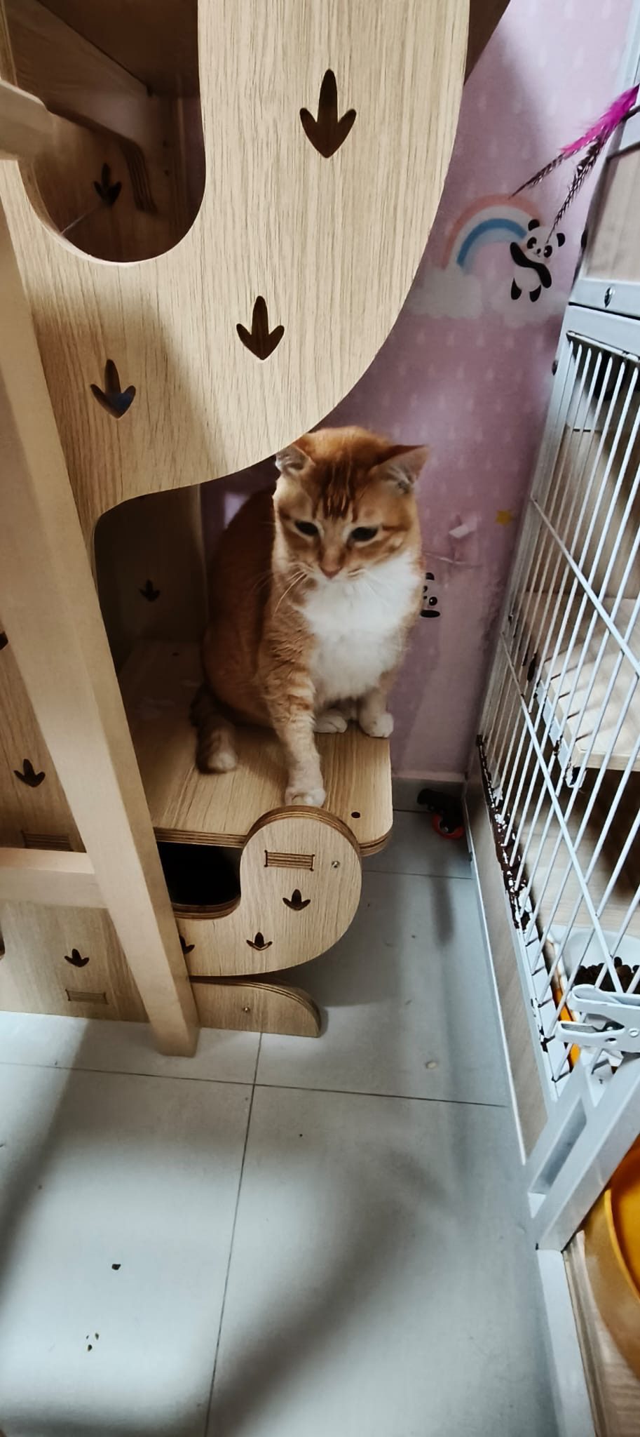 230pm: we move house to 5G – 5.89kg – first time got her weight. Try to coax her to go into carrier told her I know she don’t want me to touch, tried some time fail. End up I got to use coaxing plus vacuum scare her to move then she move. everything is peaceful. Reach 5G she settle in room 1, first deck of semicircle shelf.