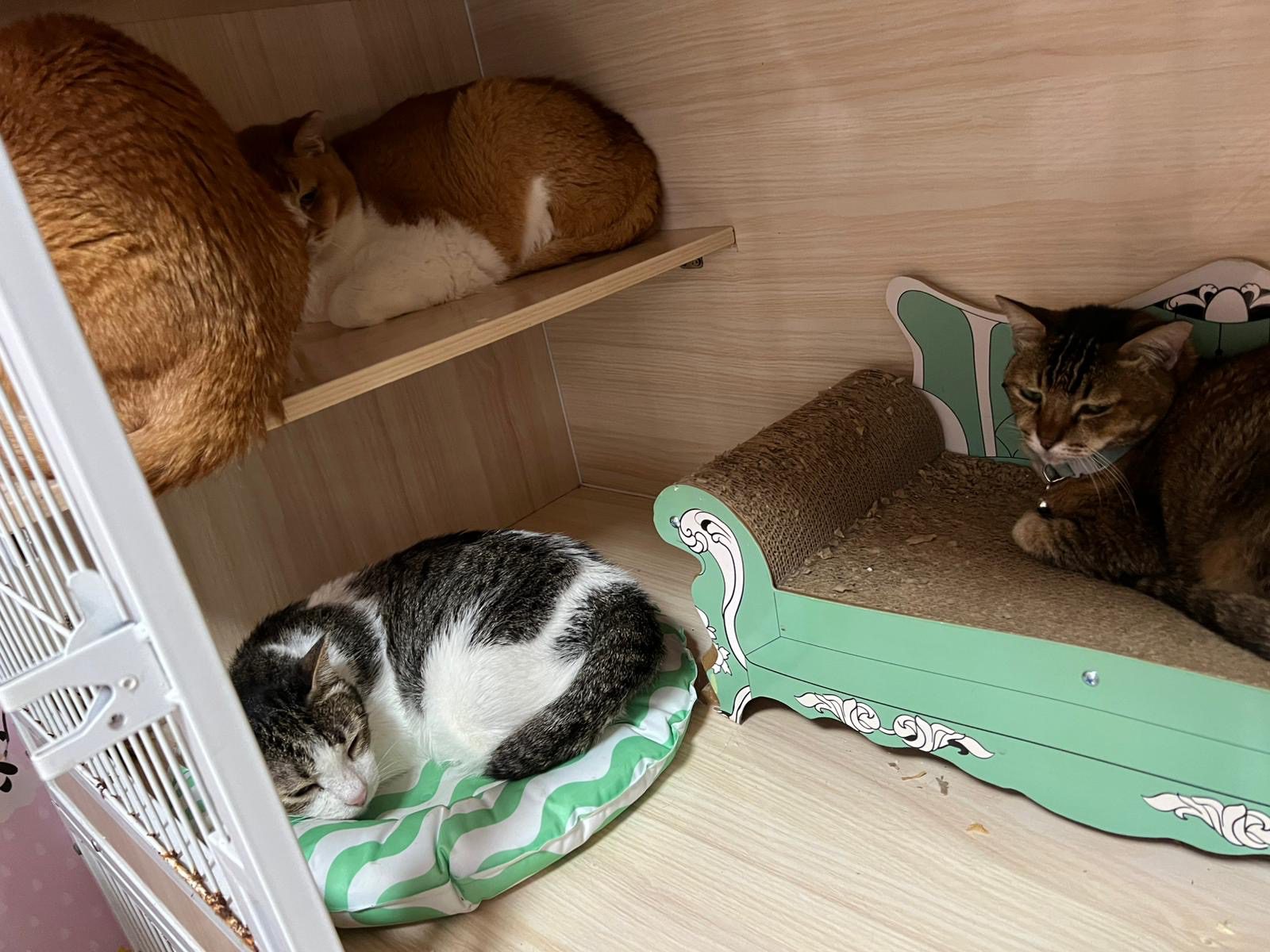 11am+: when I go in will say hello to all cats, be it Sayang, rubs, touch or kiss, will demo my hand going to sayang her. Today she didn’t hiss me.