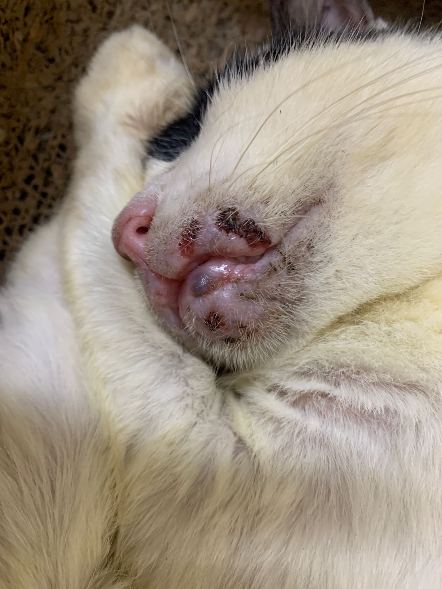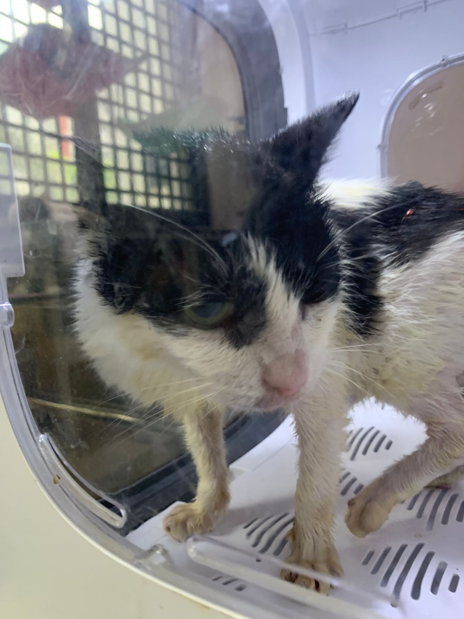 Seen dr nally. 3.62kg. Both front legs 2 big wound, bleed a lot. One really super big wound think she got to stay 猫房 much longer this round to heal.