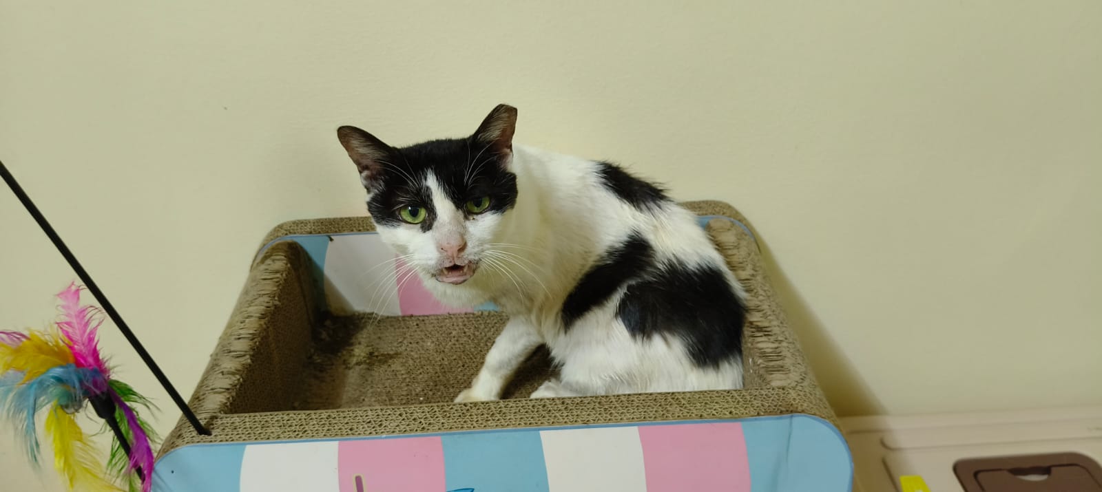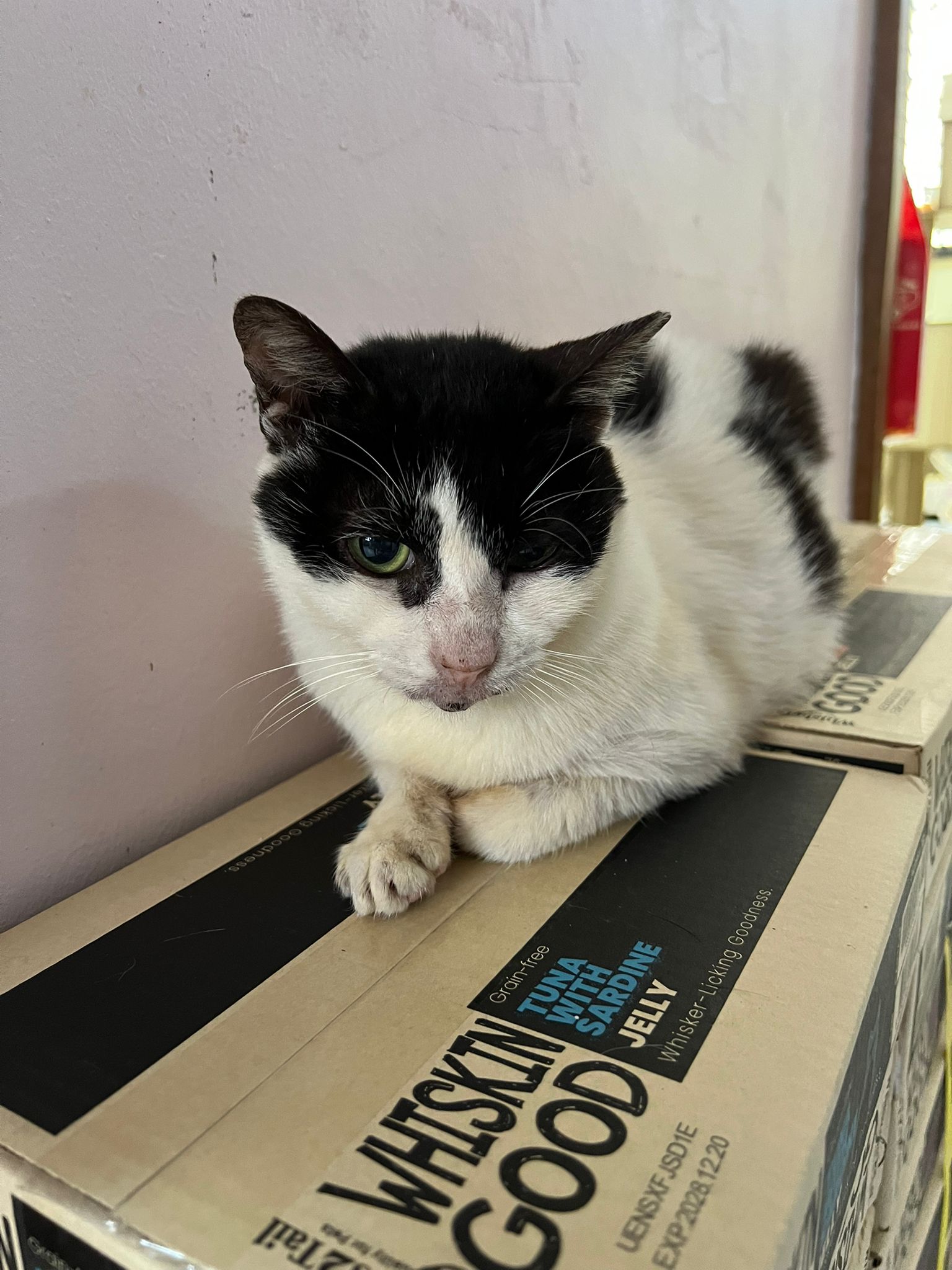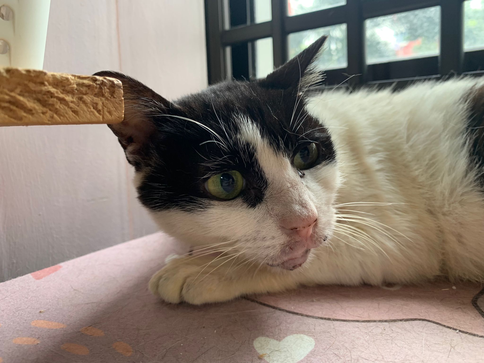 I trust her so much give her my hand to sayang n she bite me wor. I smack her butt thrice still not apologetic, I smack her forehead twice and she angry le. Those petty angry. Cos I serve food she don’t want to eat. I got to sayang her a lot n told her she got no reason bite me first de, n I only smack her butt butt not even pain de, her ego high. Think is 面子问题 … wa she bite me n I got to say sorry to her n serve extra aixia oldie then she lick some n she stop again. Got to keep sayang her but I still tell her she wrong first, then I massage her butt n sayang her head.. later she did finish her food. Come to think of it, is it that she disagree toy to come ? I told her Tmr I target get toy and she help tell toy to calm down n she bite me. Erm. But I now tell her again toy body really bad, Duno is those auntie anyhow give Duno what drug that worsen his body immune system, he come here cure properly and eat well like her. Then she calm down. Let her rest n top up some feline natural for her too.