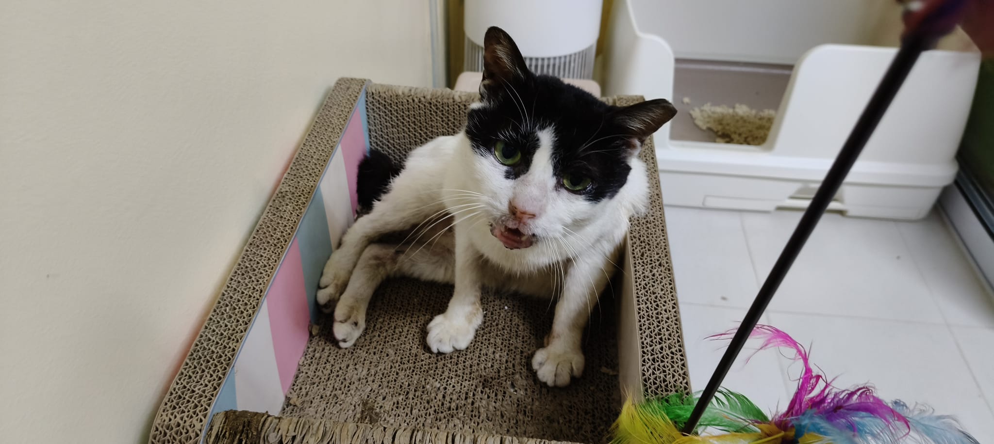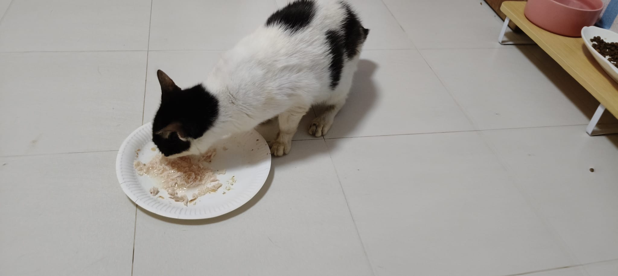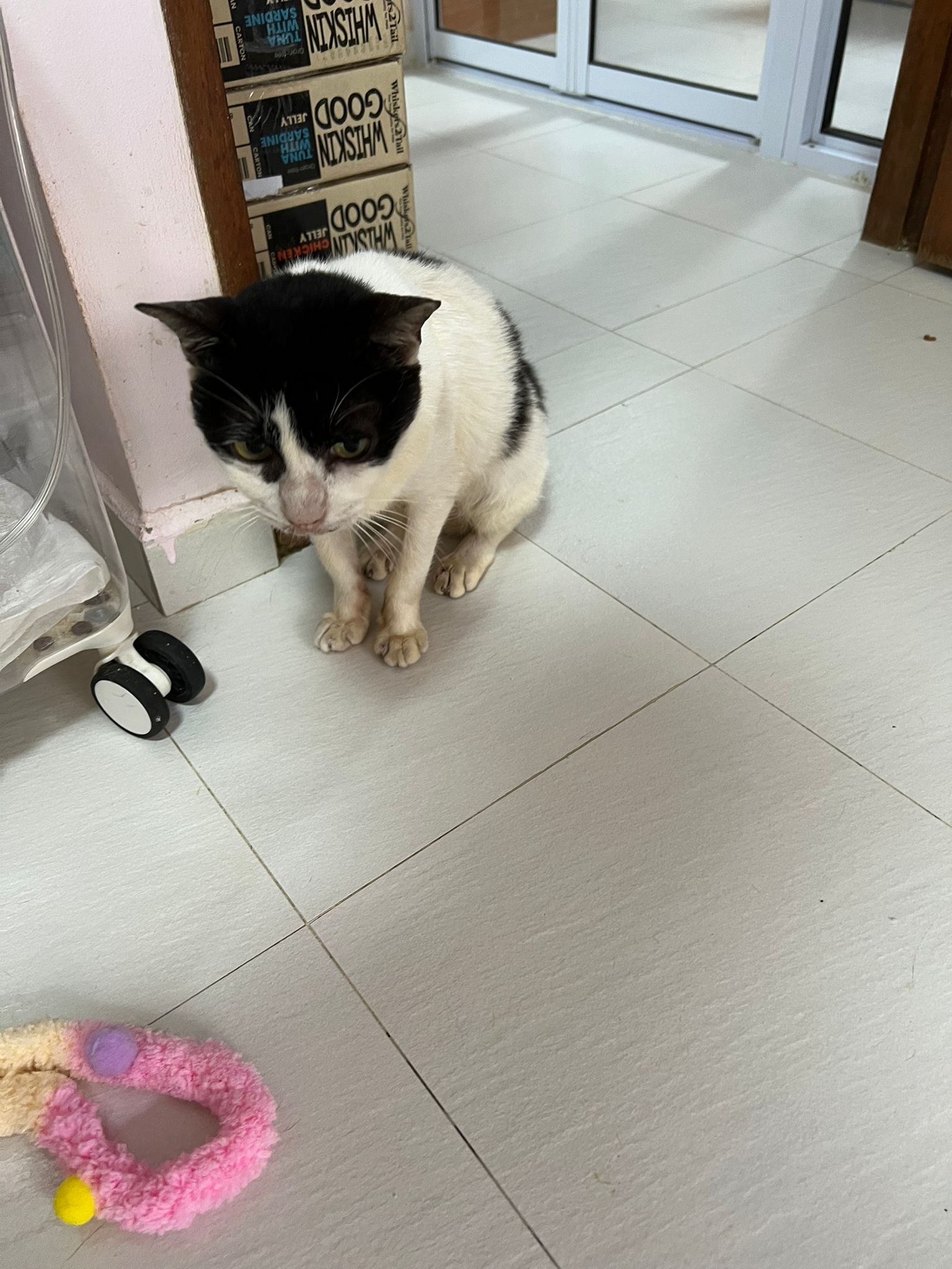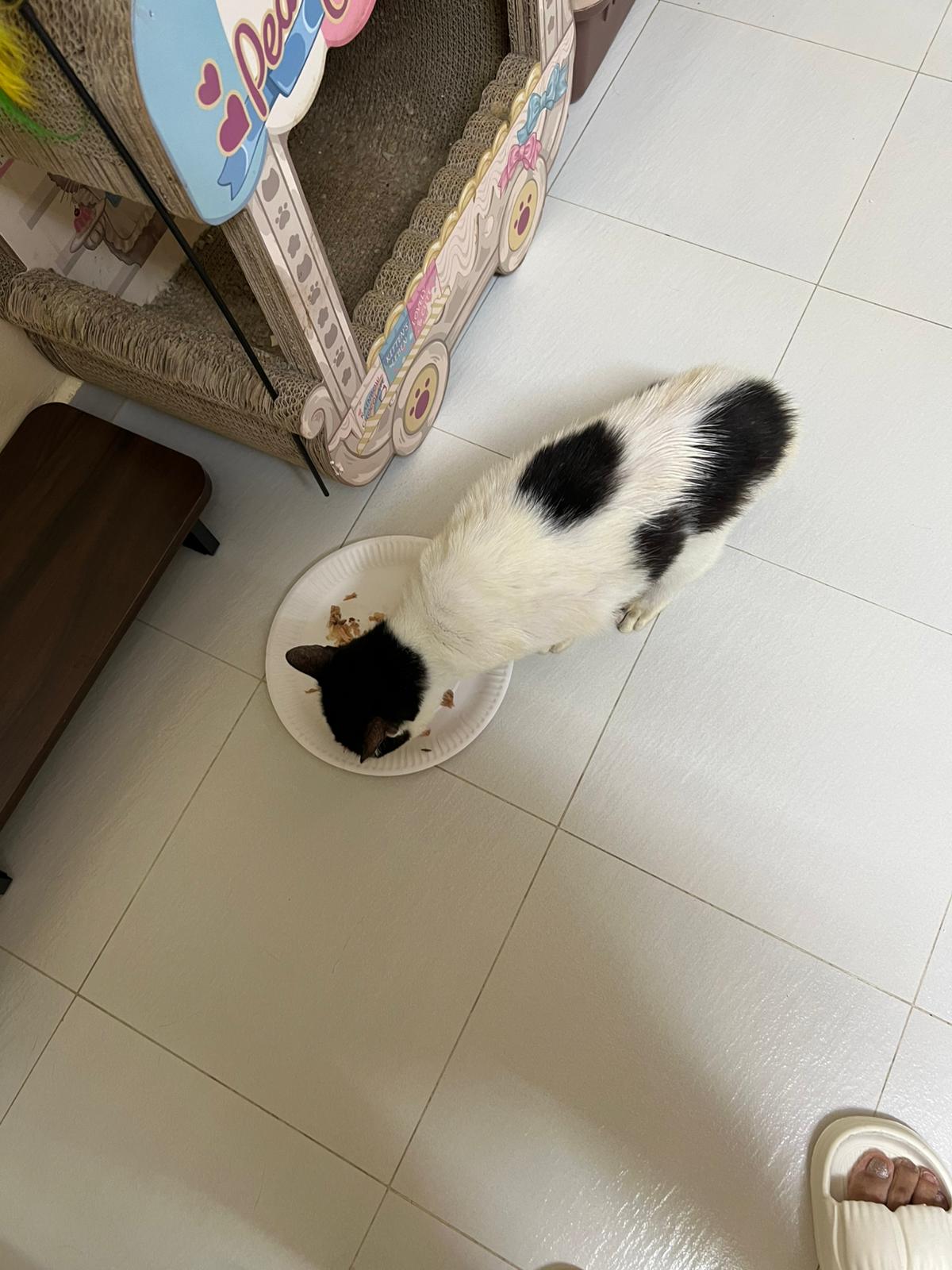 Morning: even if I don’t count Monday late night. Today day 02 no poo no pee at all! Got eat for sure. I serve total 3 Servings for her this morning. Meow for me. I wanna teach her to use bin, think gonna hold her hand paw she want turn ard to attack me. but think she know I wanna teach her to use bin. given Clav n meloxicam. I bought banocin powder. Tmr will try clean her paws Today I didn’t do