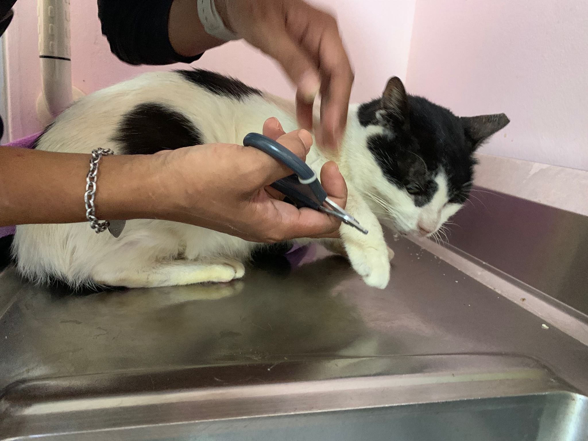 9pm+: check on her front paw. Both hands got ingrowth, got pus le. After I check she scare of me le. Sigh. she run away. Hopefully I can catch on Monday night.