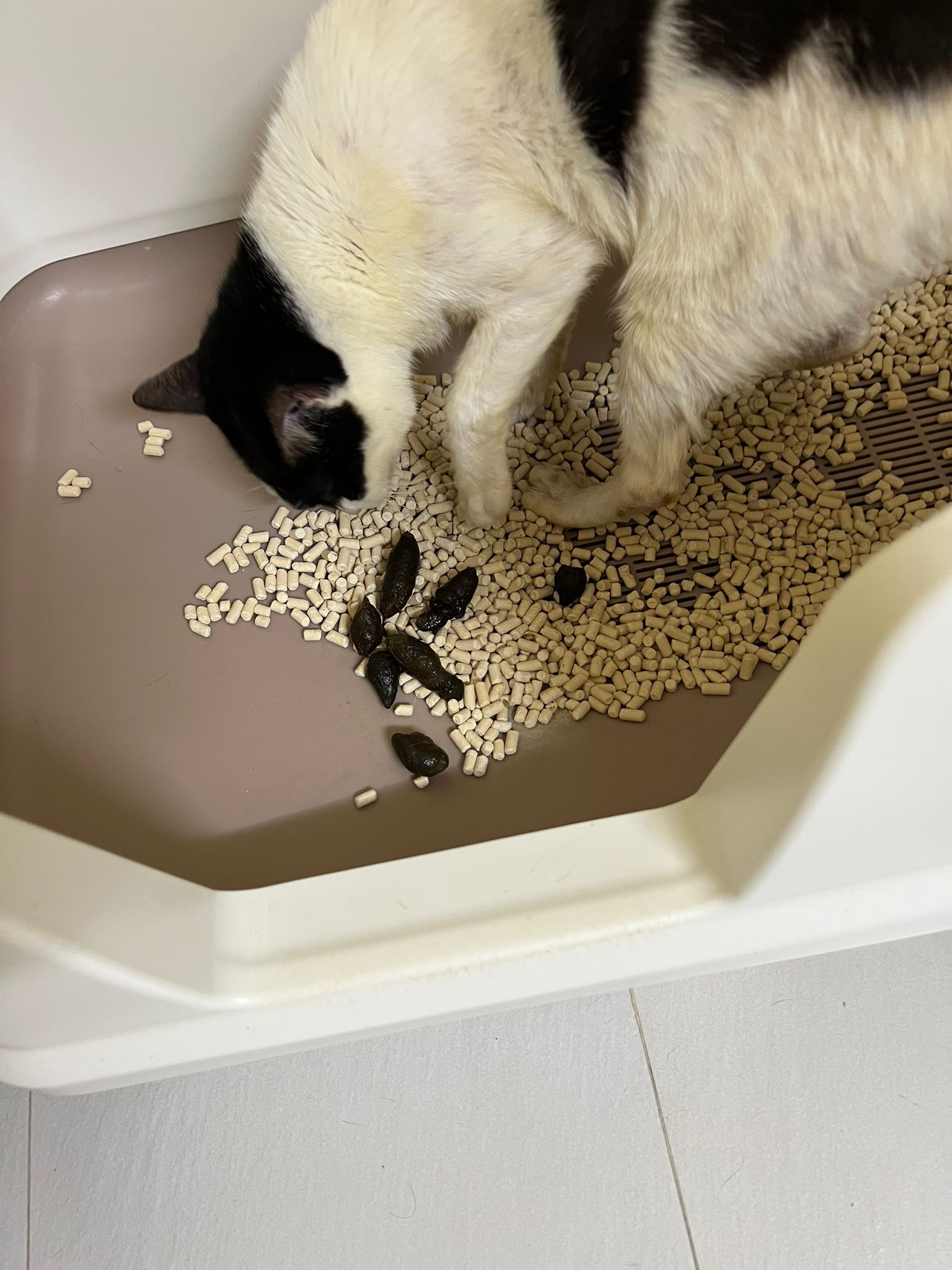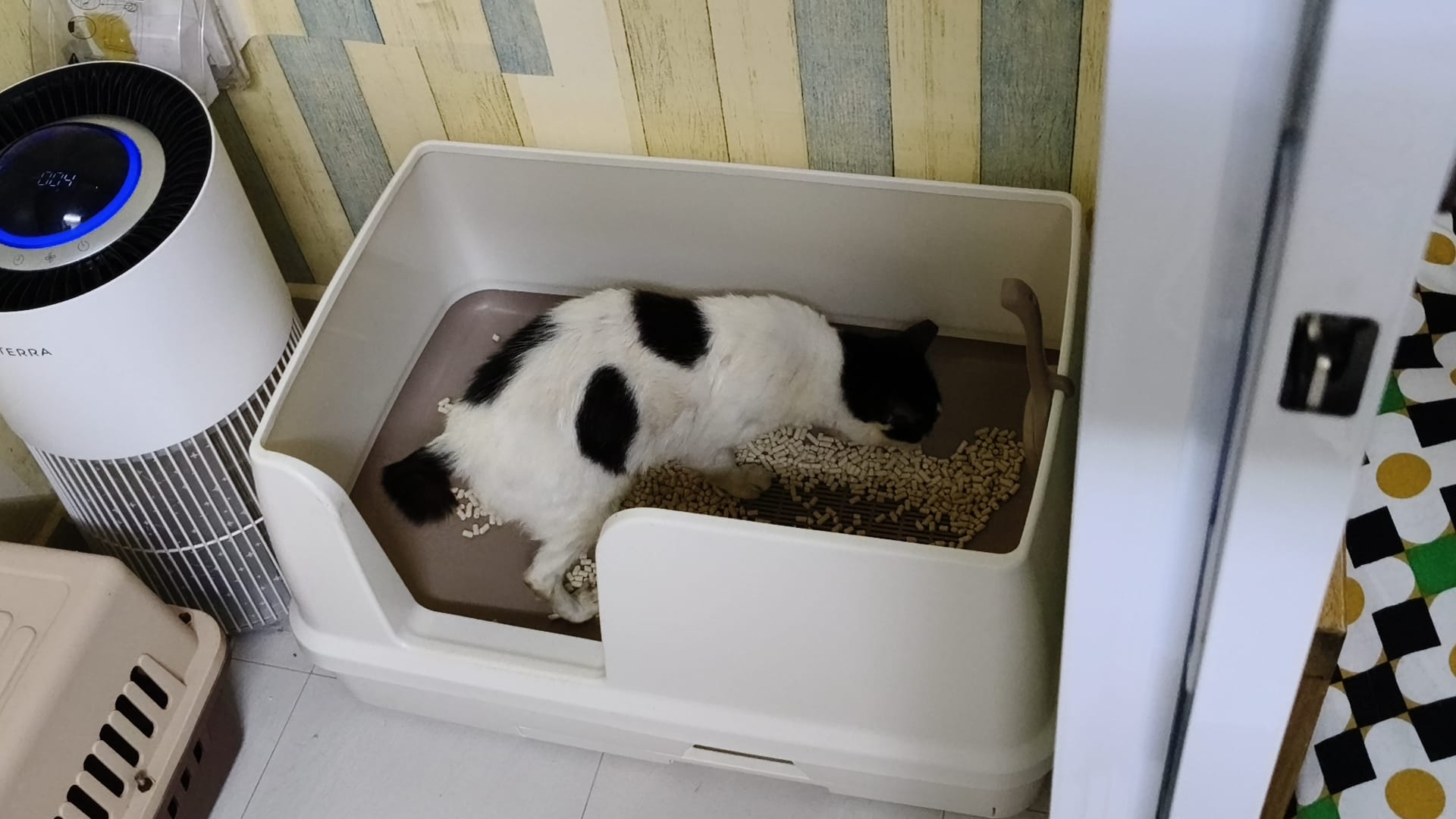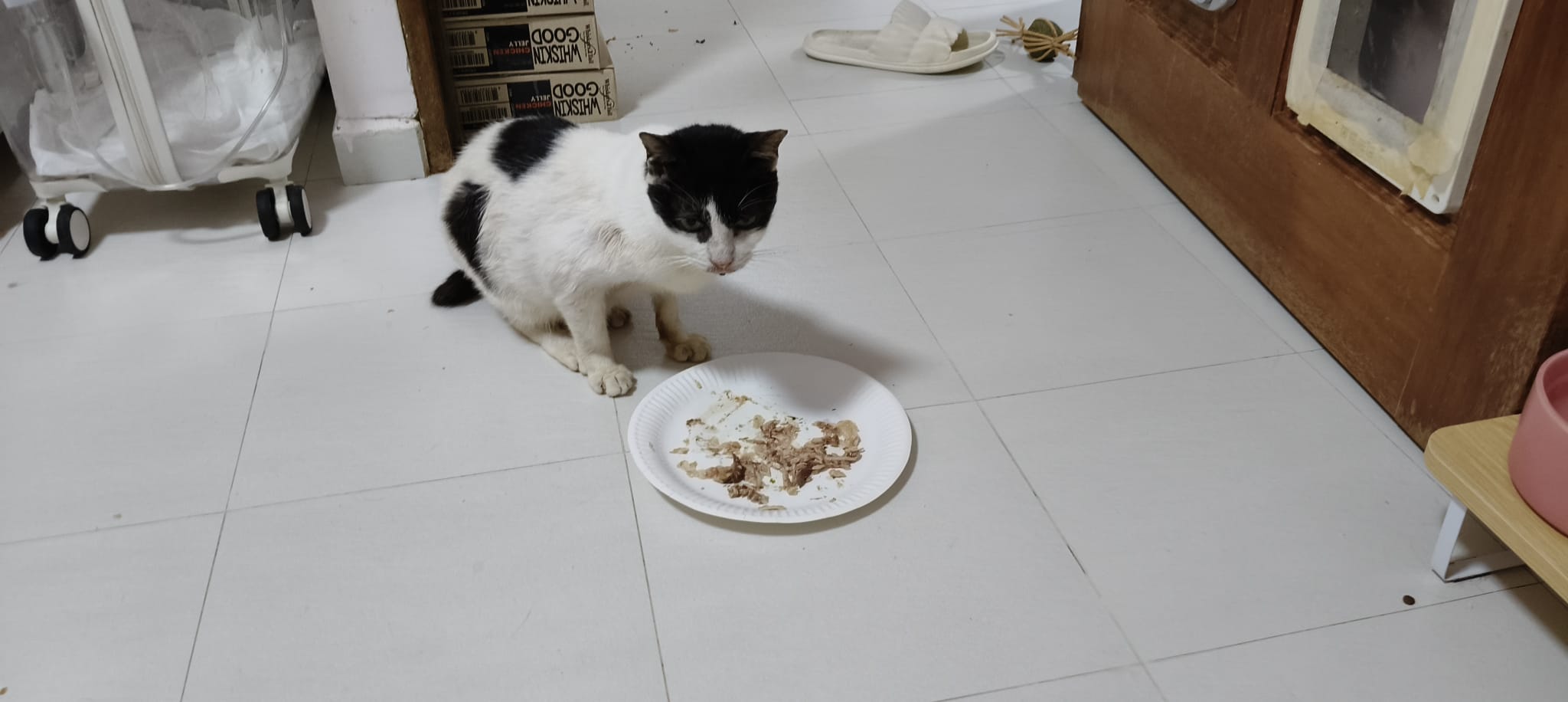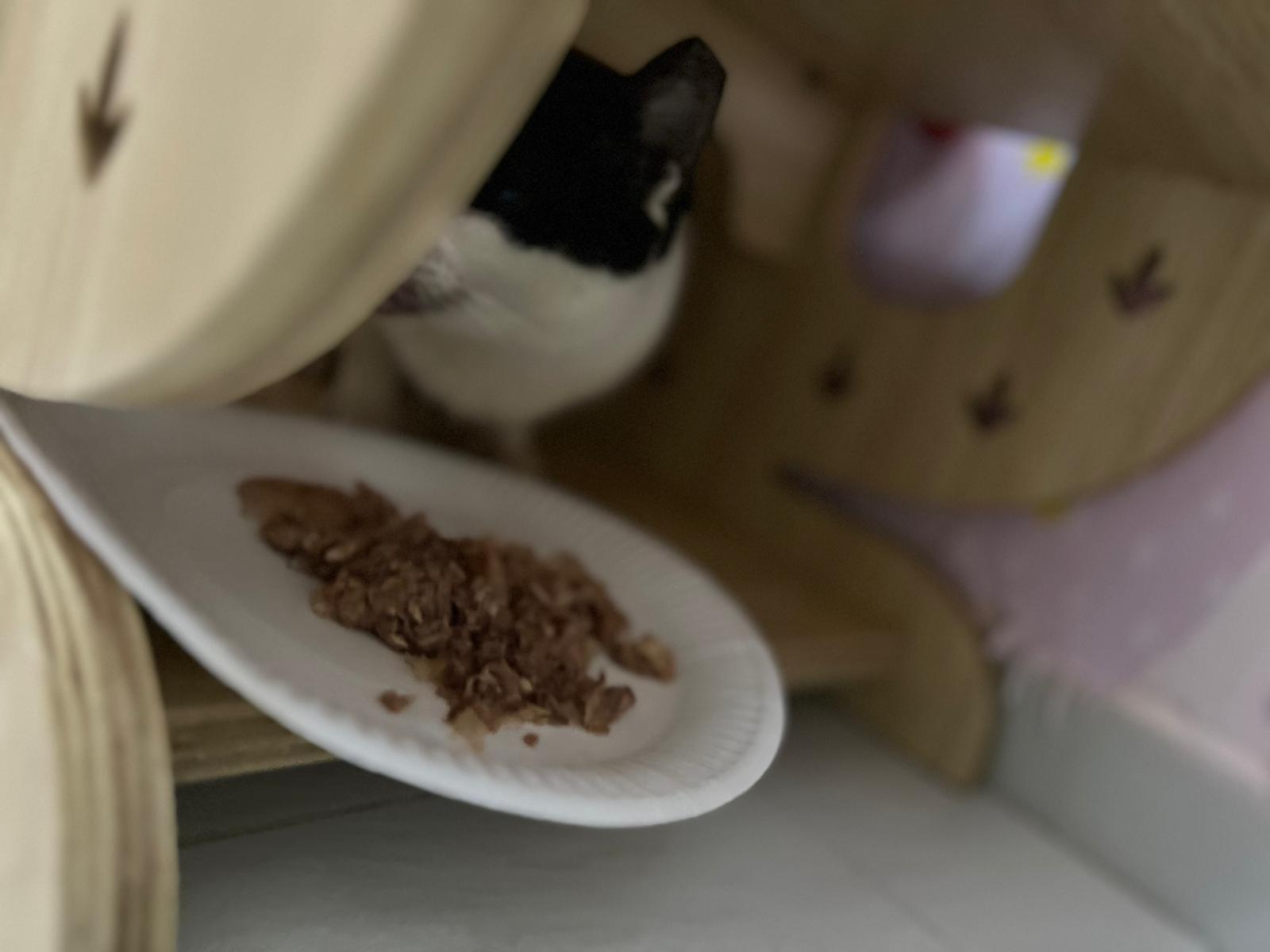 She is smart, she use bin, pee quite a lot in bin. food didn’t finish the rest. Only drink finish aixia oldie.