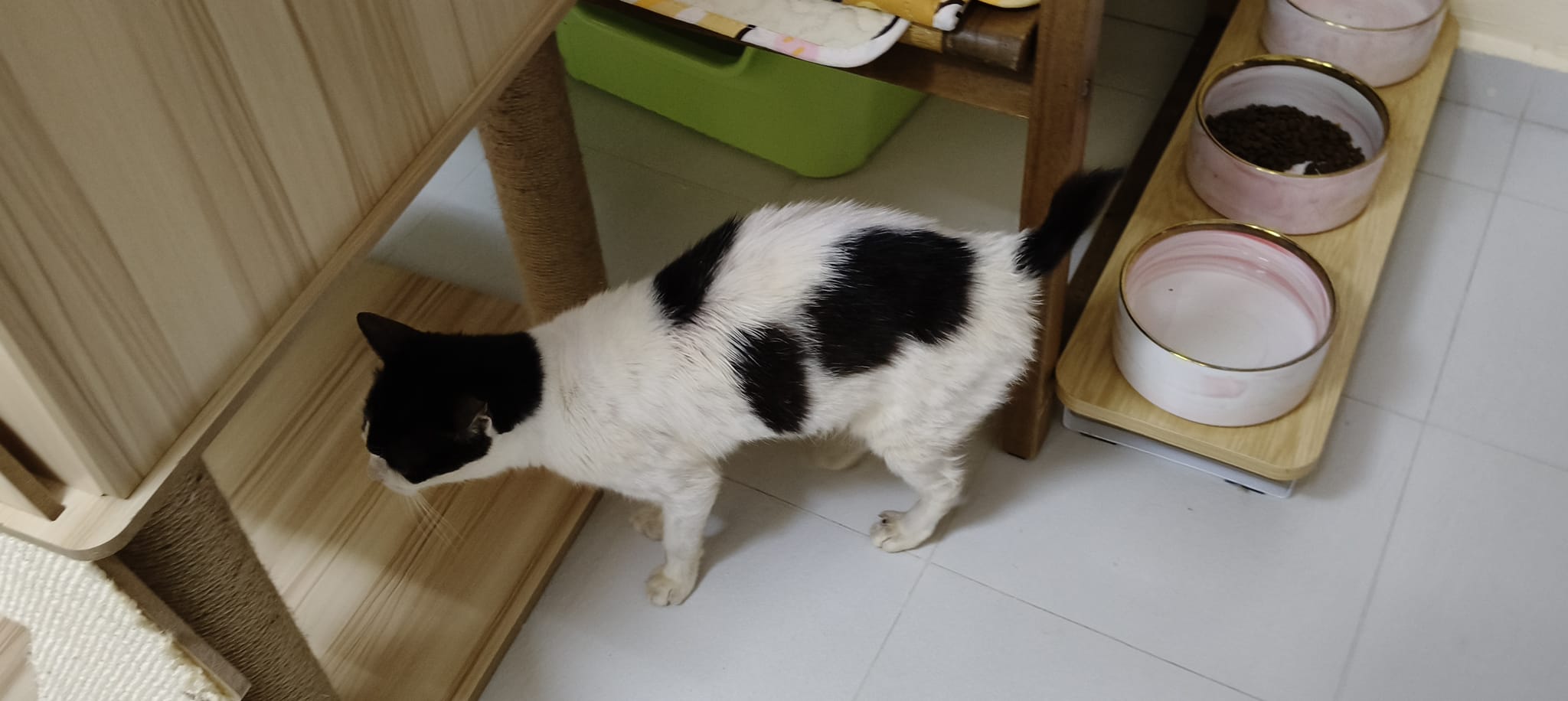 When I go in to serve her snack, she surround me will ask for sayang n headbutt my hand n leg. Good old cat. Her morning food left 45%, i top up aixia oldie she got eat.