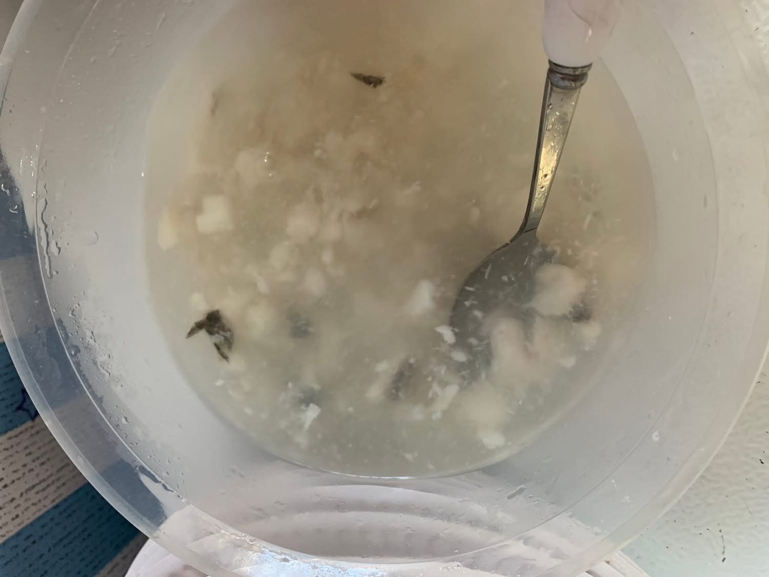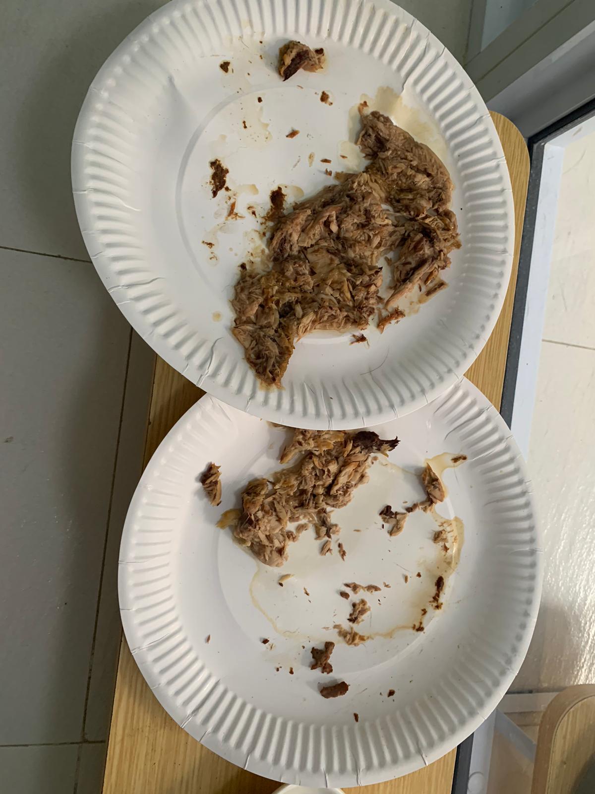 Morning: no poo no pee didn’t eat at all. Serve aixia oldie she finish. Serve another chicken she didn’t eat much, Duno is if cos cora near her.