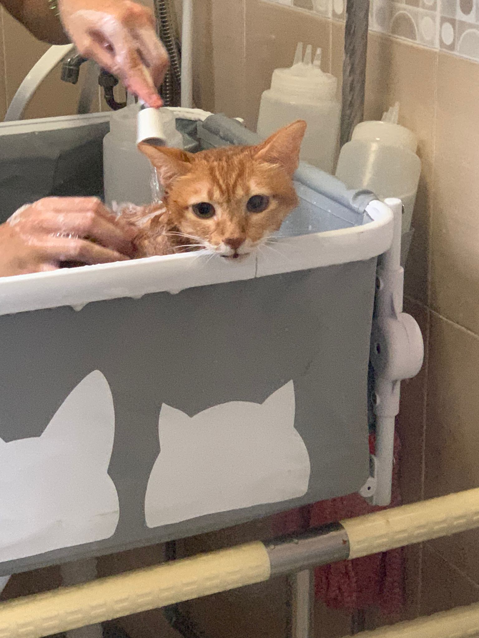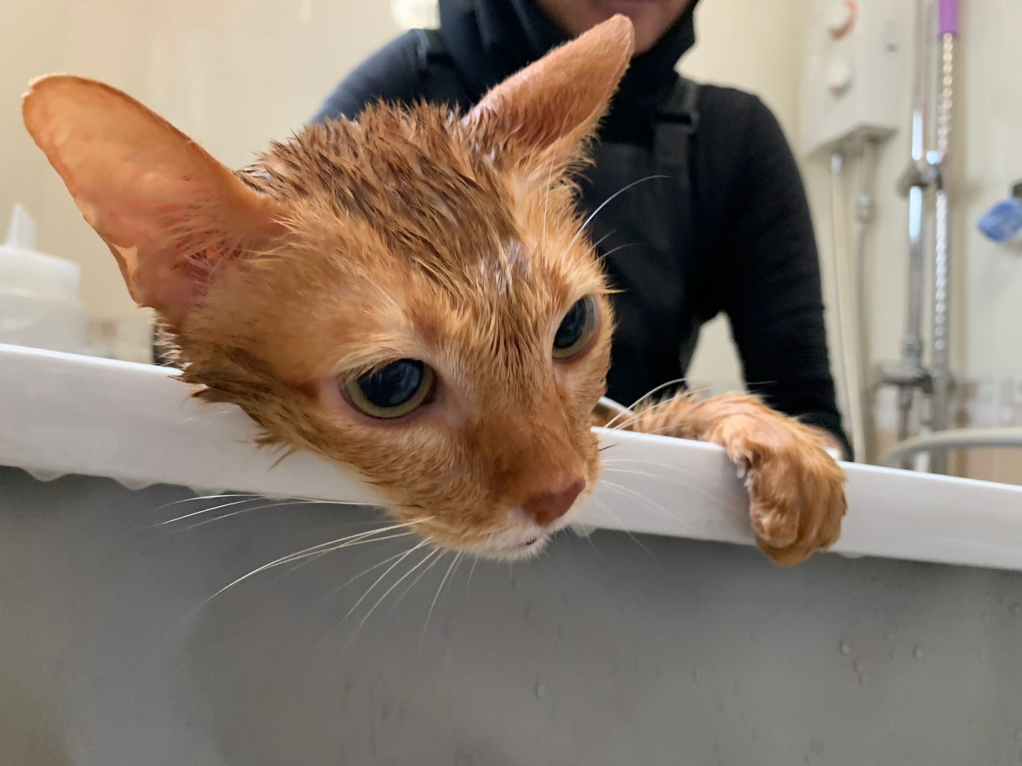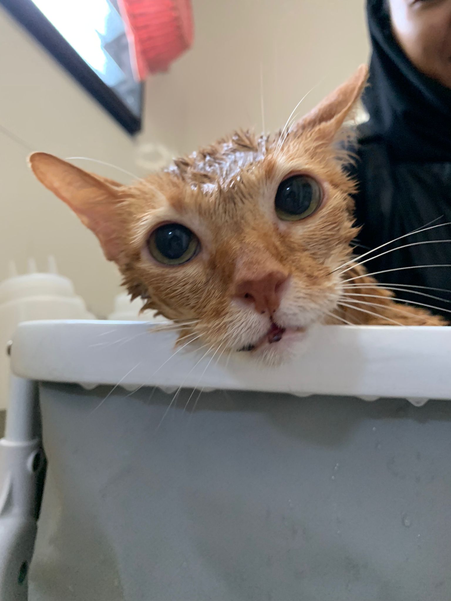 • anyhow touched by pple and I got to bathe her – so many cats affected no choice got to do fast n cold water and only can dry in spa machine for half hour Cos need to bathe the rest (felv)