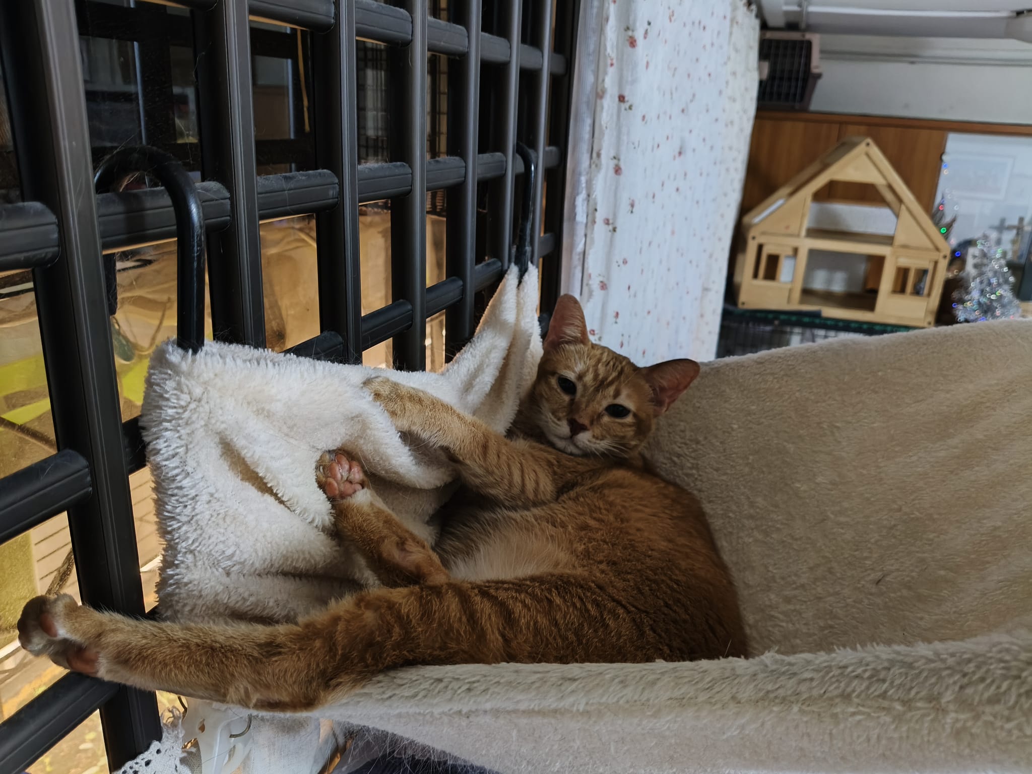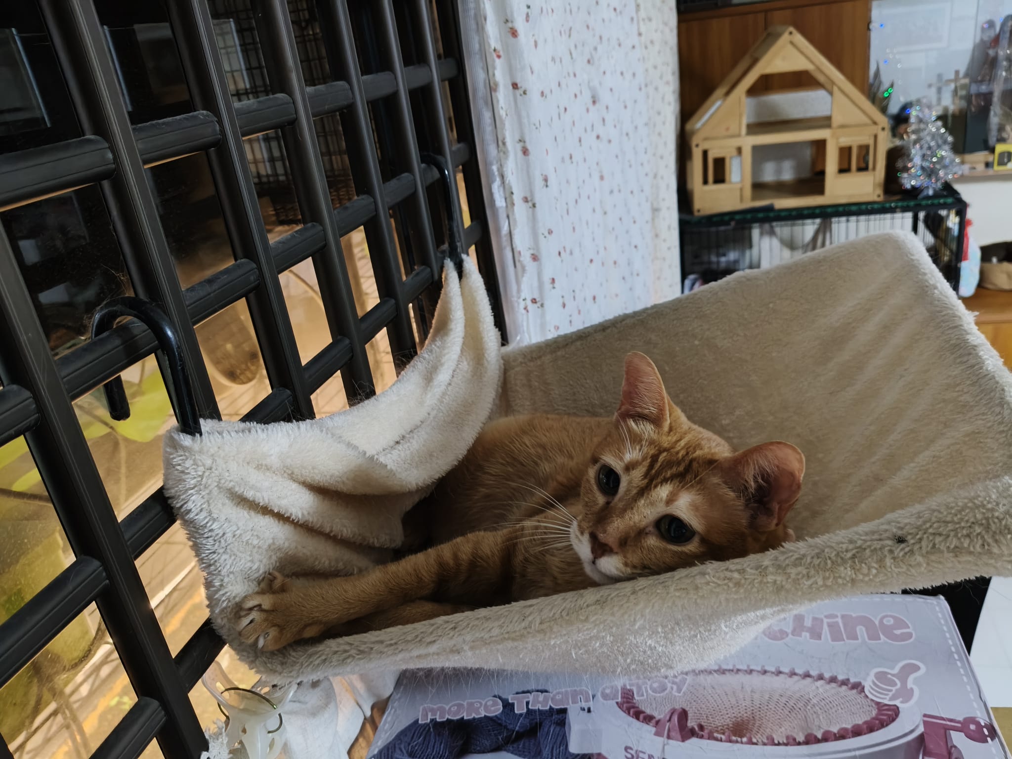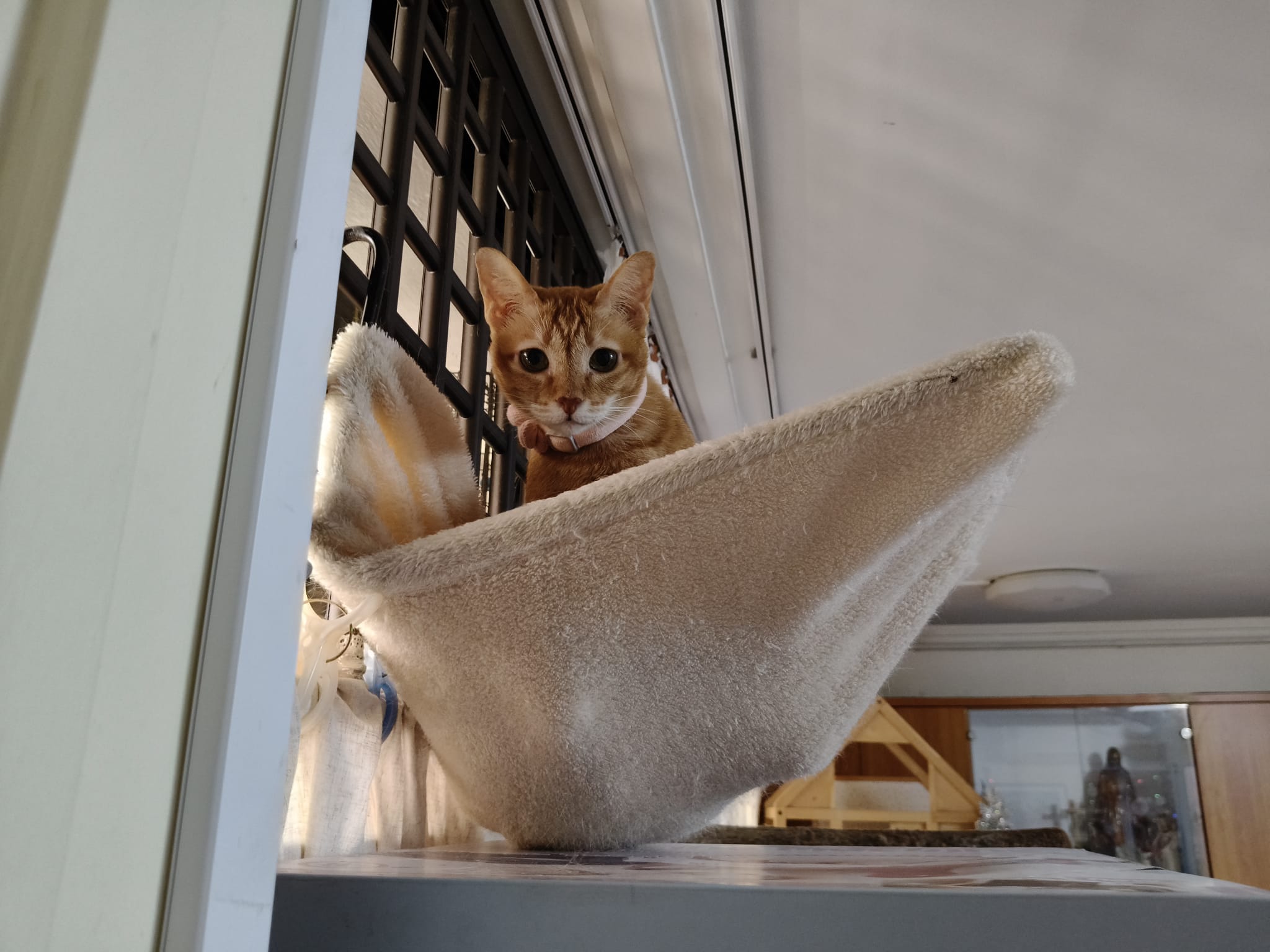12pm++: When we are back from vet, mmm let ah boy roam her area, and Bessie wanna come out too. She go straight to the soft mehhhhhhhh hammock