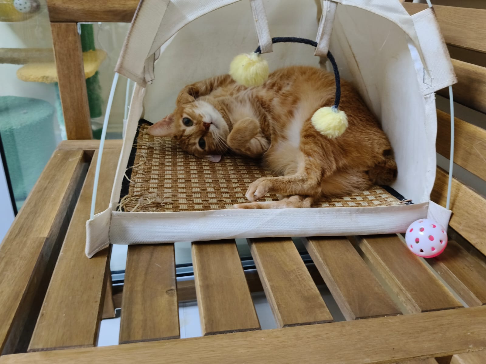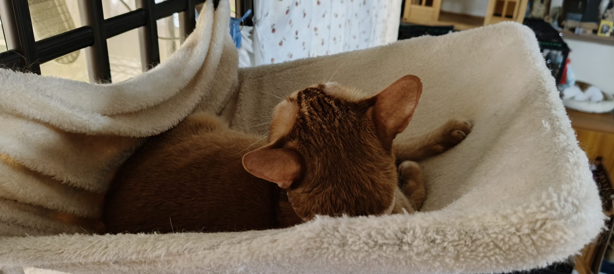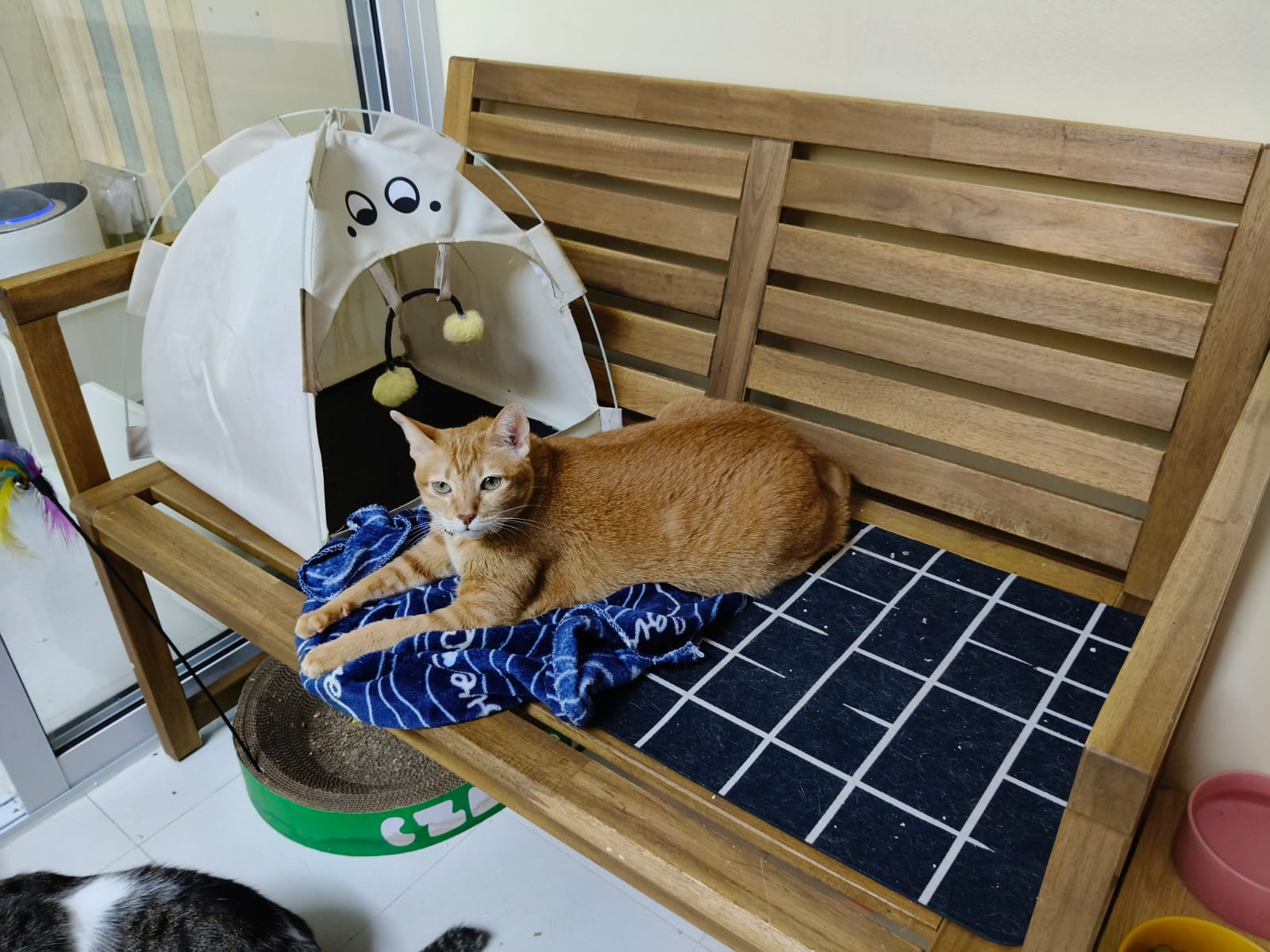 12pm++: When we are back from vet, mmm let ah boy roam her area, and Bessie wanna come out too. She go straight to the soft mehhhhhhhh hammock