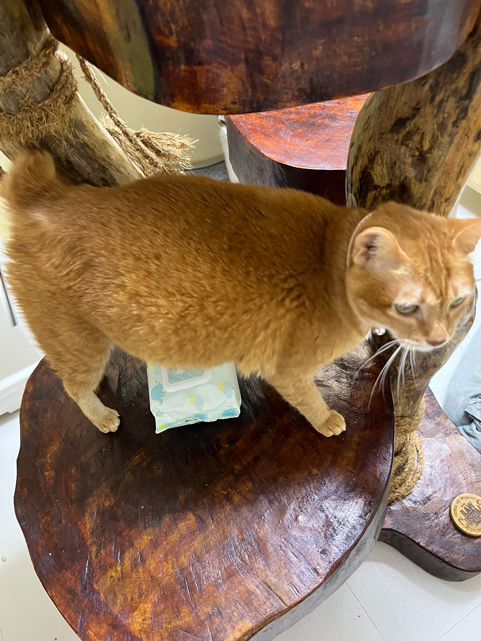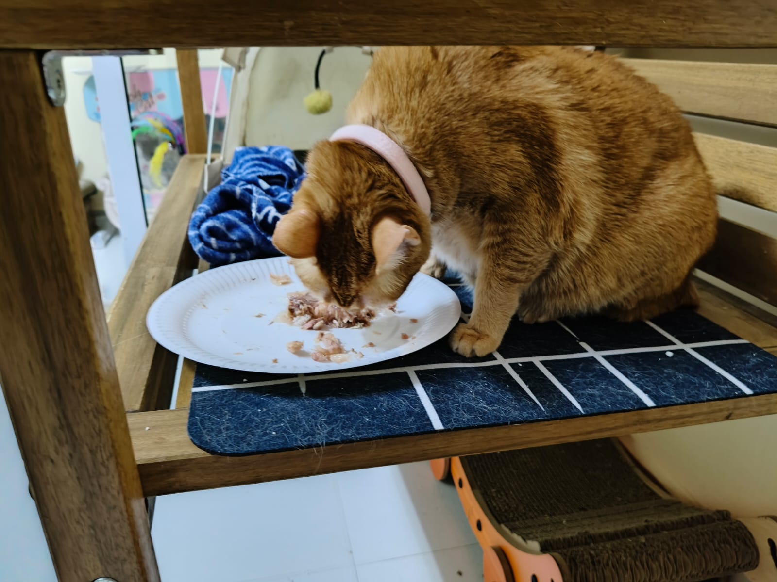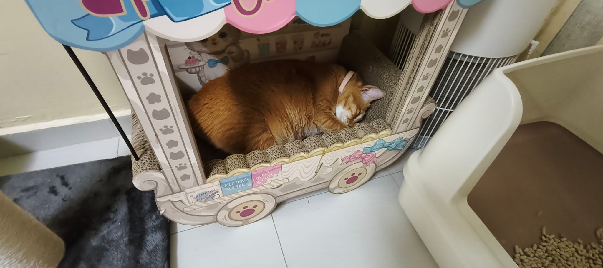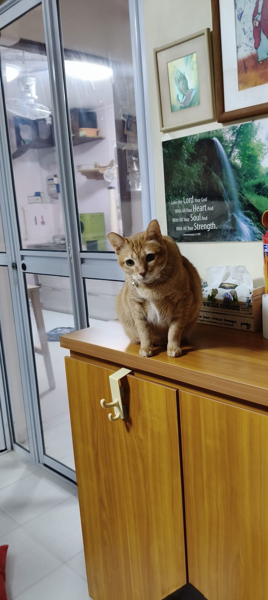 4pm++: I go back sayang n feed them snack. Bessie is high up on a cabinet, she don’t come down.