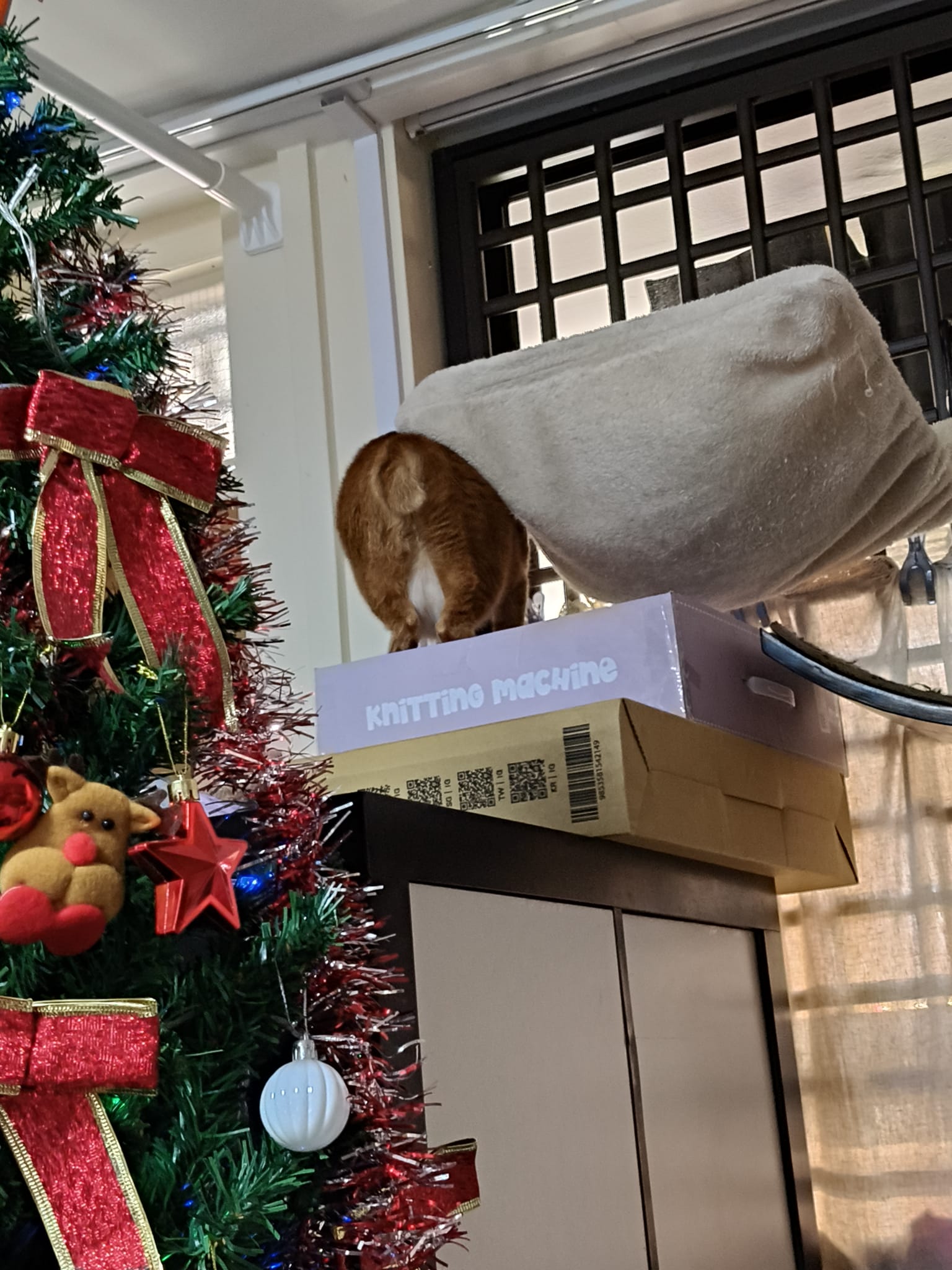 12pm+: I’m back from vet w ah boy and didi, Bessie is playing w the xmas presents ha. Mmm let her roam again w Jack