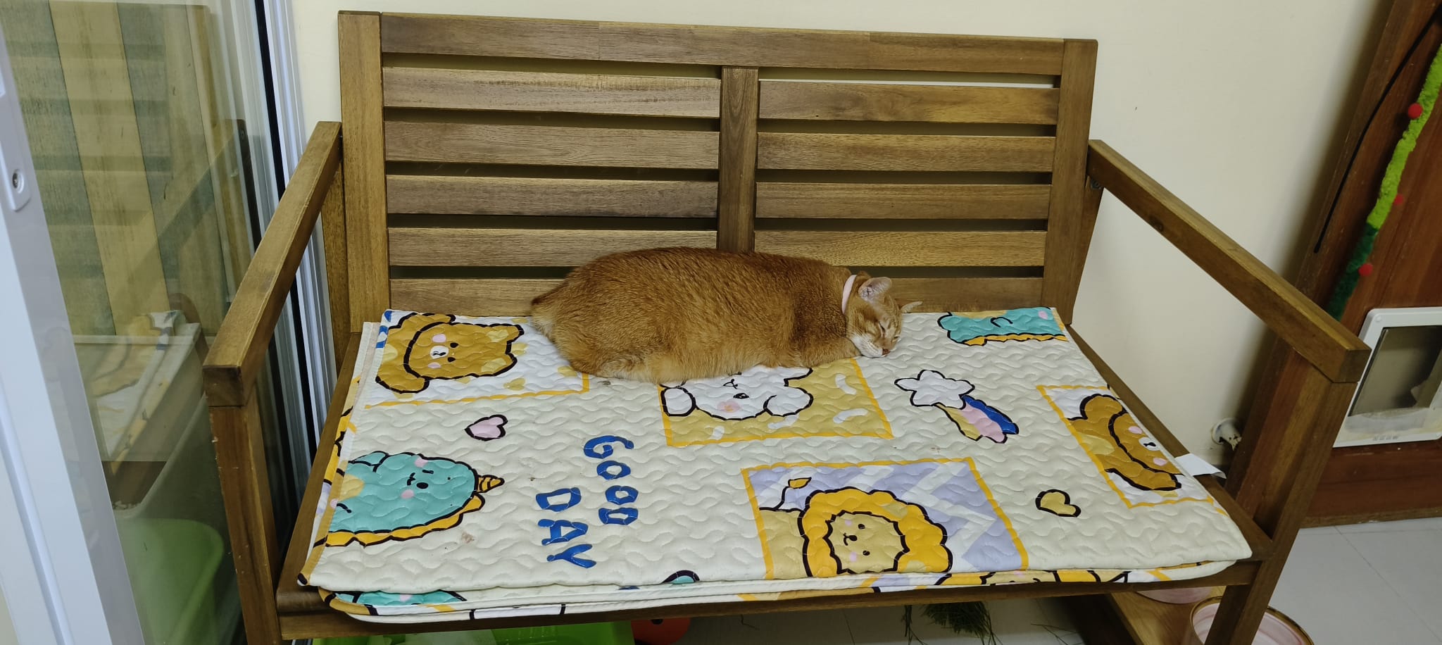 3.40pm; mmm.”I let Bessie out. She was sleeping n Didi went n smack her to take her place on the bed. She looked so sad. Now sleeping on hammock above door” – her weight seem to be lower, she still come out to living room when ah boy come out.