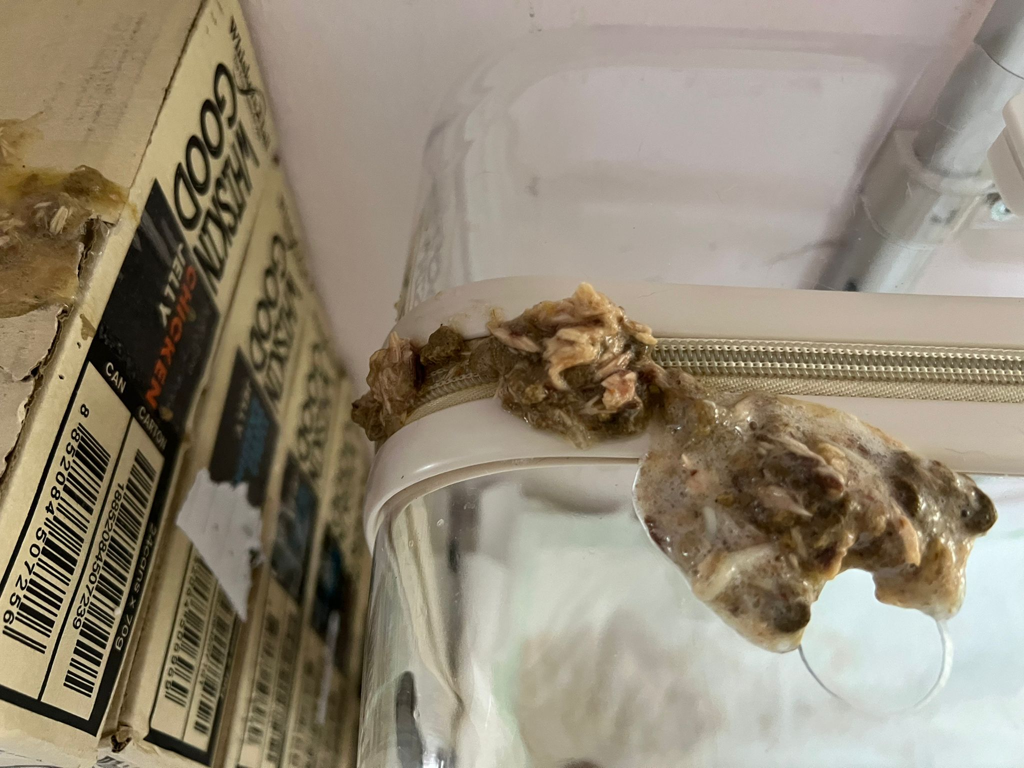 • naughty Siak she see the kibble rack is empty and she pee thru the holes onto the floor