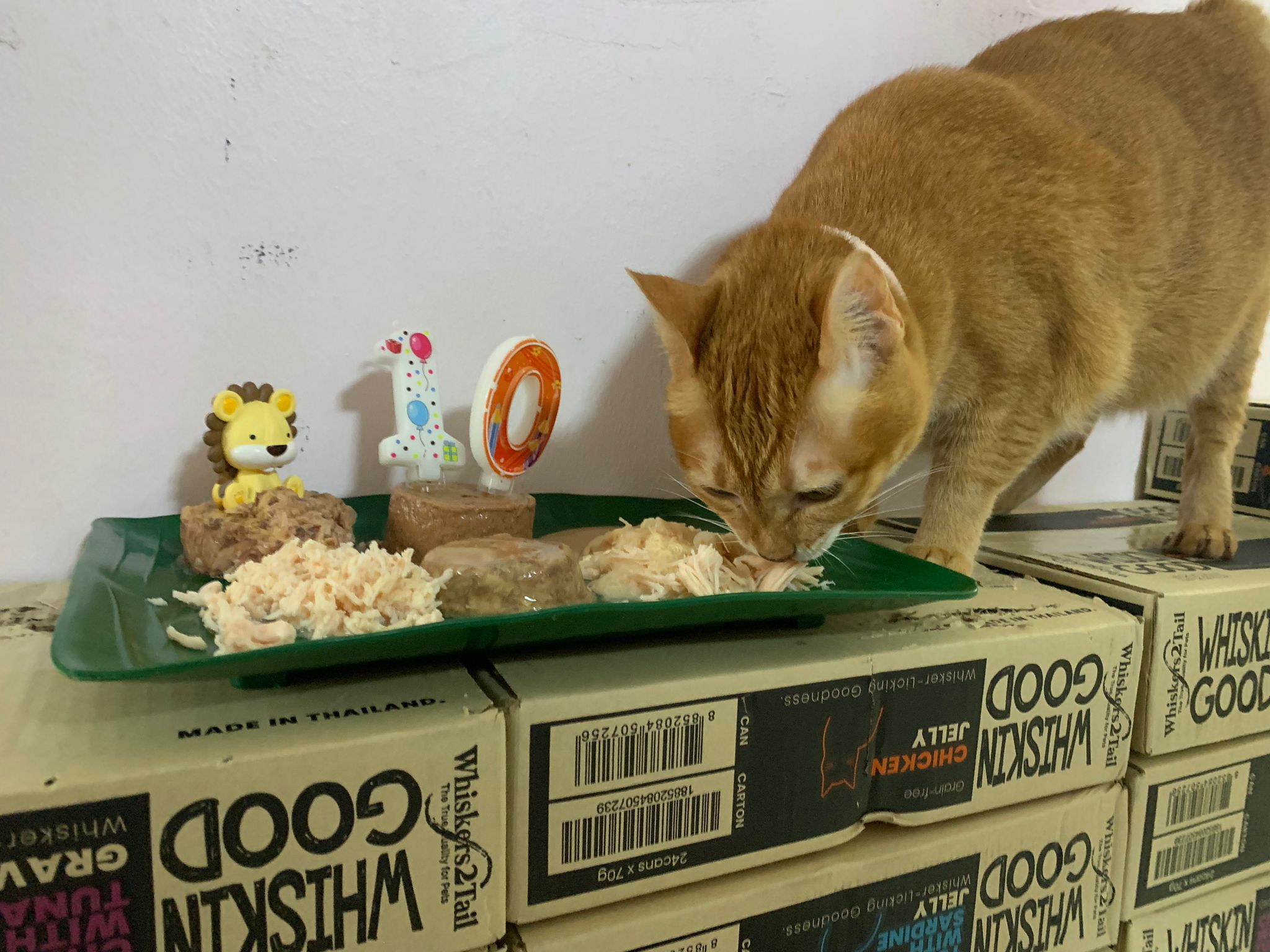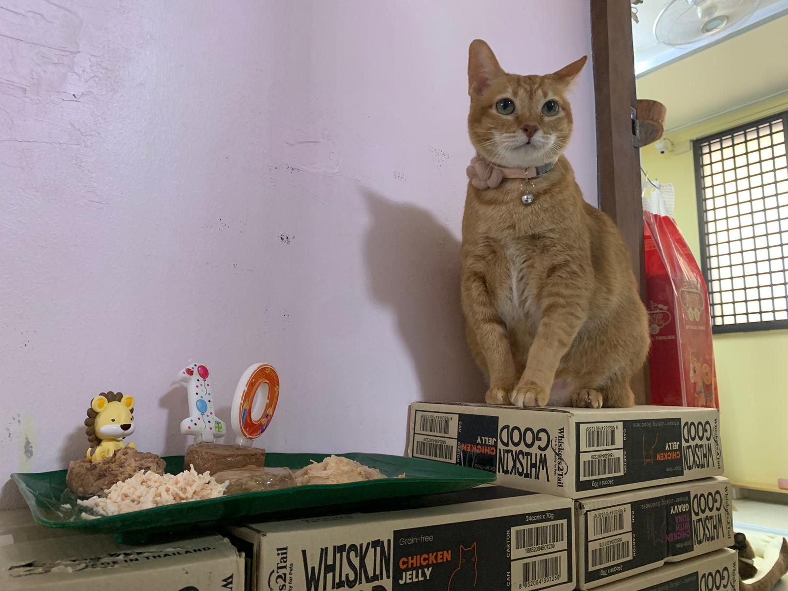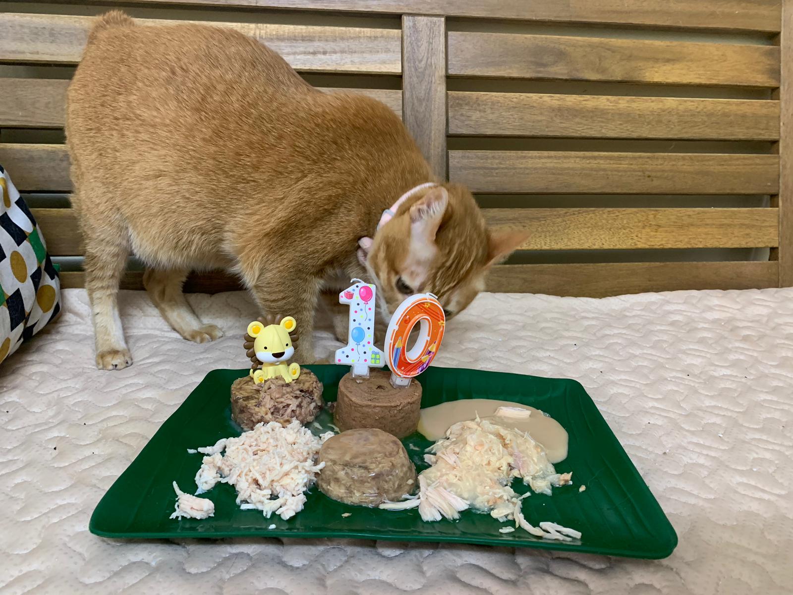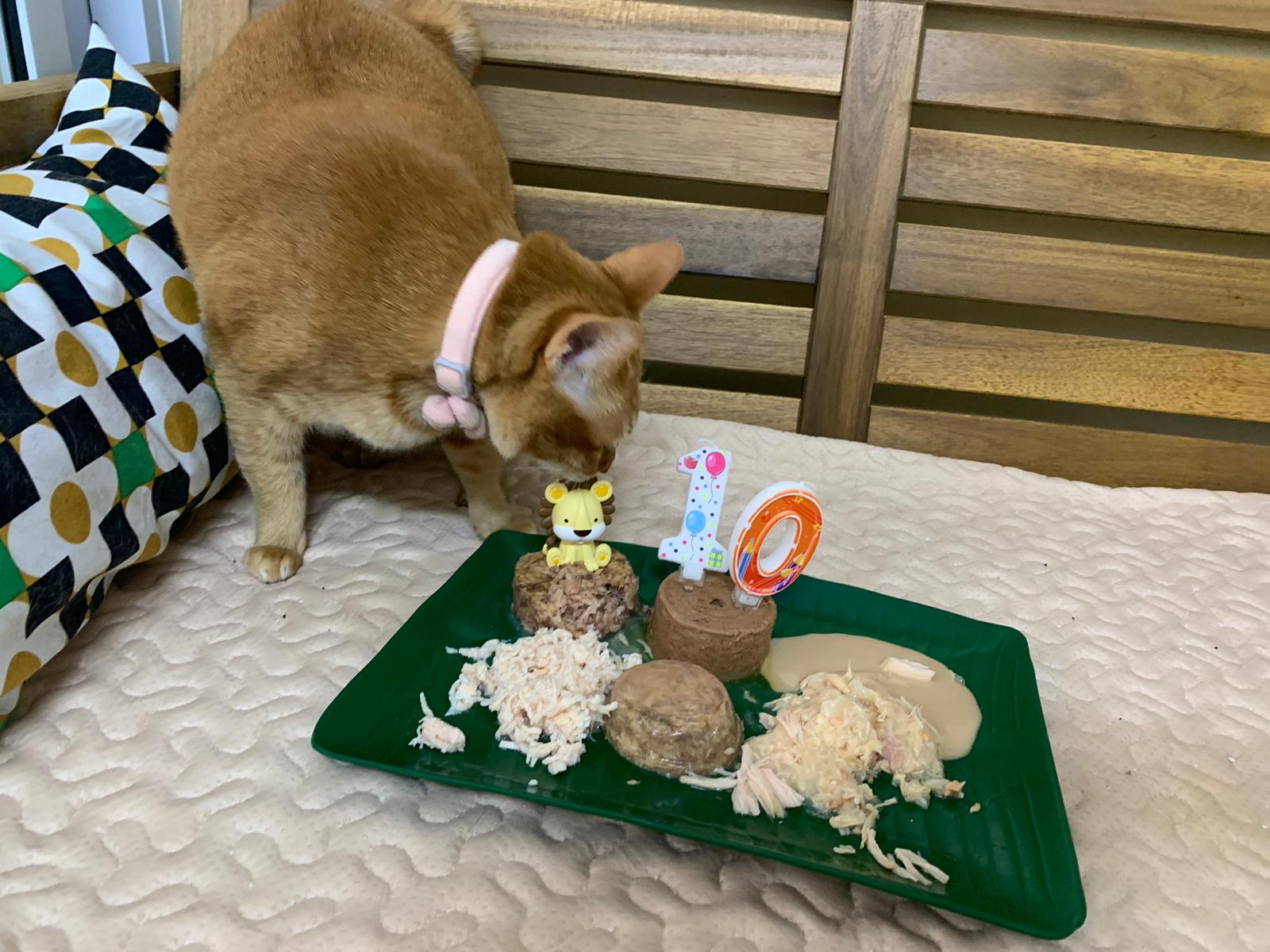 11am: celebrate her 10th bday in 猫房. Manja keep wanting her plate. Bessie got eat kakato chicken. And Fancy Feast