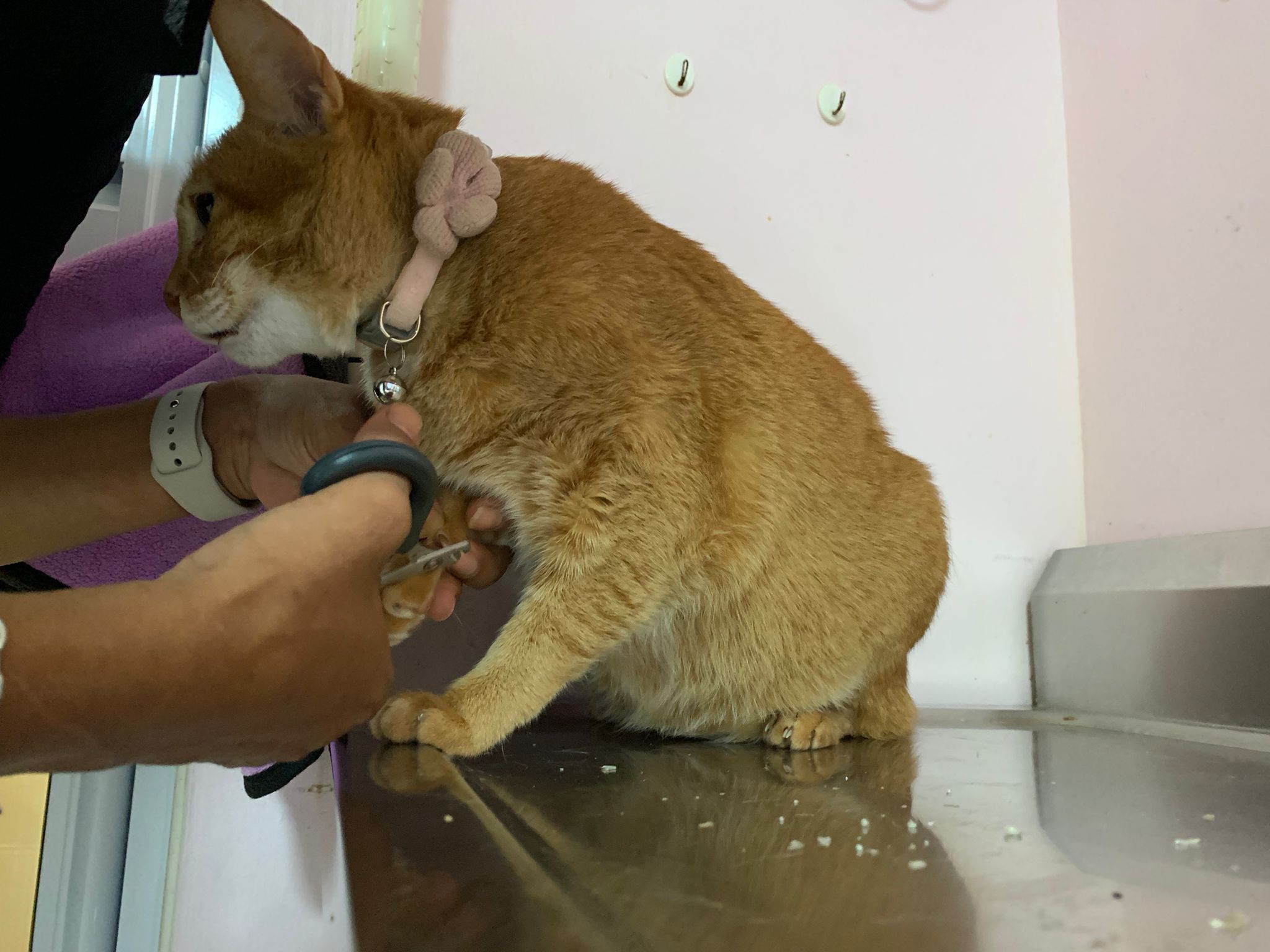 1.20pm: 4th to start nails cutting and she growl and good girl la. But don’t like pple cutting her nails. Groomer say her head so small n body so cute and round
