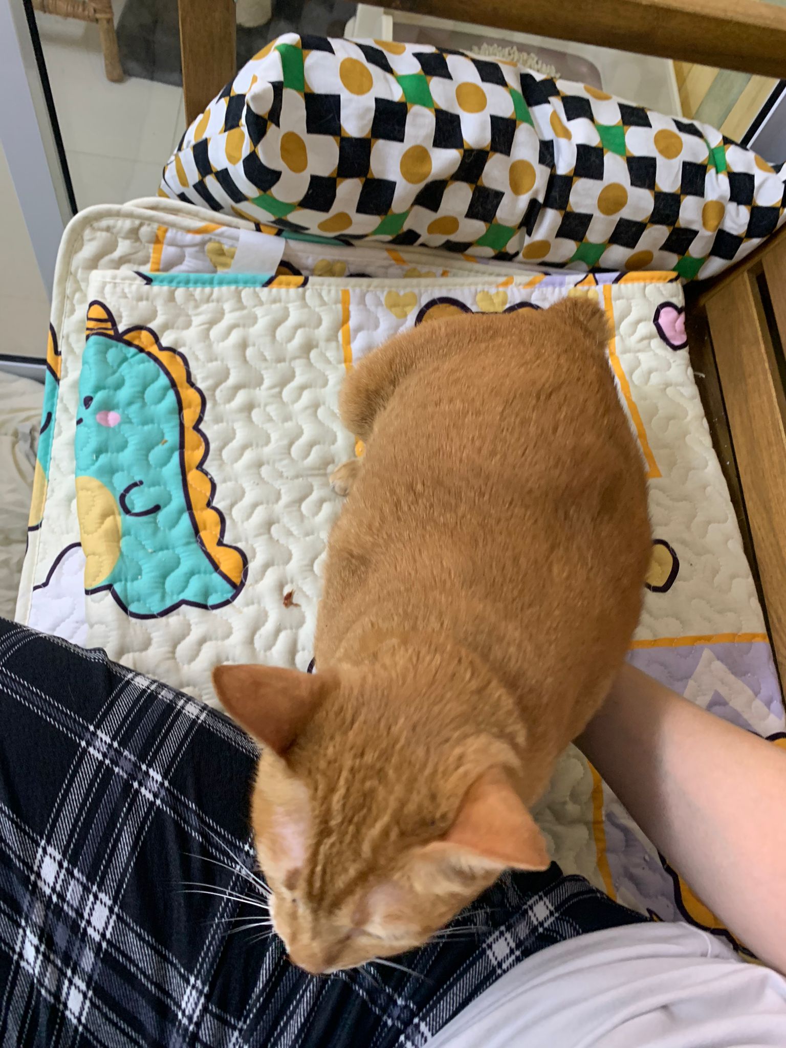 6.58pm; mmm;”She call n call so I let her out” – ha Bessie sleep on the living room hanging bed
