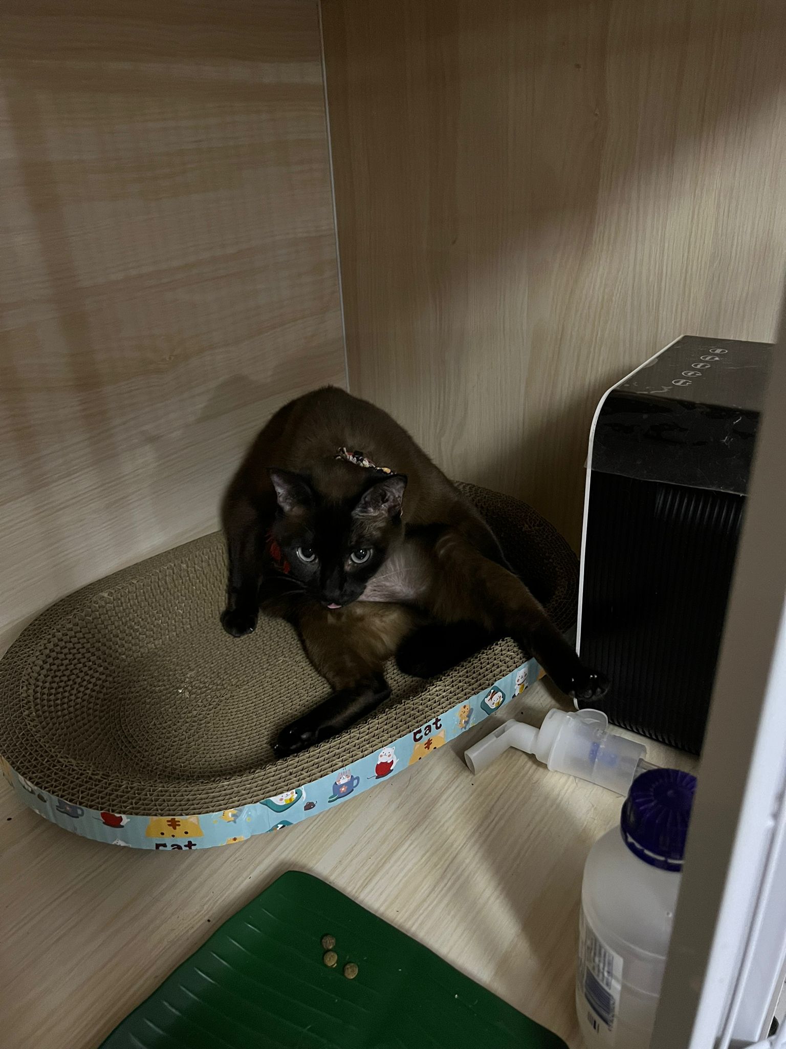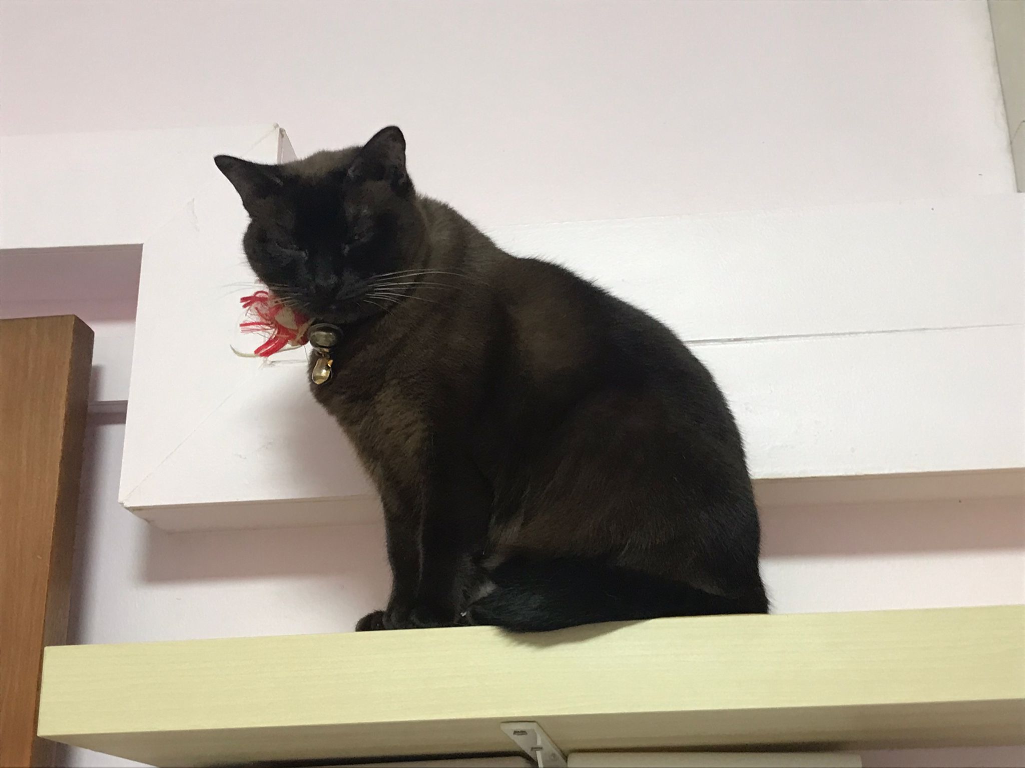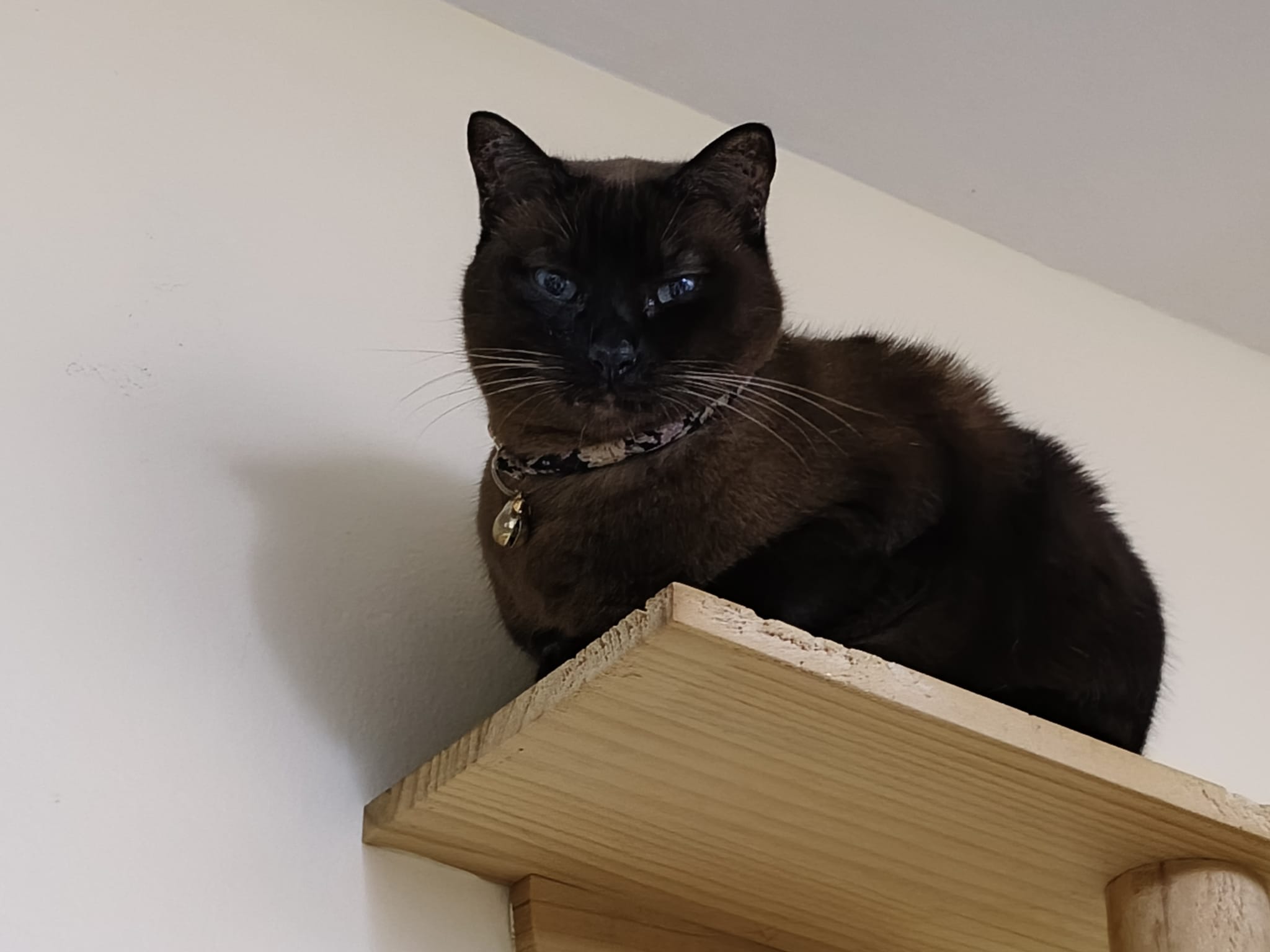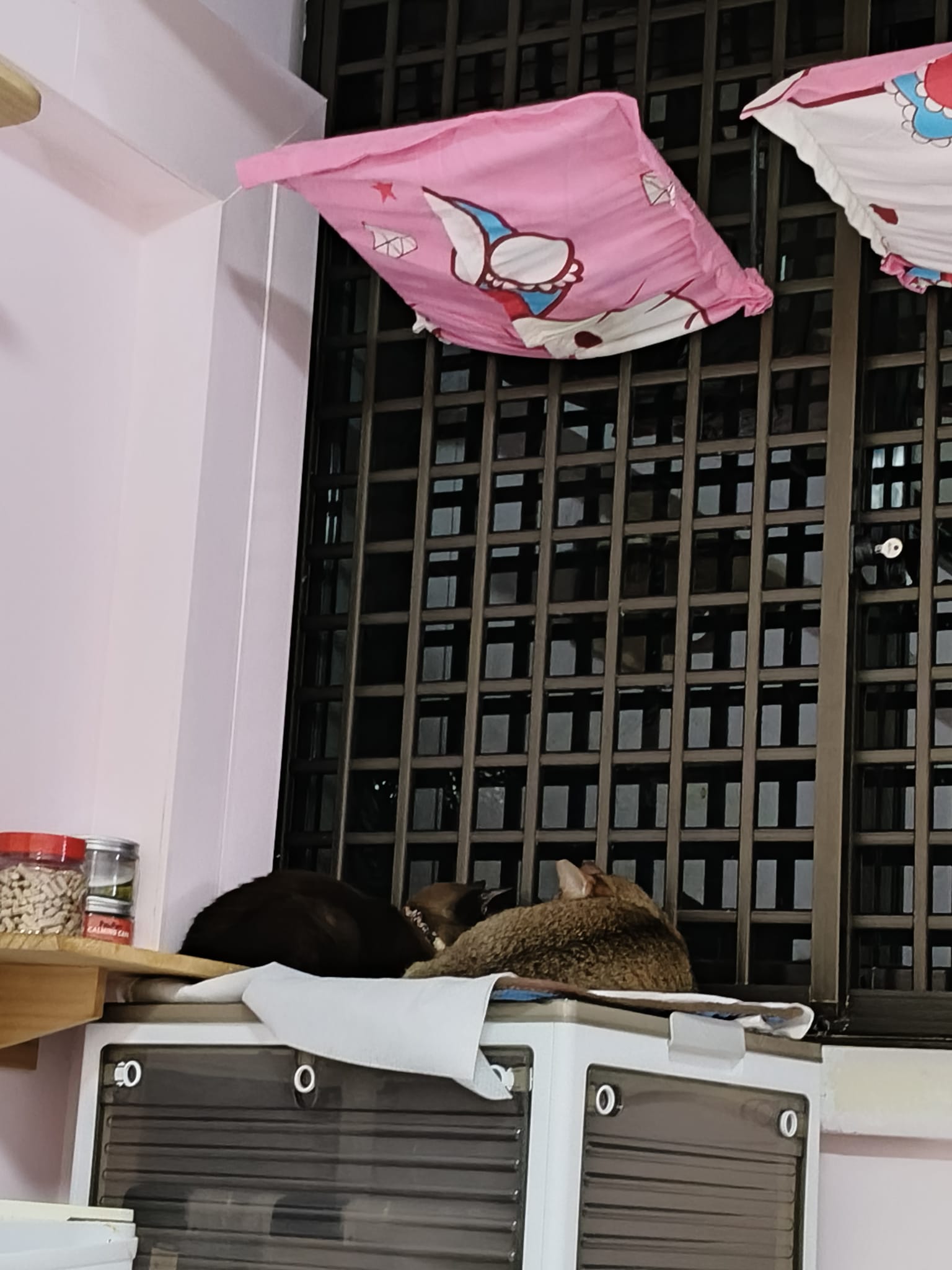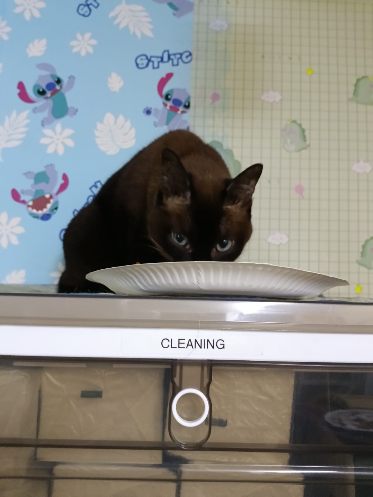 Jump onto fridge during med round, get scolding from me n she run to the tv room, when I’m sitting at tv room to do some log while charging phone she come sayang me n I sayang her.