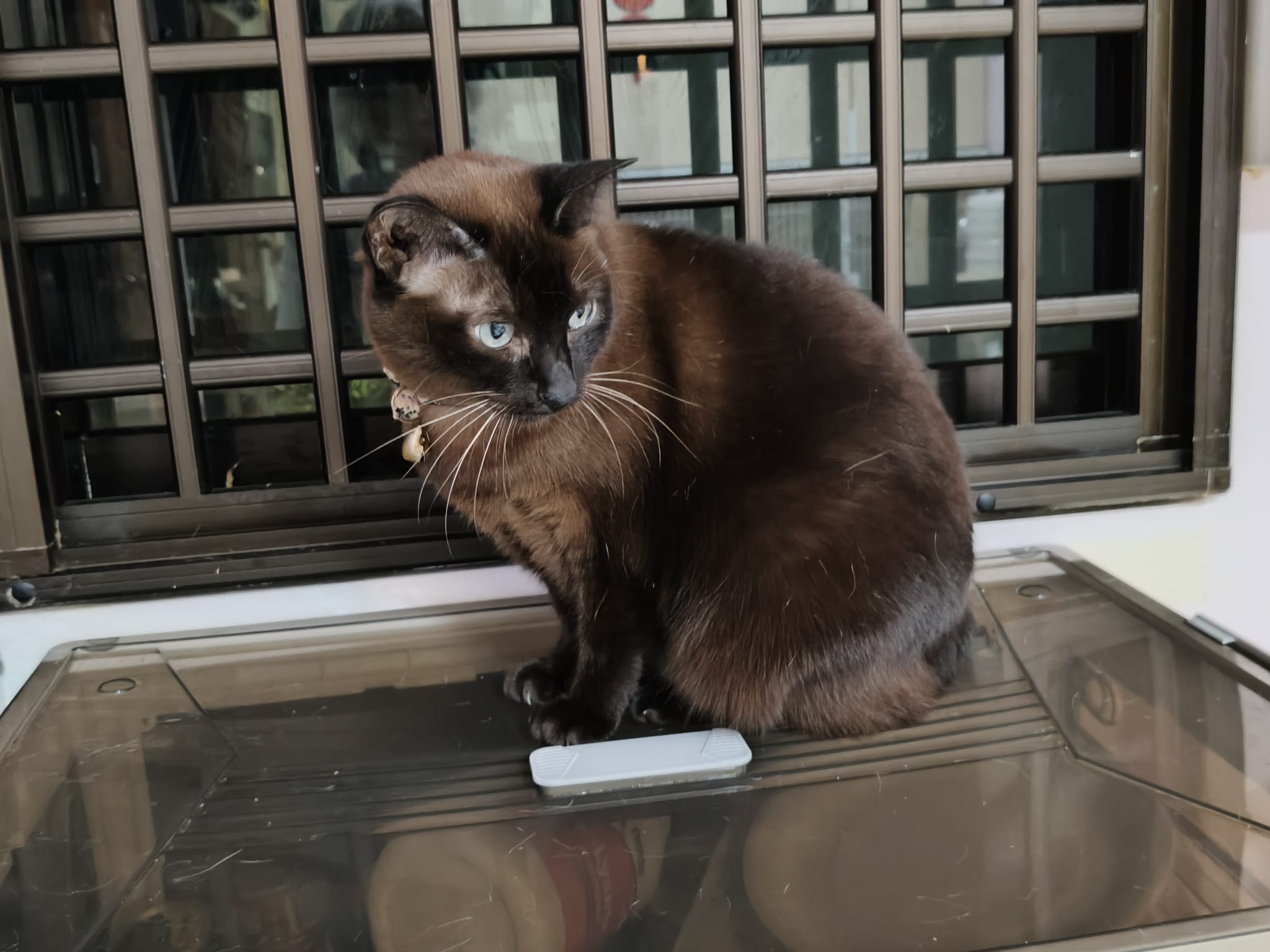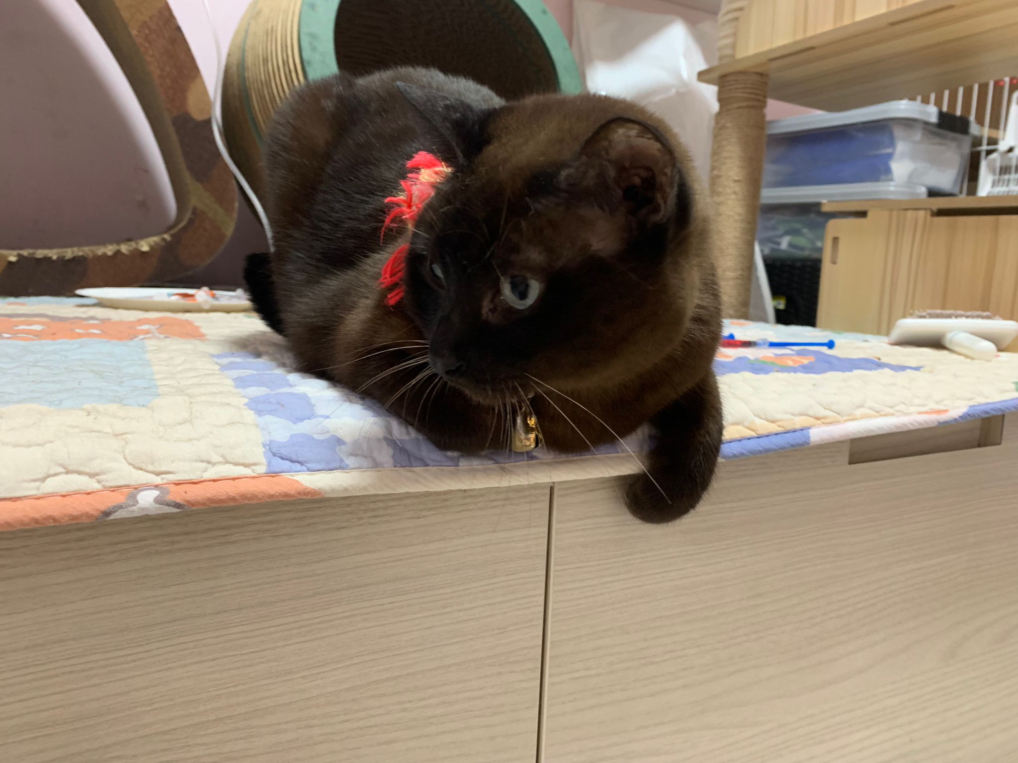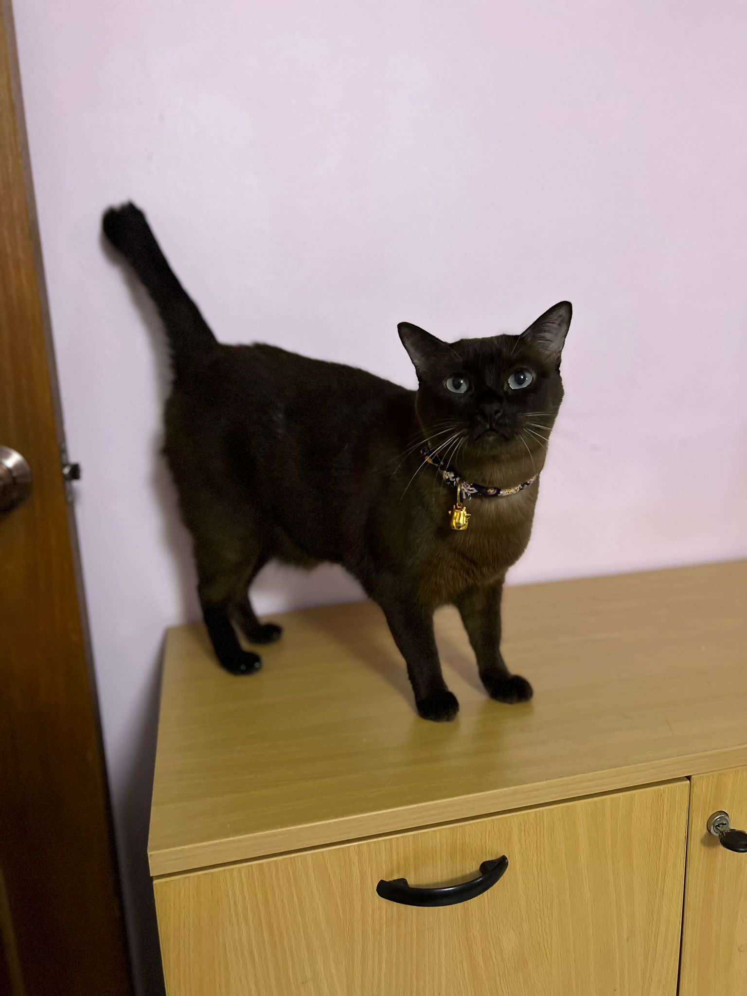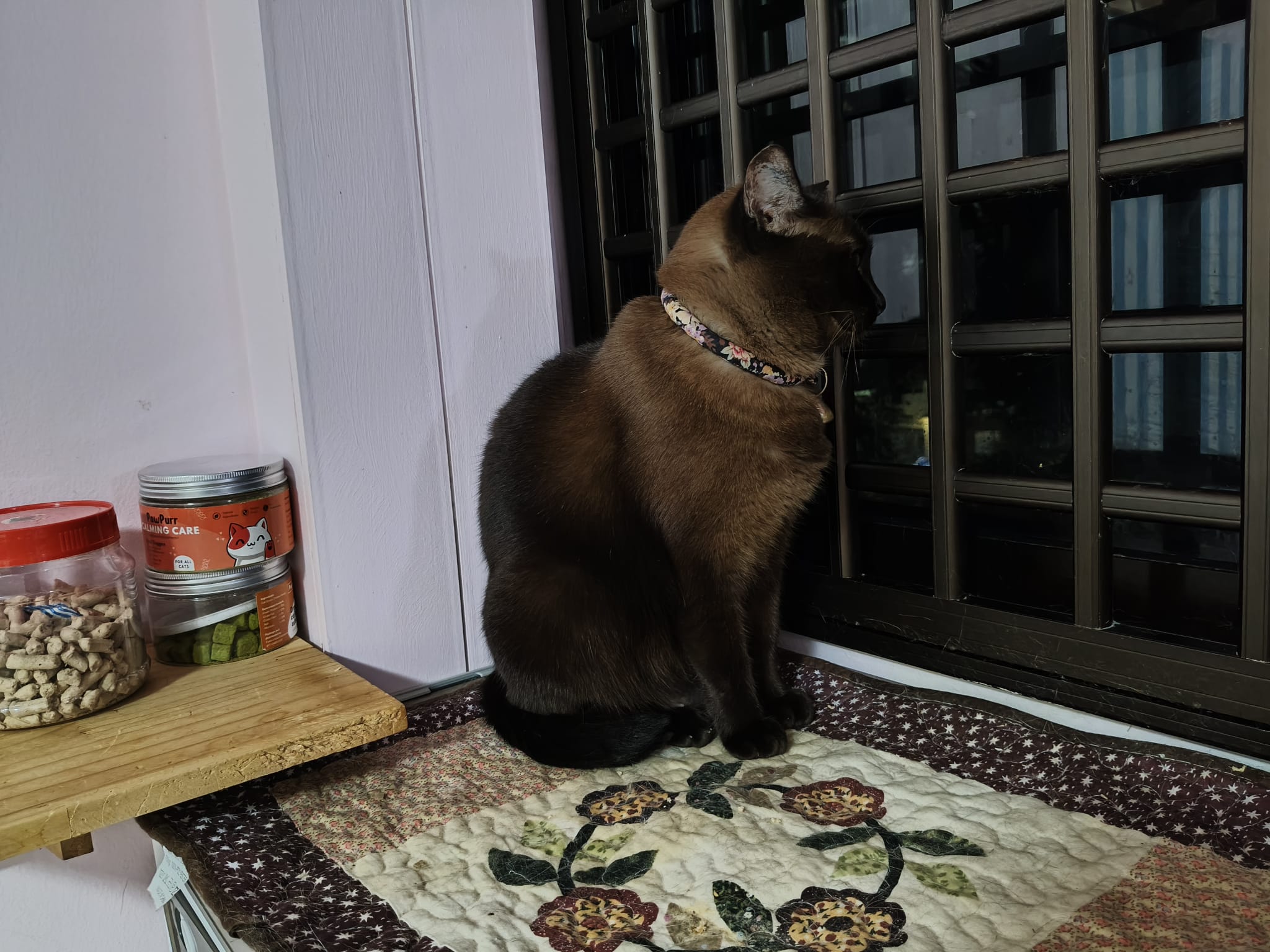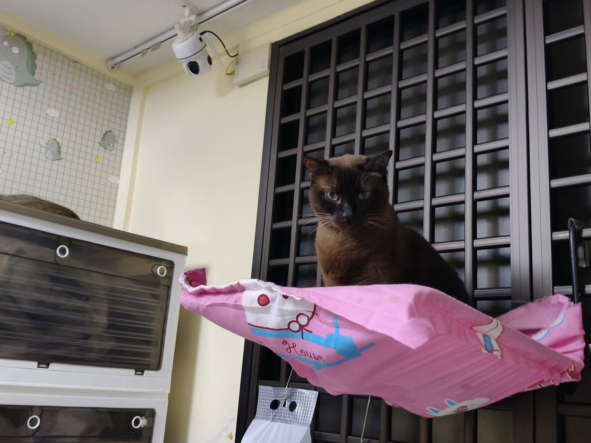 Jump onto fridge during med round, get scolding from me n she run to the tv room, when I’m sitting at tv room to do some log while charging phone she come sayang me n I sayang her.