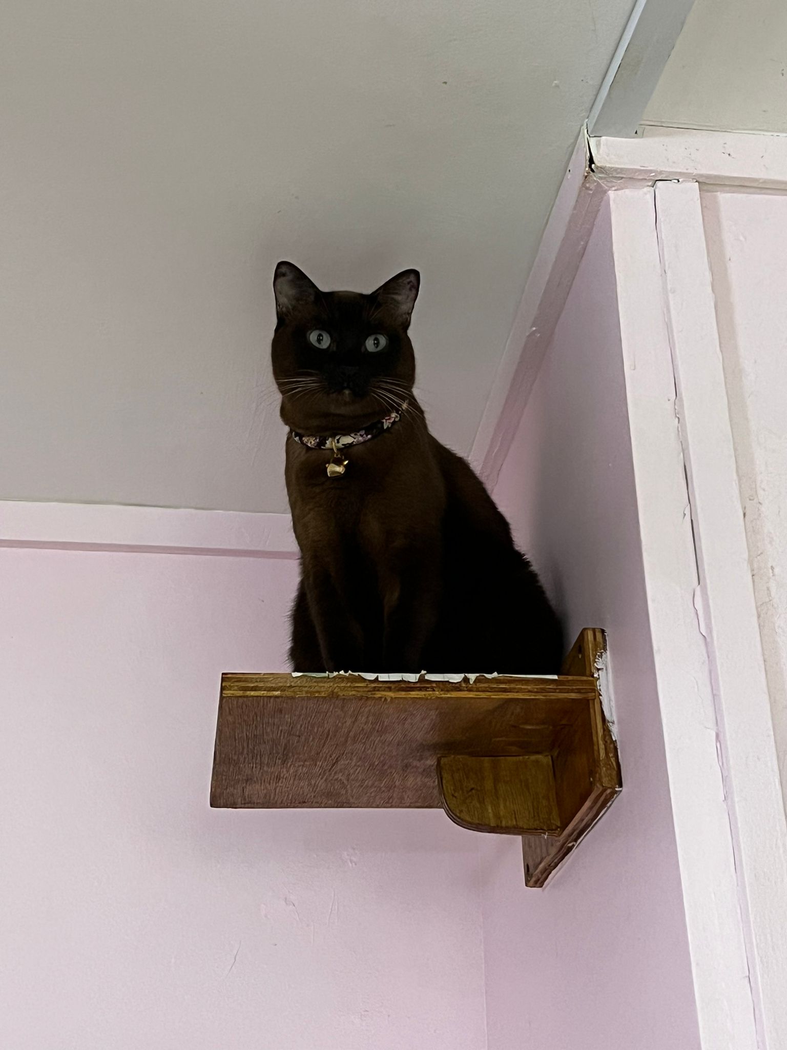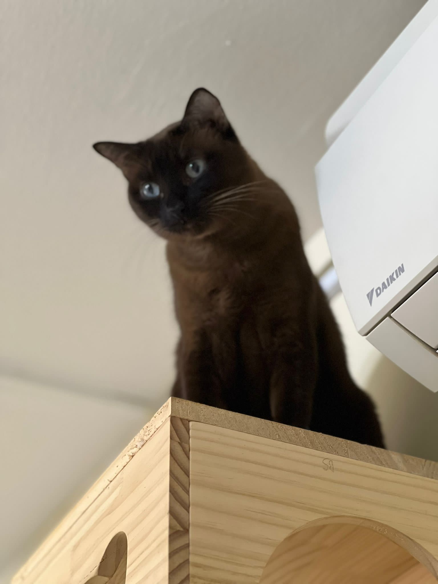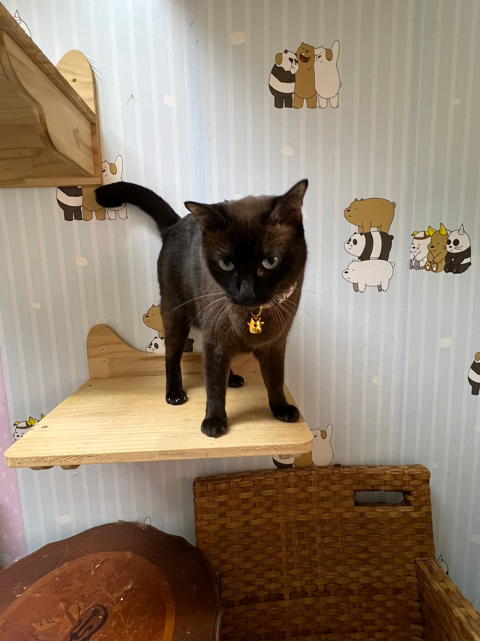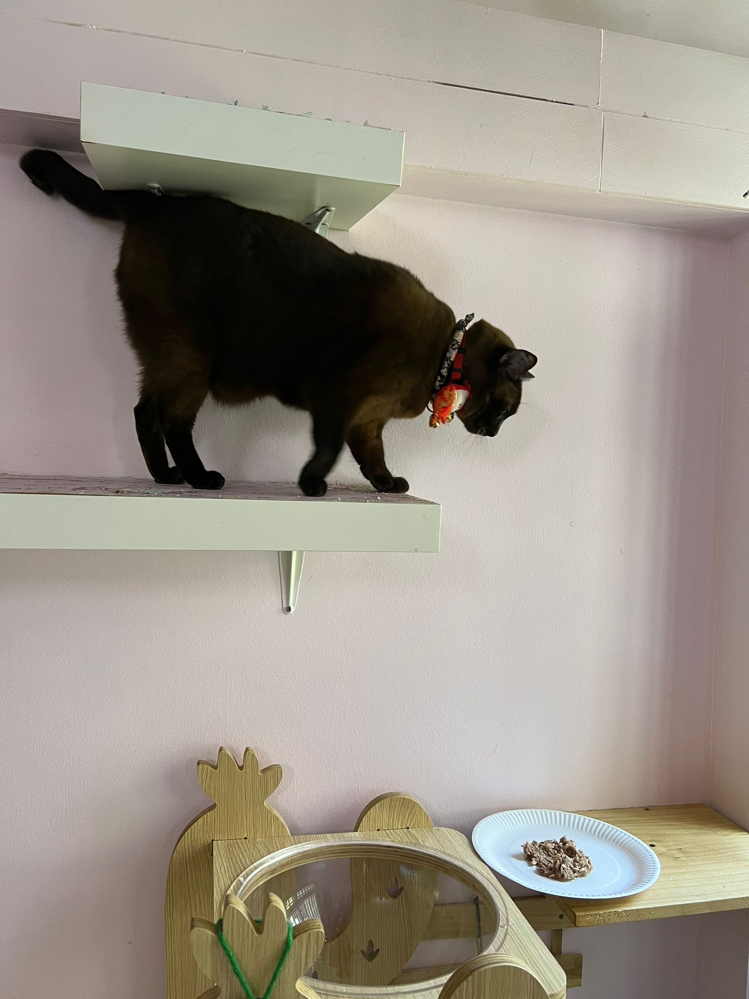 Jump onto fridge during med round, get scolding from me n she run to the tv room, when I’m sitting at tv room to do some log while charging phone she come sayang me n I sayang her.