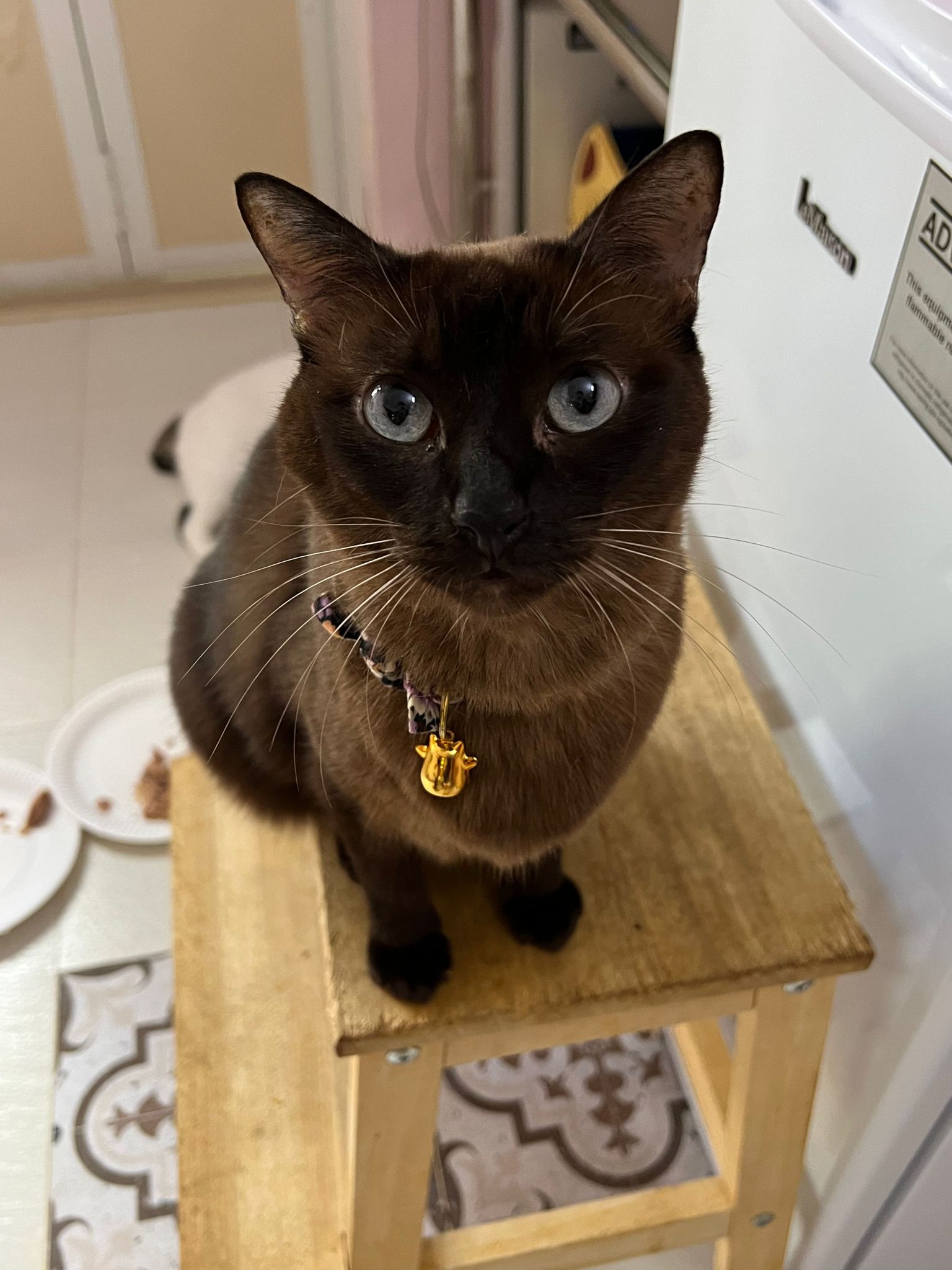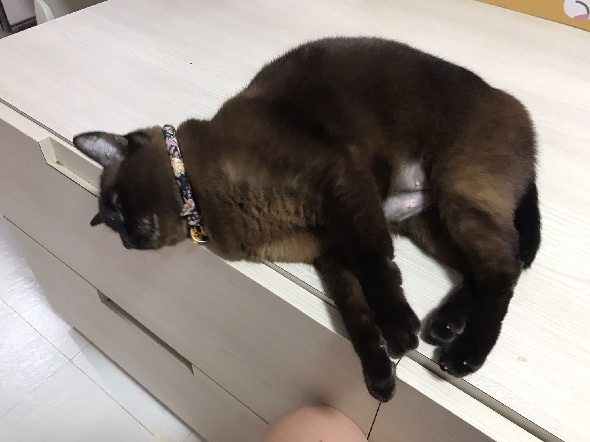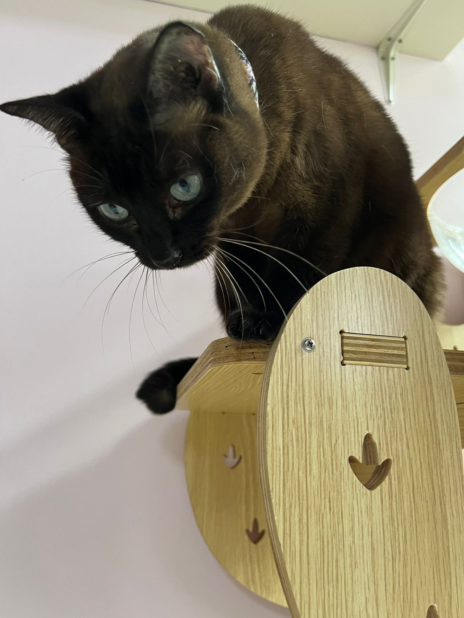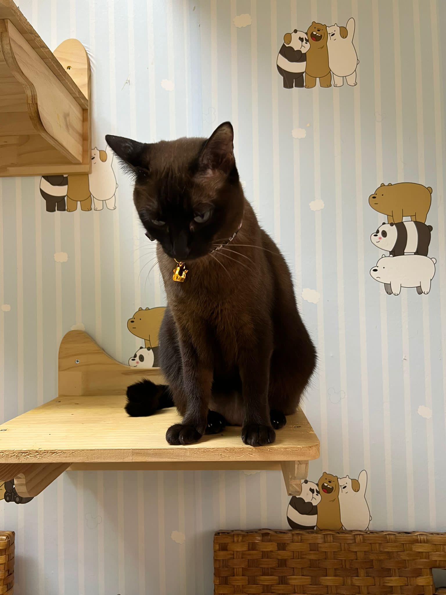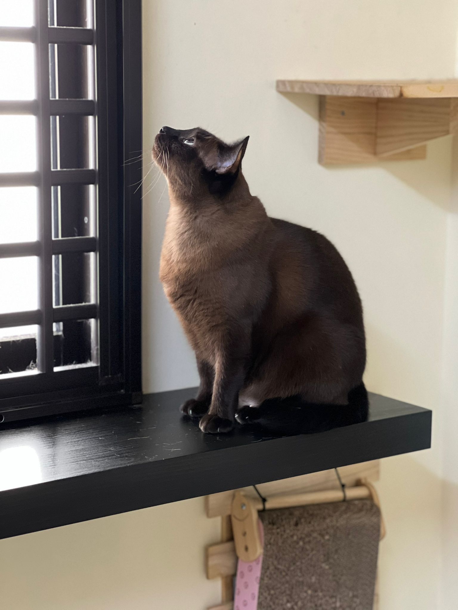 Jump onto fridge during med round, get scolding from me n she run to the tv room, when I’m sitting at tv room to do some log while charging phone she come sayang me n I sayang her.