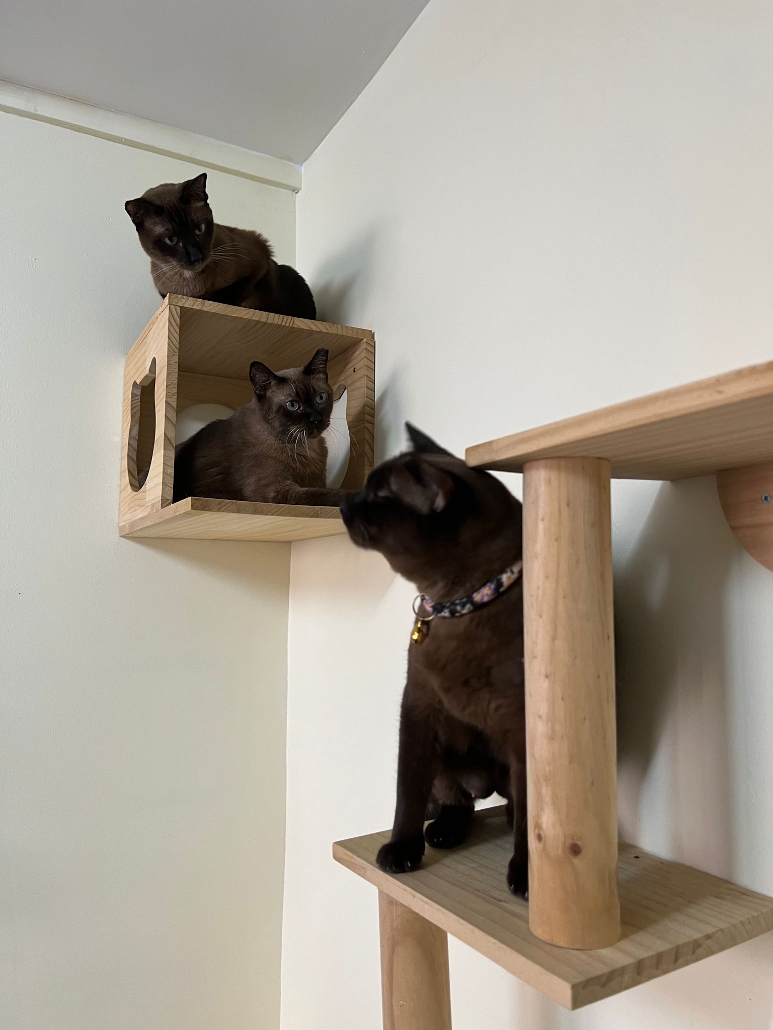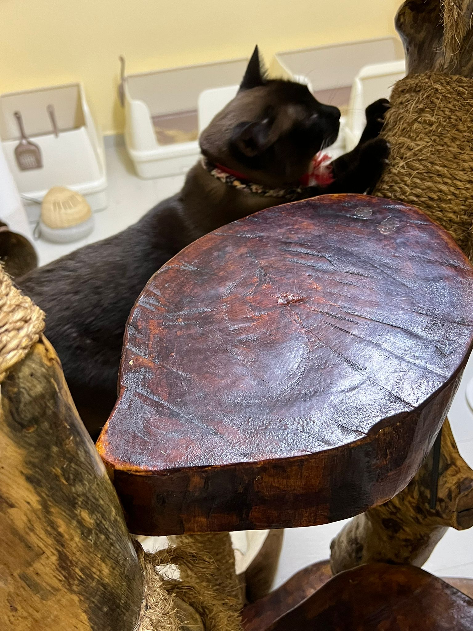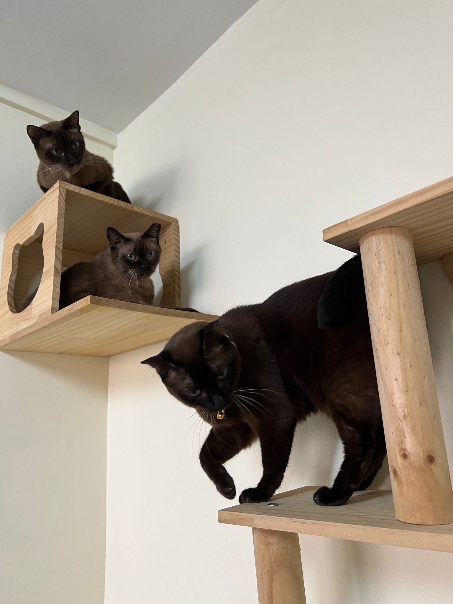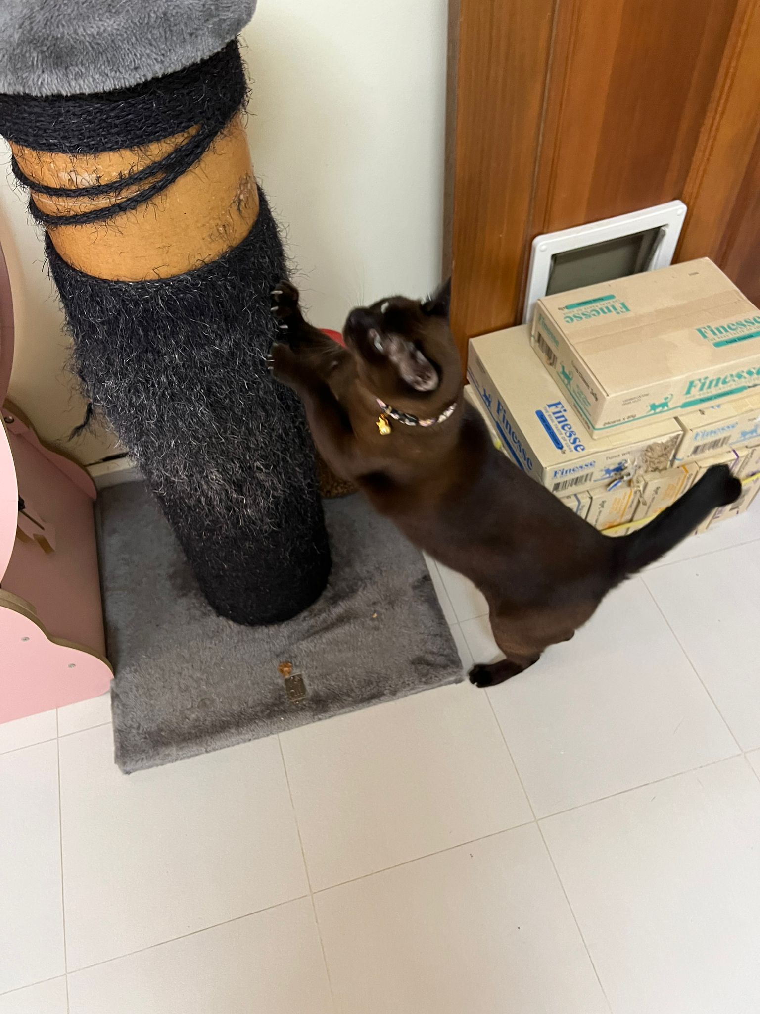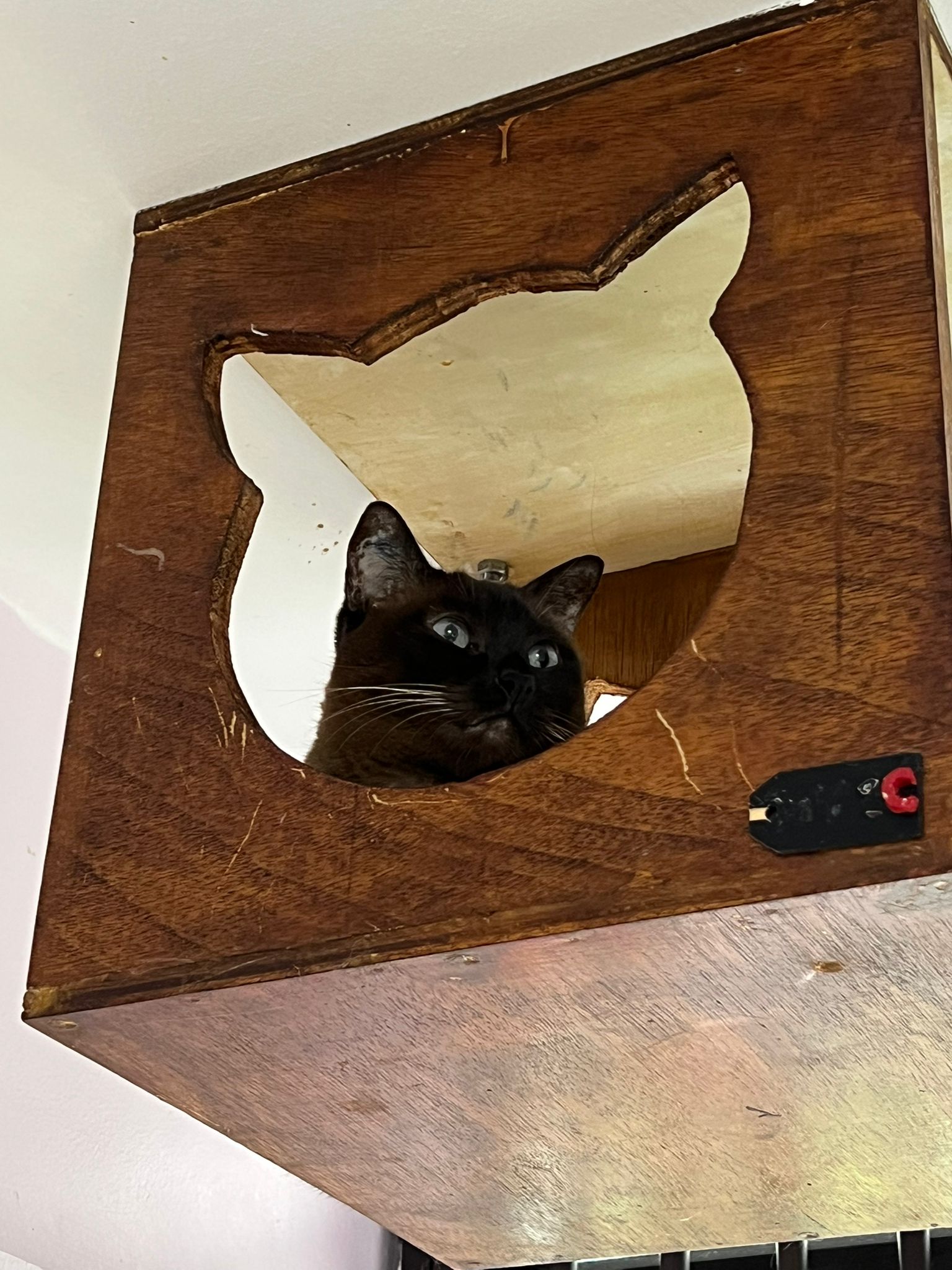 Jump onto fridge during med round, get scolding from me n she run to the tv room, when I’m sitting at tv room to do some log while charging phone she come sayang me n I sayang her.