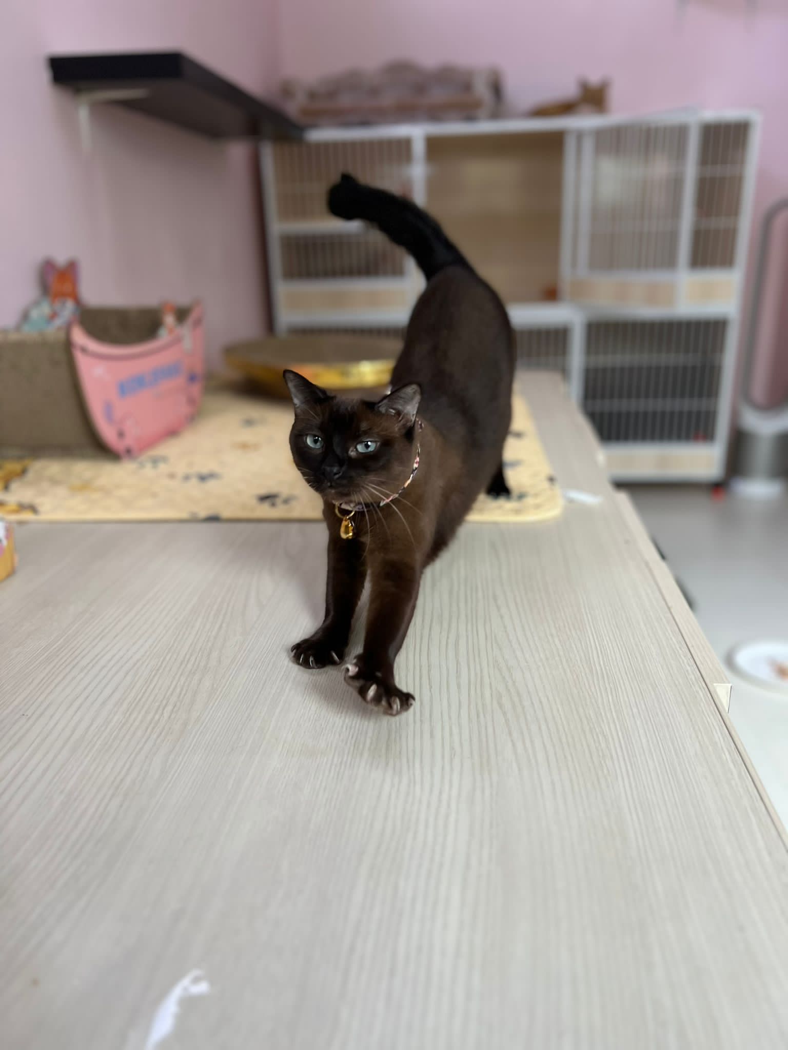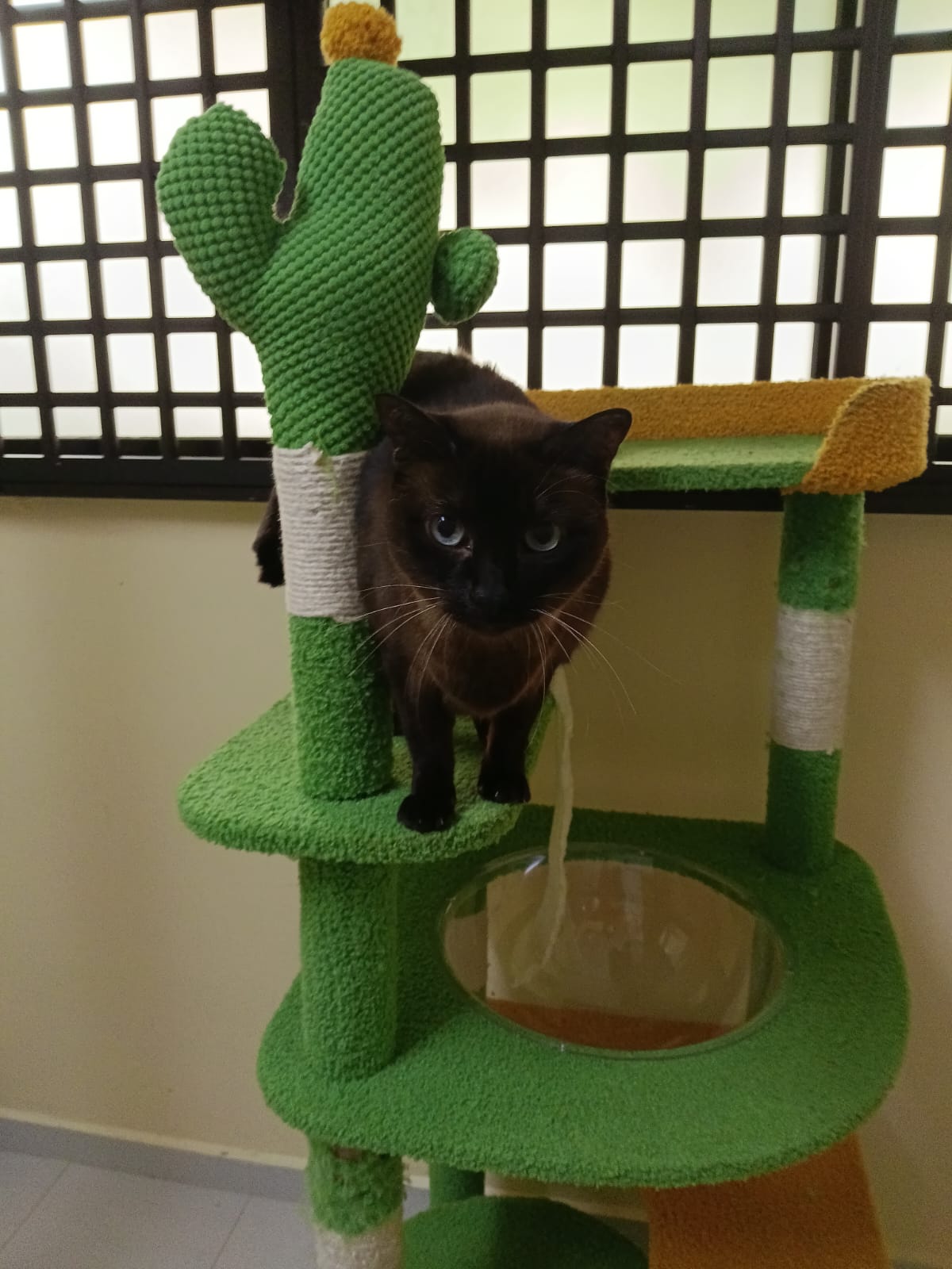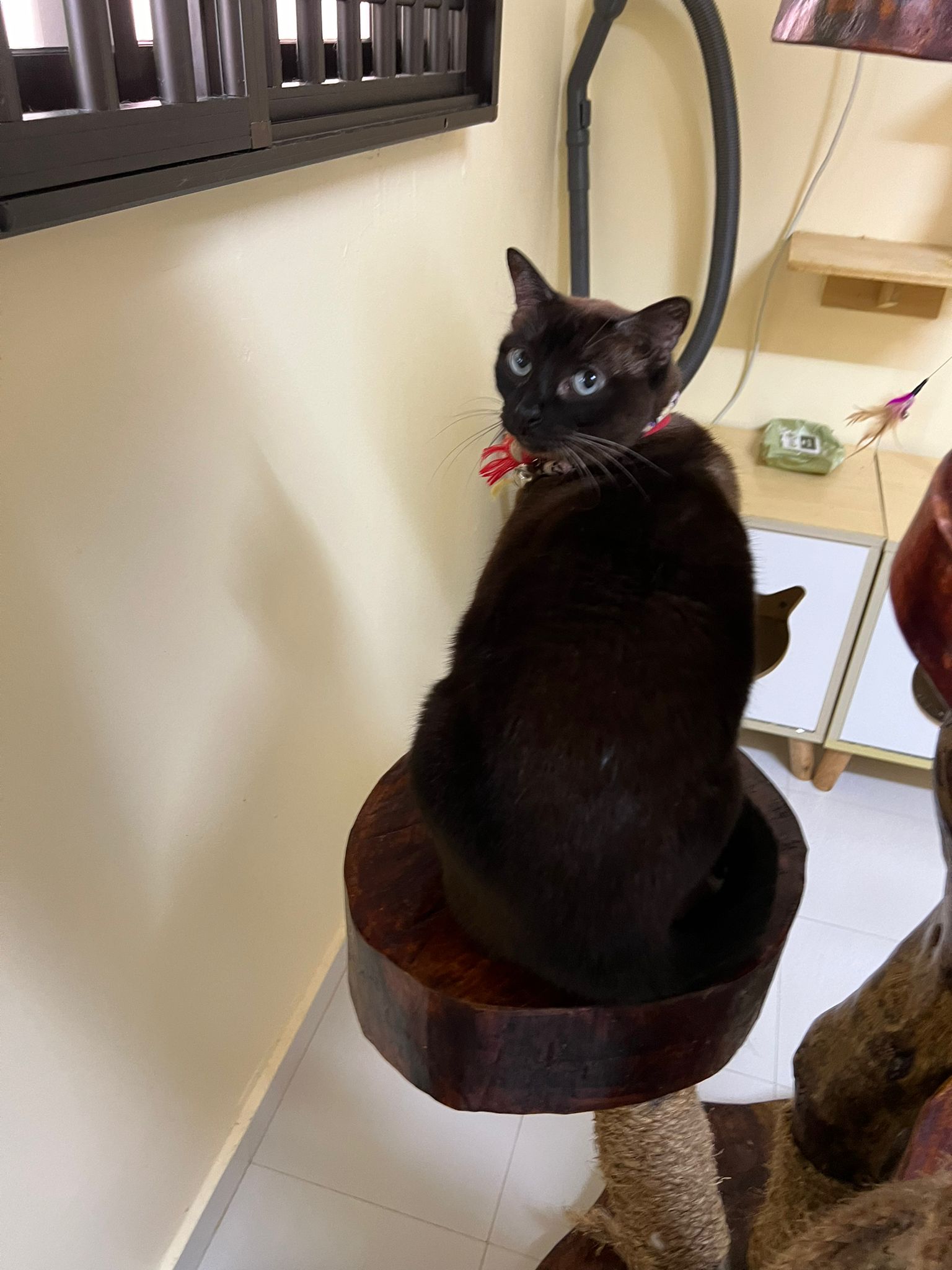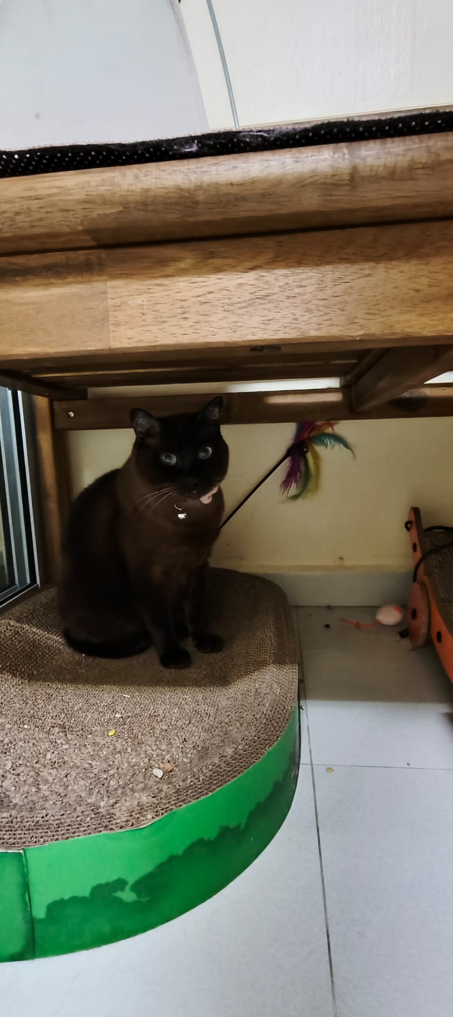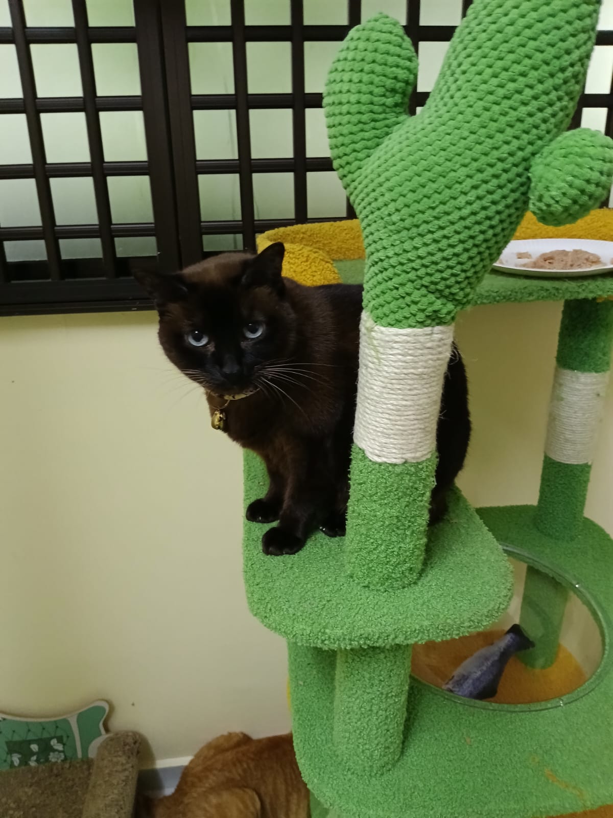I rescued her bcos she was initially hiding in the drain when she is newly abandoned (I can hack care) but she move on to the dangerous carpark so i become no choice. It’s her own luck that I told her U want to come w me I’ll bring u back to 猫房 or I’ll go home. She went w me and her story in 猫房 start. A sweet cat who love to follow me around to ask for sayang. She loves to eat daily delight pure. If there is stranger, she will react differently, she will hiss and etc. Her character become braver after she befriended 2 boys – Stitch and Junior. Will be good if she is adopted with Junior.