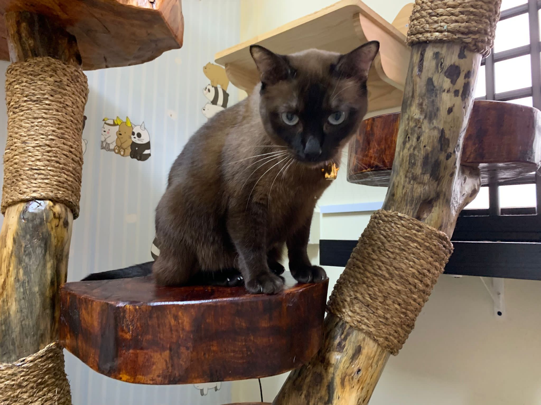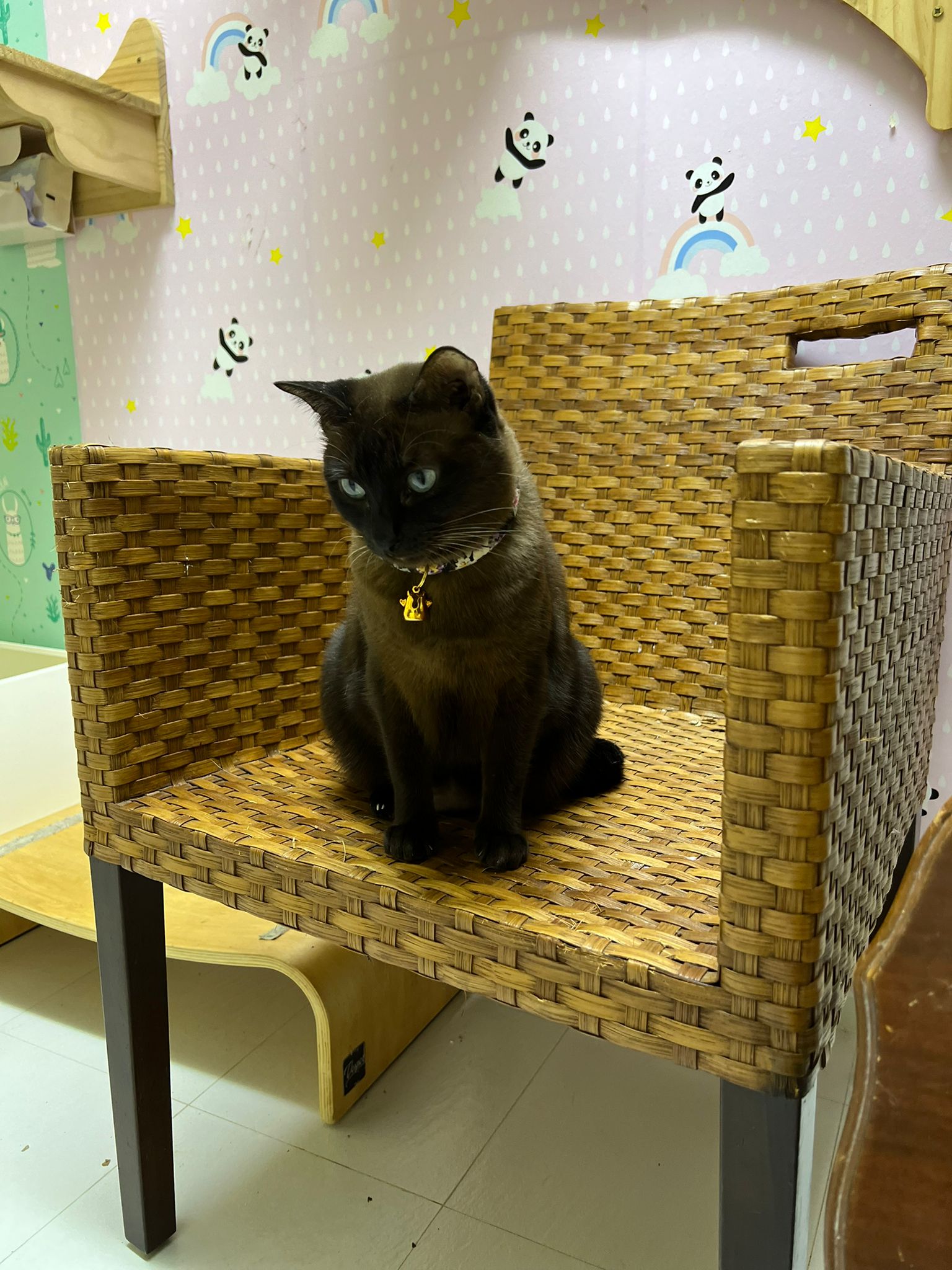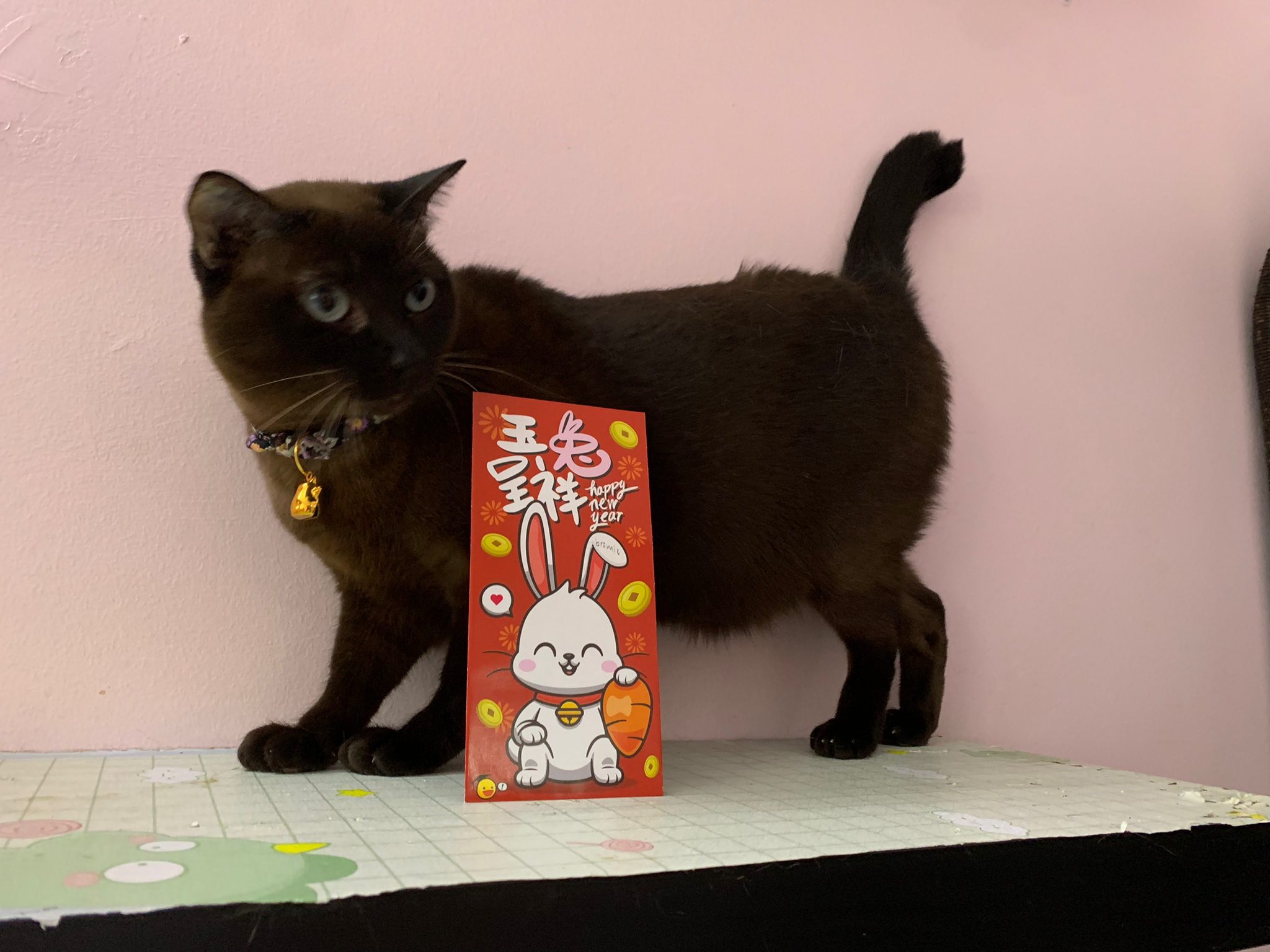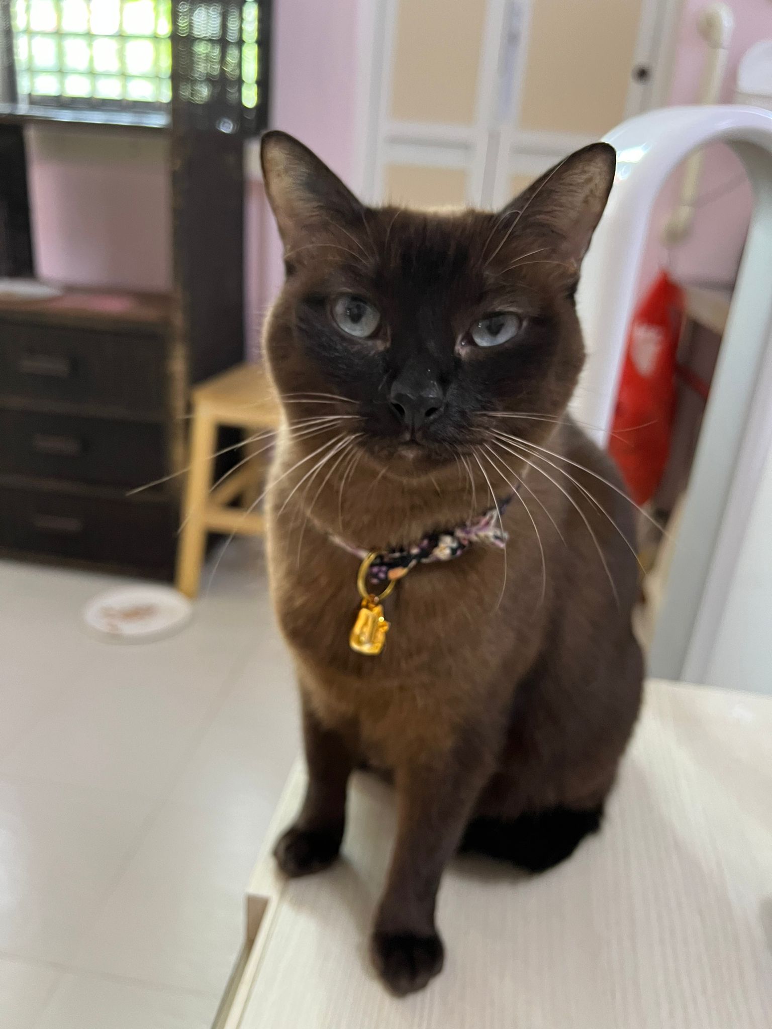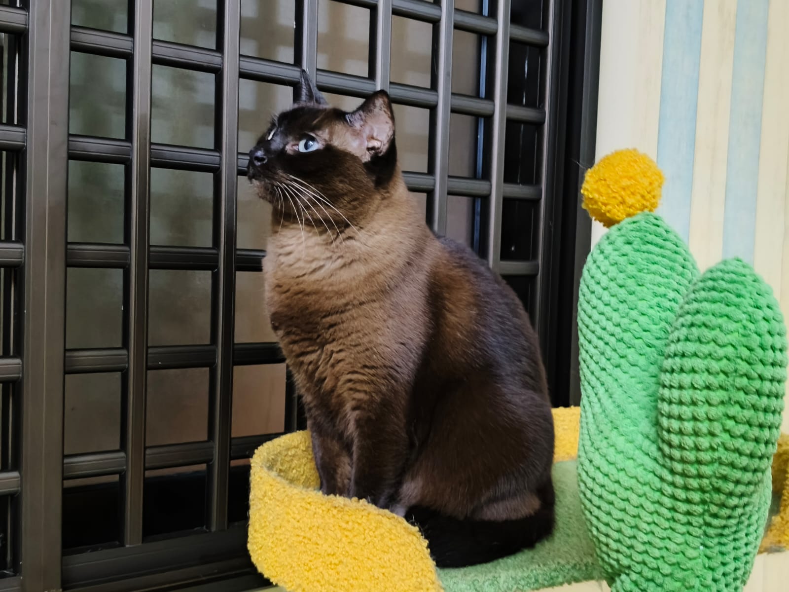 I rescued her bcos she was initially hiding in the drain when she is newly abandoned (I can hack care) but she move on to the dangerous carpark so i become no choice. It’s her own luck that I told her U want to come w me I’ll bring u back to 猫房 or I’ll go home. She went w me and her story in 猫房 start. A sweet cat who love to follow me around to ask for sayang. She loves to eat daily delight pure. If there is stranger, she will react differently, she will hiss and etc. Her character become braver after she befriended 2 boys – Stitch and Junior. Will be good if she is adopted with Junior.