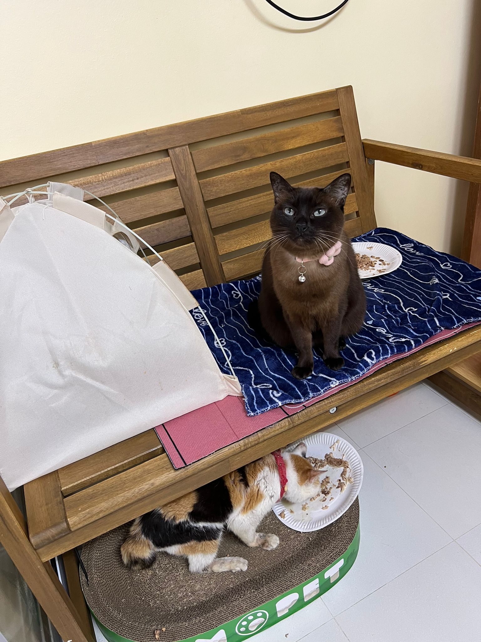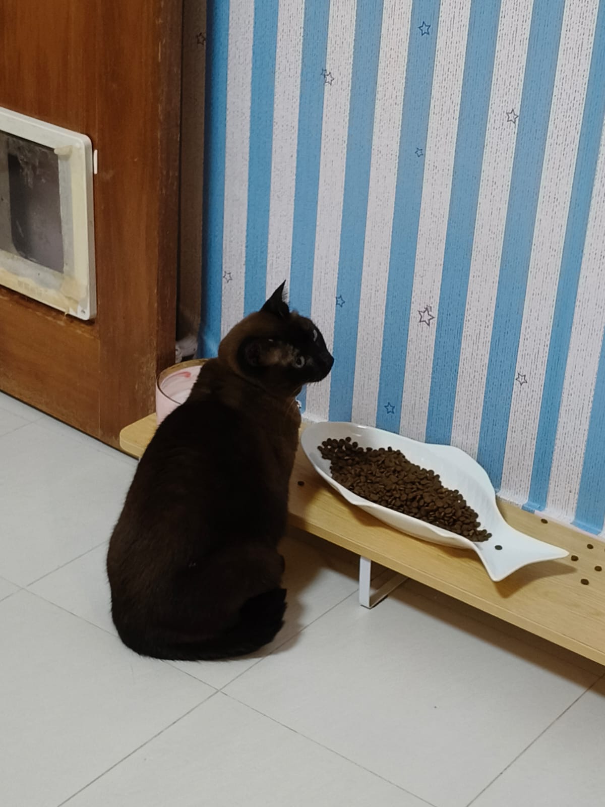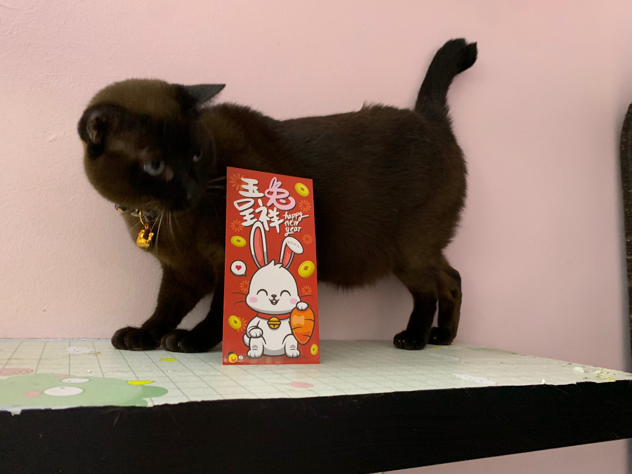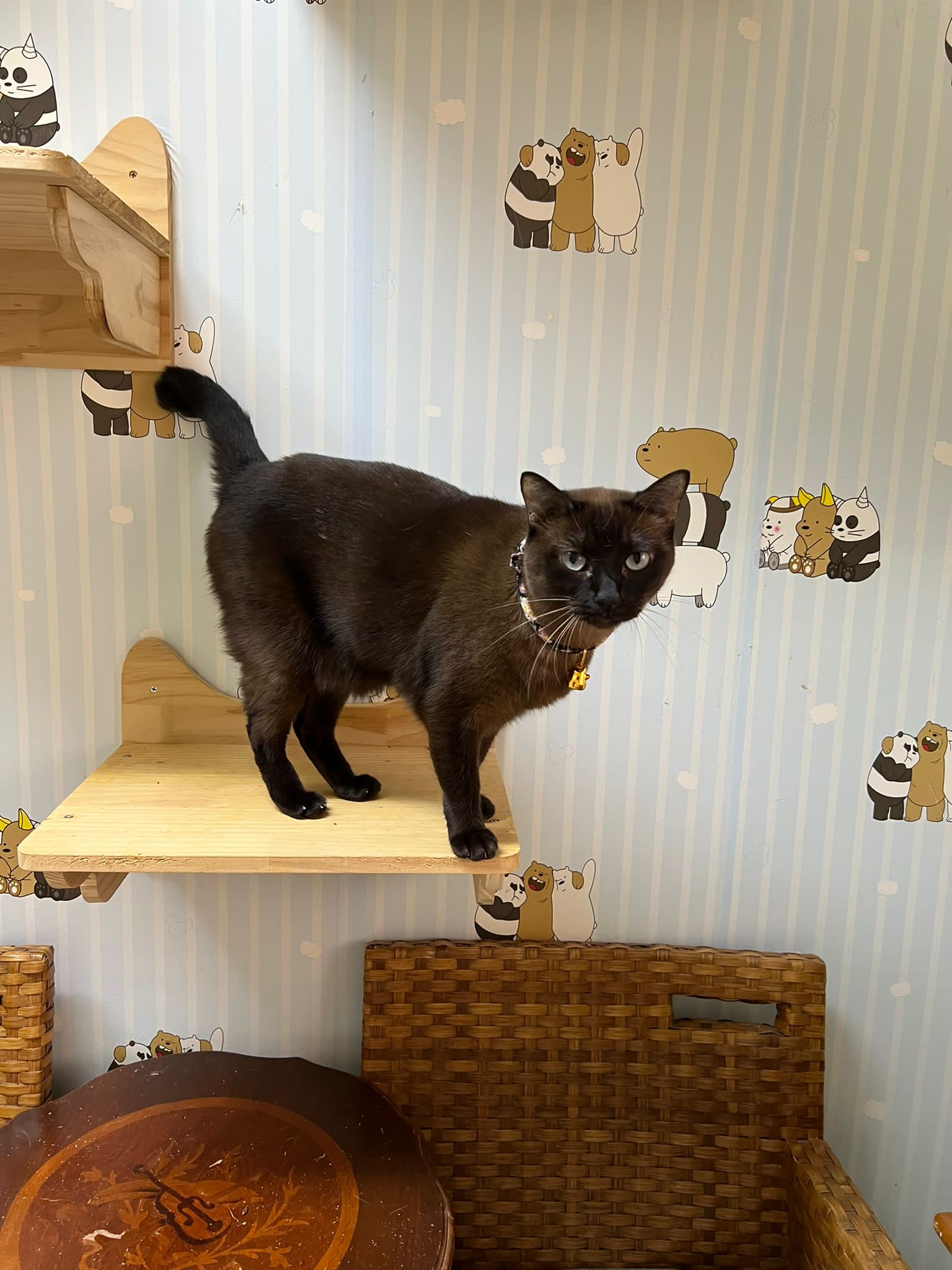 I rescued her bcos she was initially hiding in the drain when she is newly abandoned (I can hack care) but she move on to the dangerous carpark so i become no choice. It’s her own luck that I told her U want to come w me I’ll bring u back to 猫房 or I’ll go home. She went w me and her story in 猫房 start. A sweet cat who love to follow me around to ask for sayang. She loves to eat daily delight pure. If there is stranger, she will react differently, she will hiss and etc. Her character become braver after she befriended 2 boys – Stitch and Junior. Will be good if she is adopted with Junior.