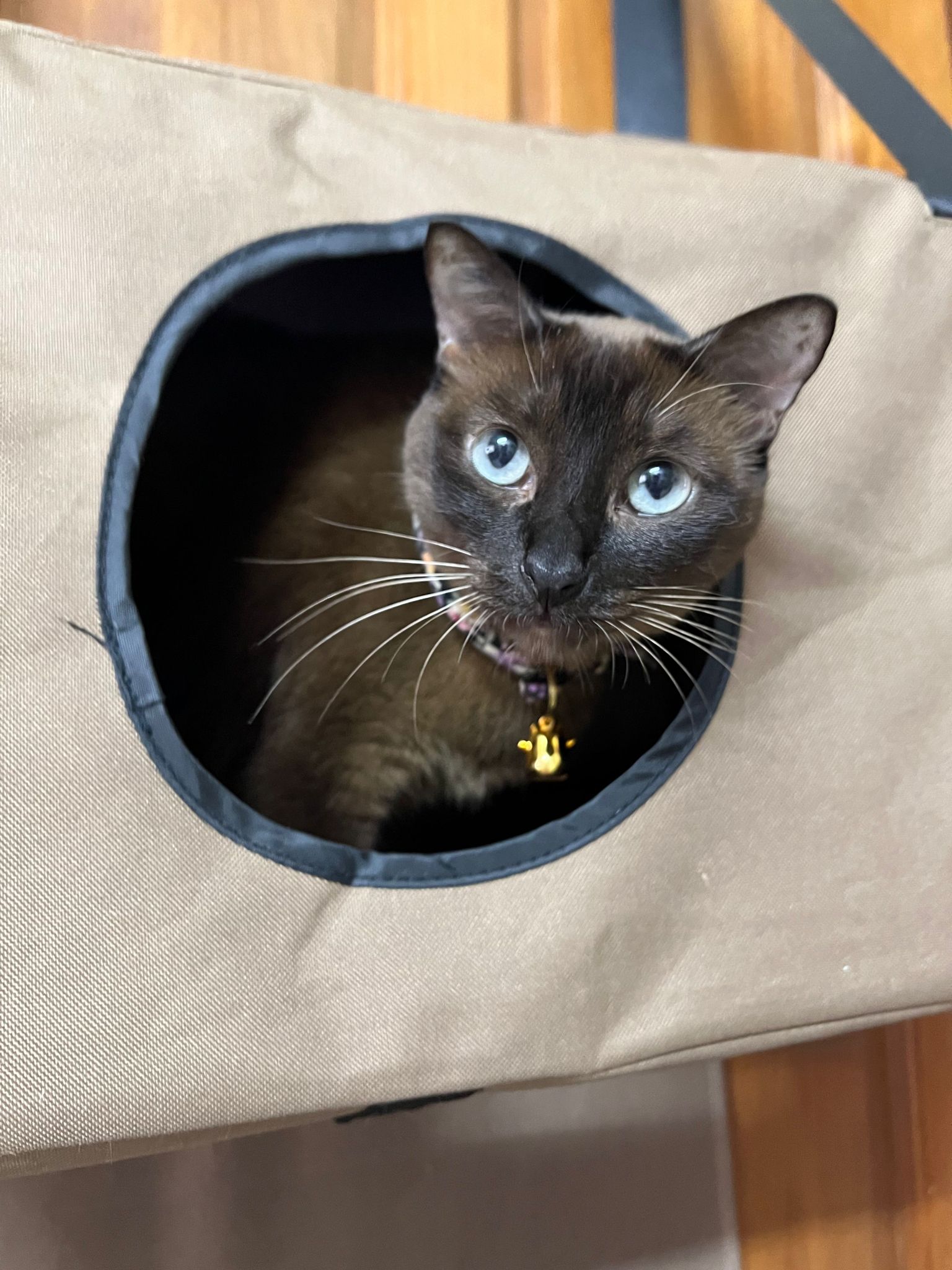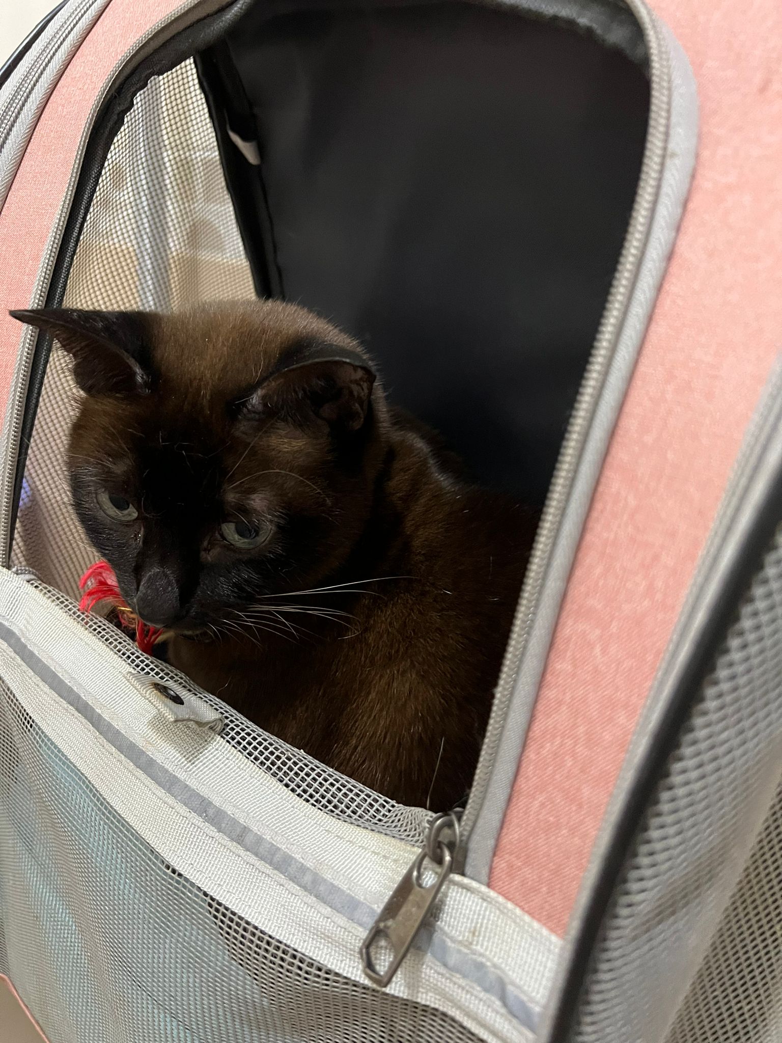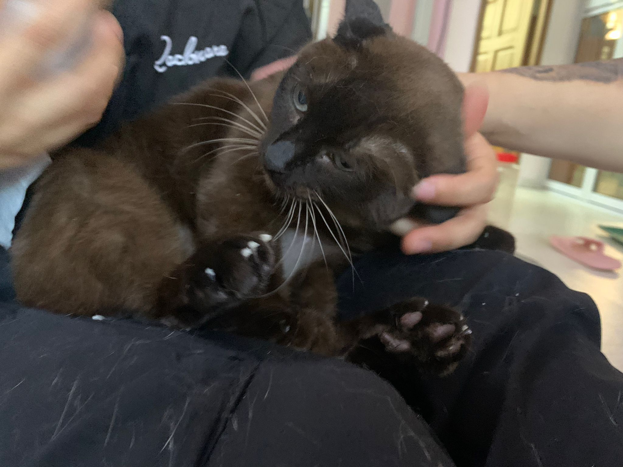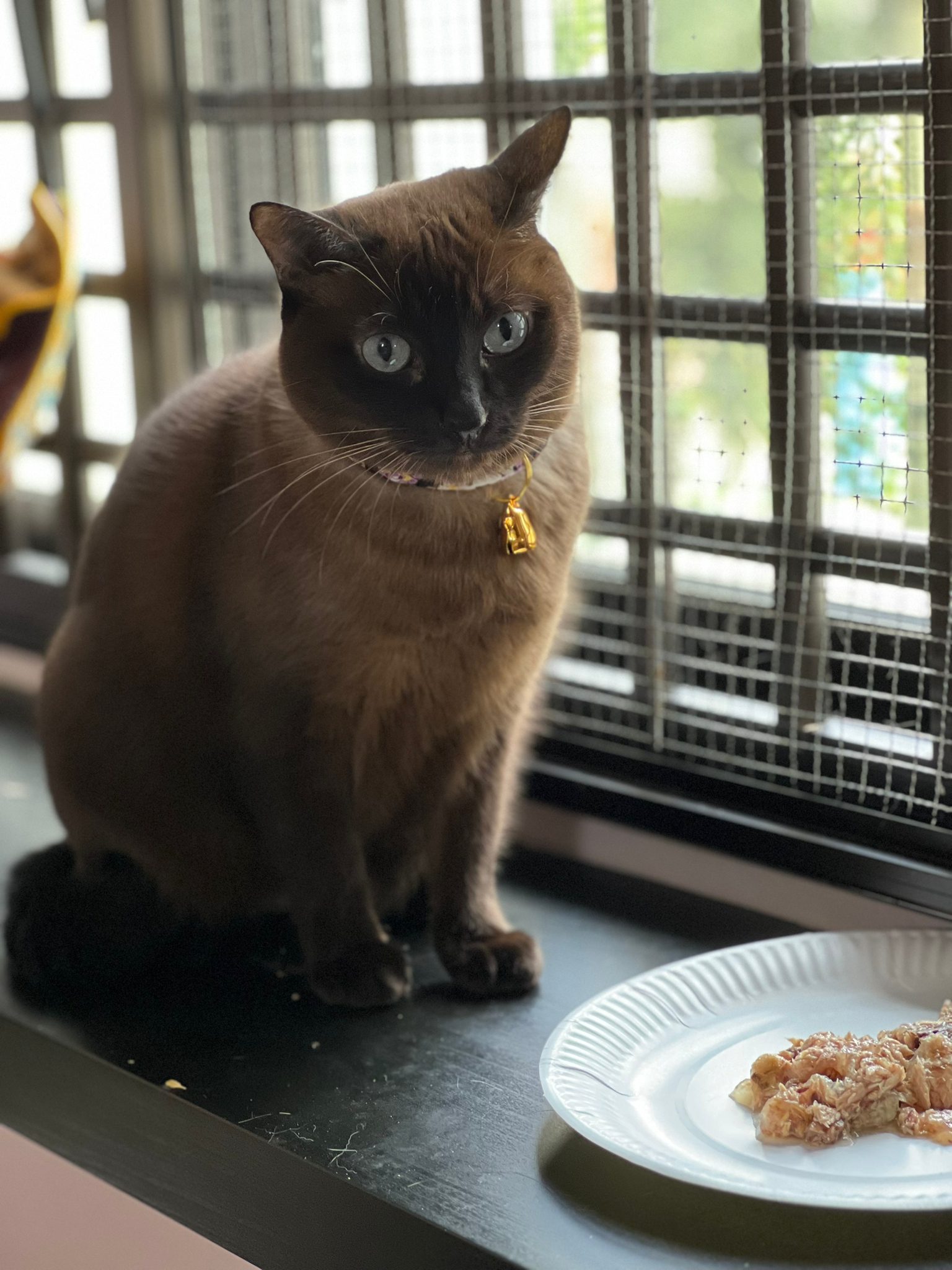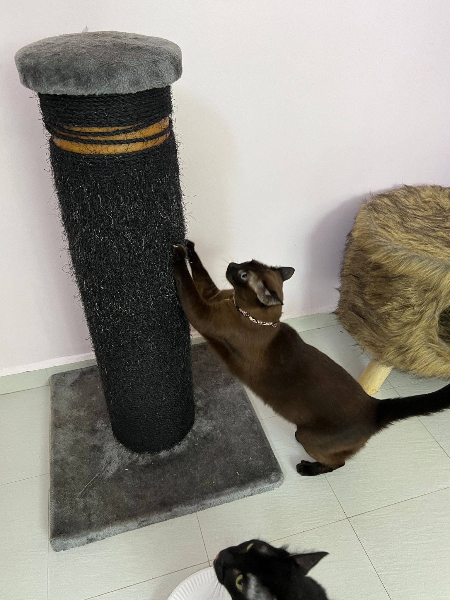 I rescued her bcos she was initially hiding in the drain when she is newly abandoned (I can hack care) but she move on to the dangerous carpark so i become no choice. It’s her own luck that I told her U want to come w me I’ll bring u back to 猫房 or I’ll go home. She went w me and her story in 猫房 start. A sweet cat who love to follow me around to ask for sayang. She loves to eat daily delight pure. If there is stranger, she will react differently, she will hiss and etc. Her character become braver after she befriended 2 boys – Stitch and Junior. Will be good if she is adopted with Junior.