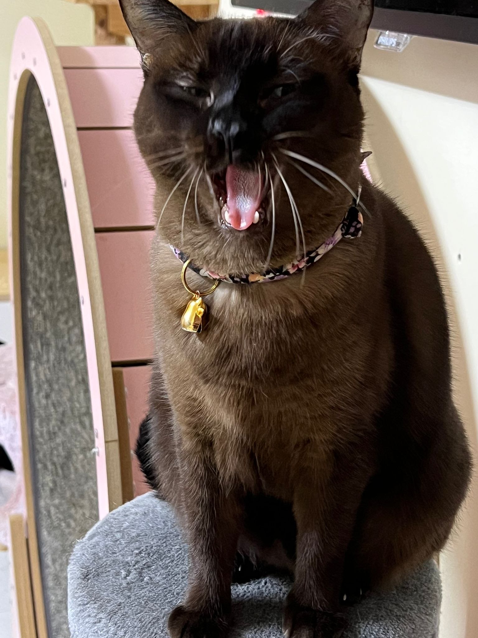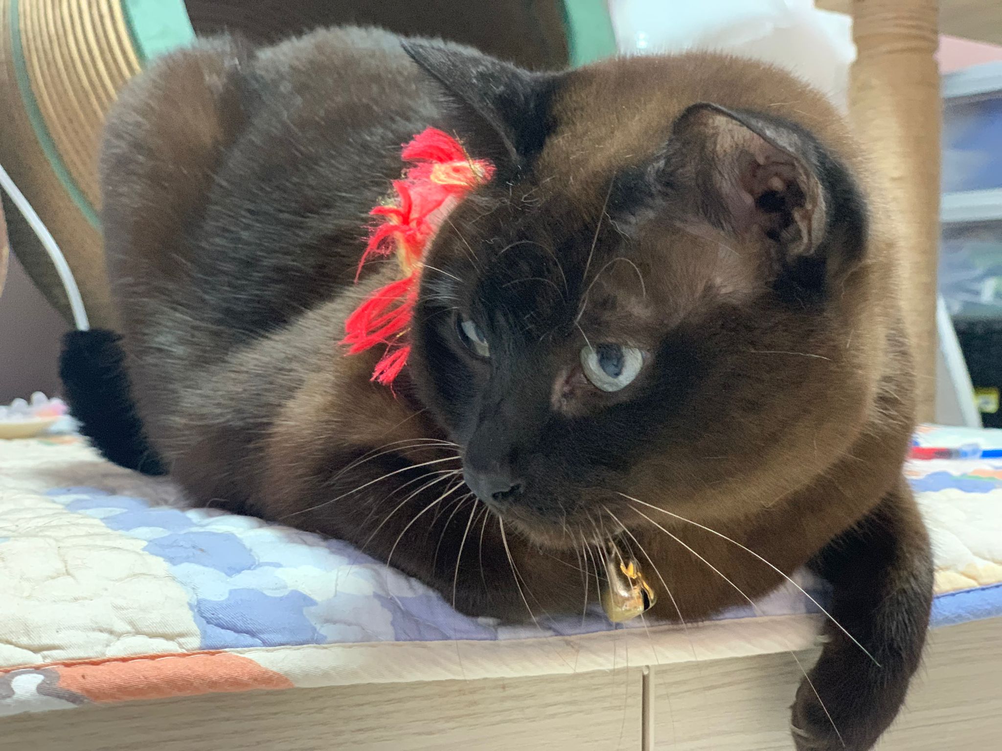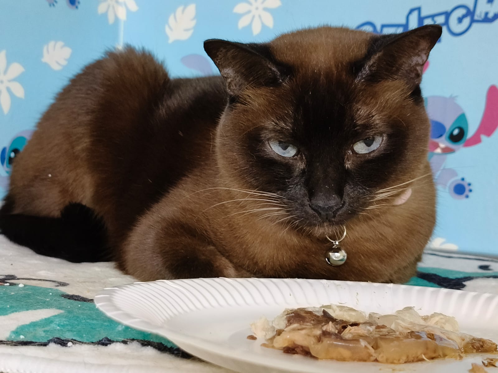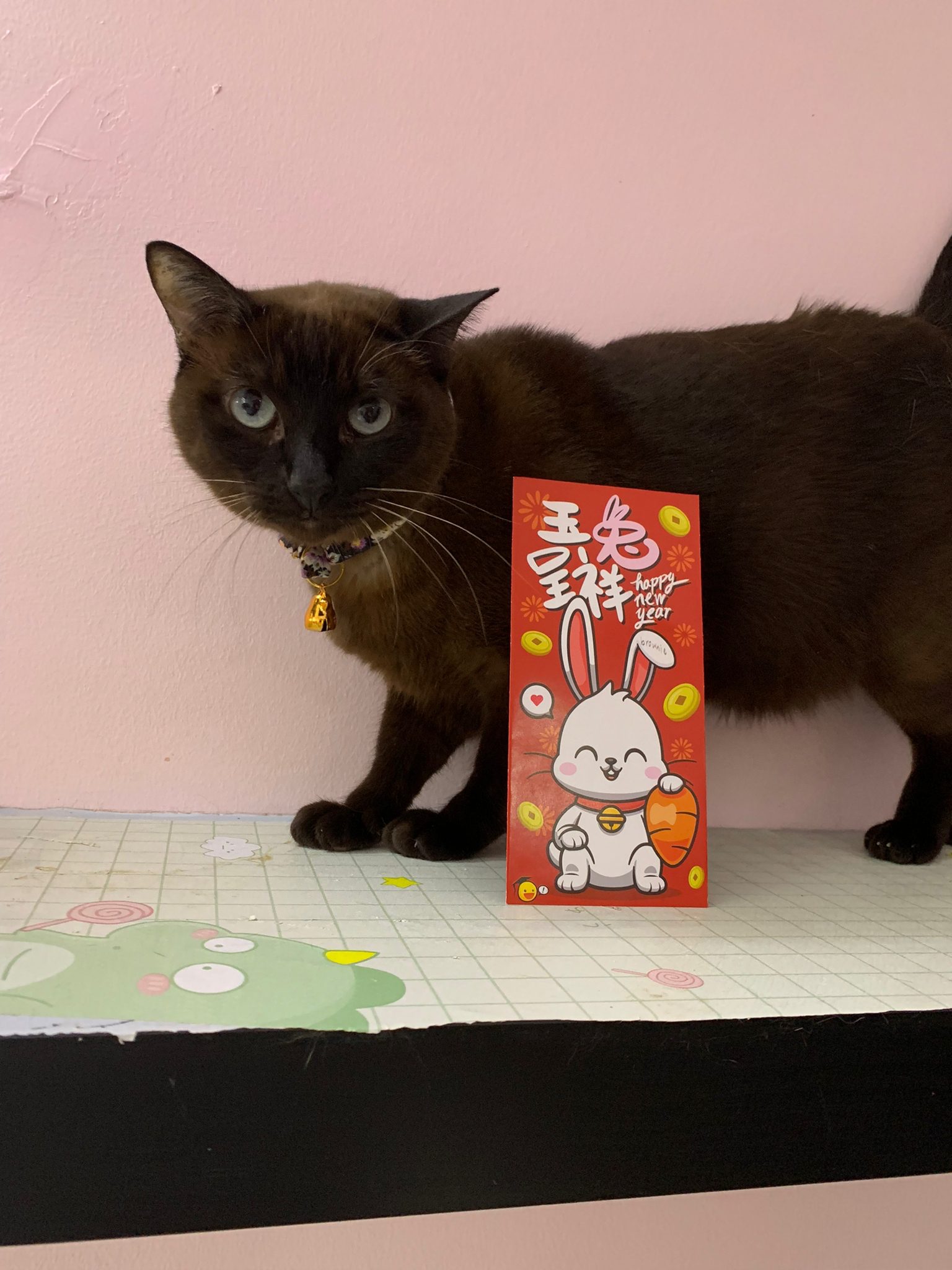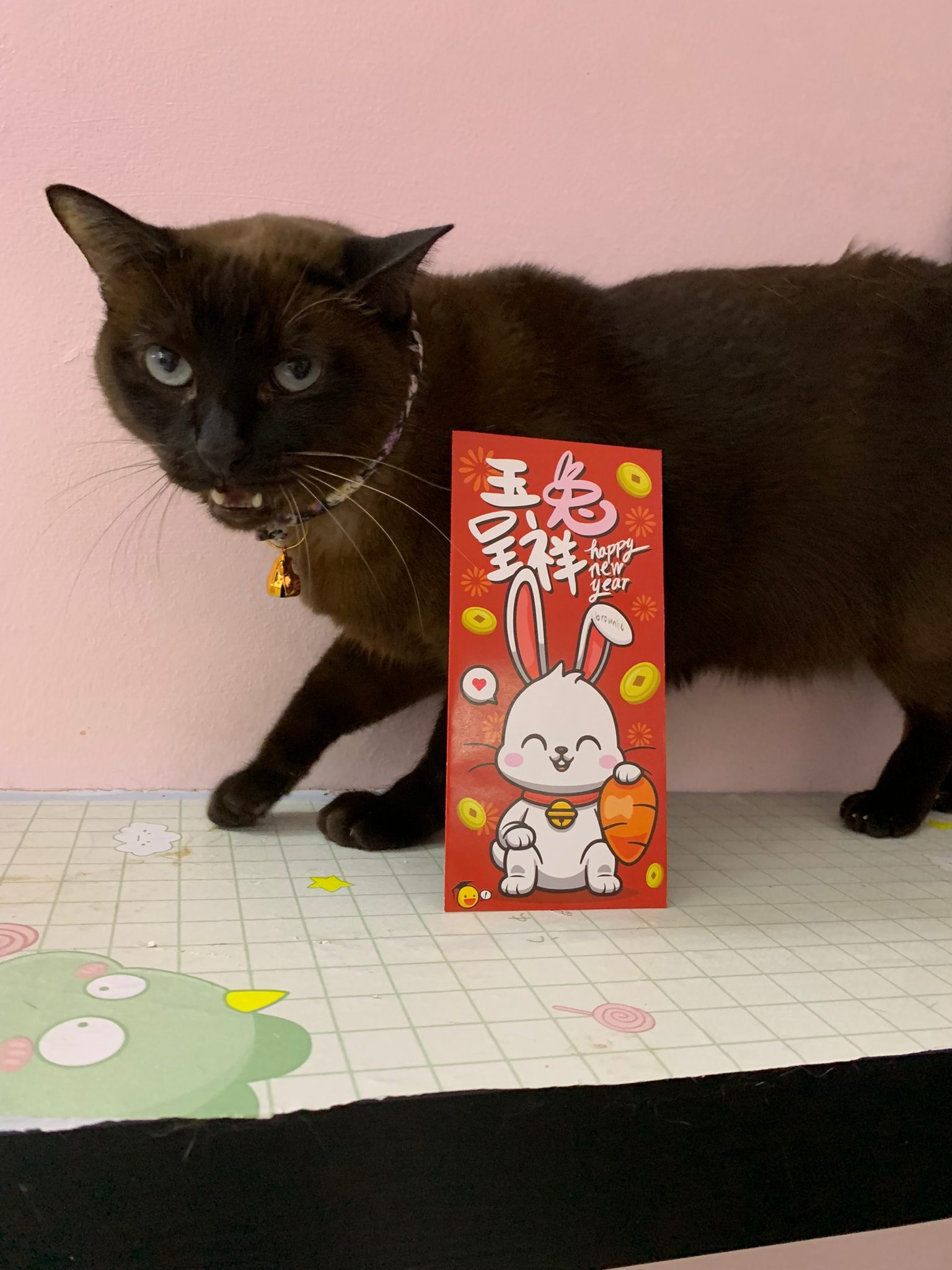 Morning: celebrate her 6th bday w her. Eat a little chicken treats and keep running away cos of music and cake plate. b4 that, she keep meow n follow me everywhere n I keep saying happy birthday to her n sayang her. Give her a knitted collar.
