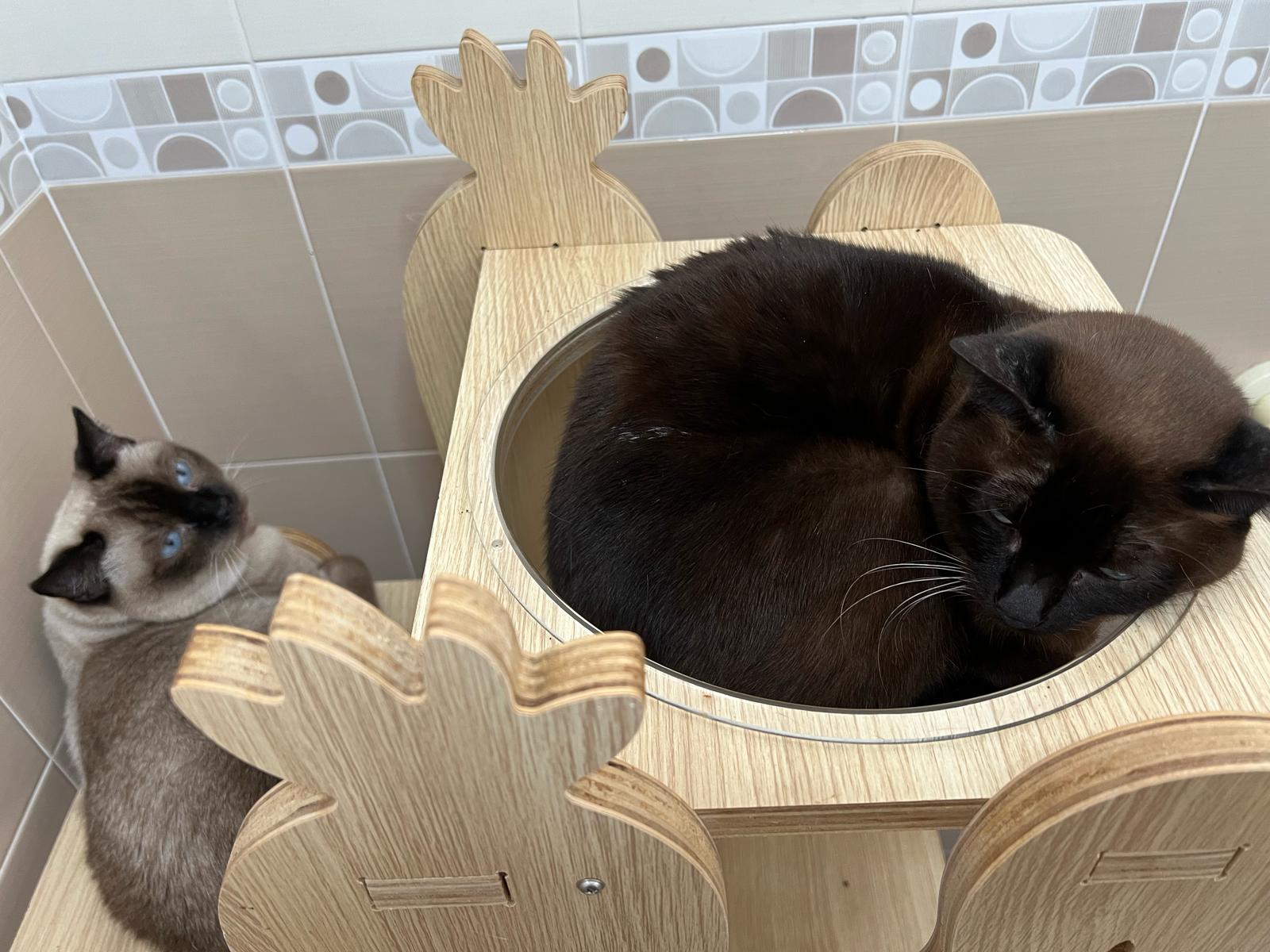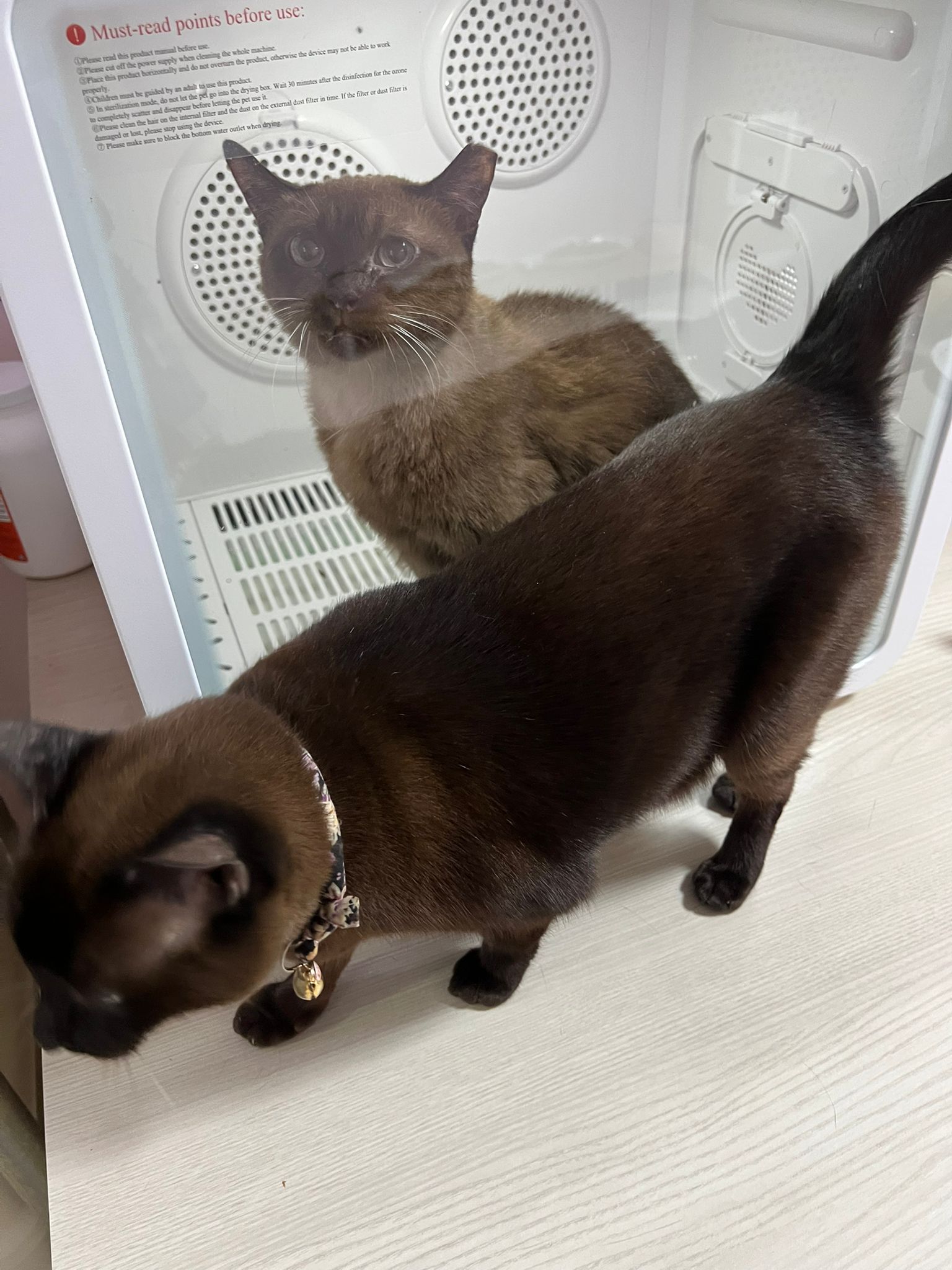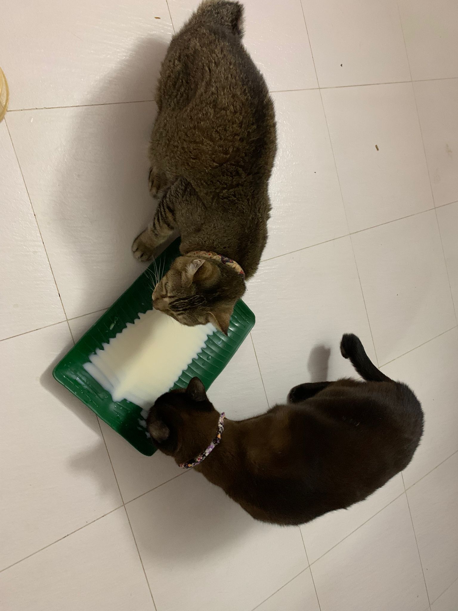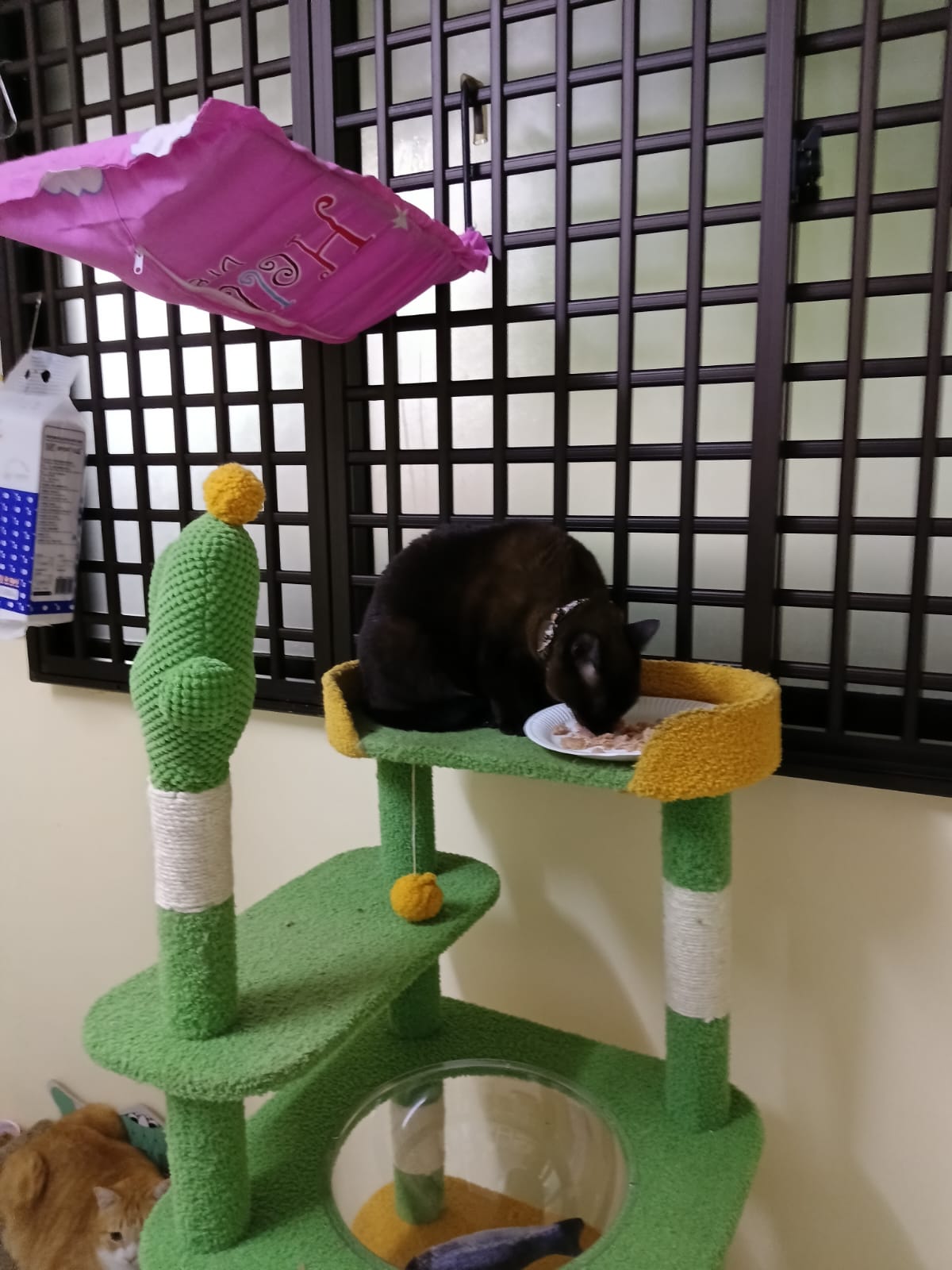Morning: I bath rena and Ps n they did meow for help in toilet while waiting for the 10 mins gap, mama bai bai also meow and Elvira cleaning tv room and brownie run to food room looking stress and panic n meow meow meow