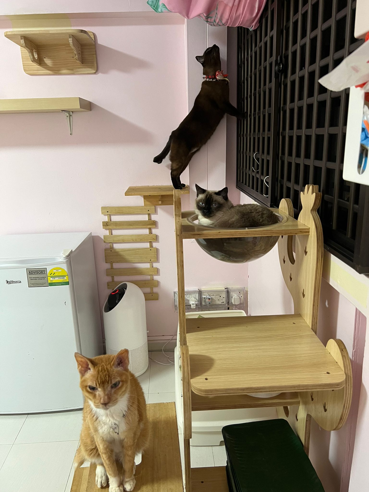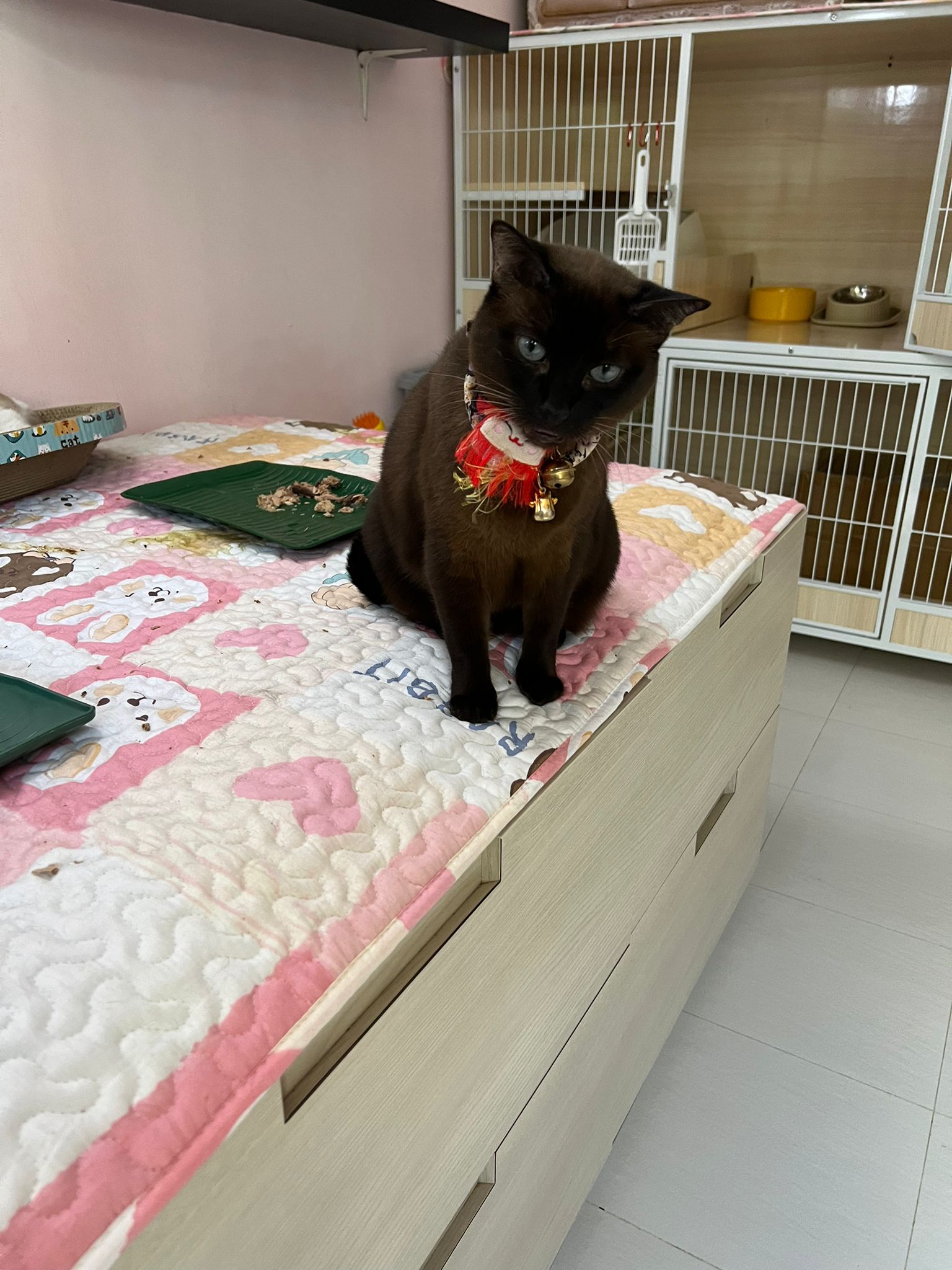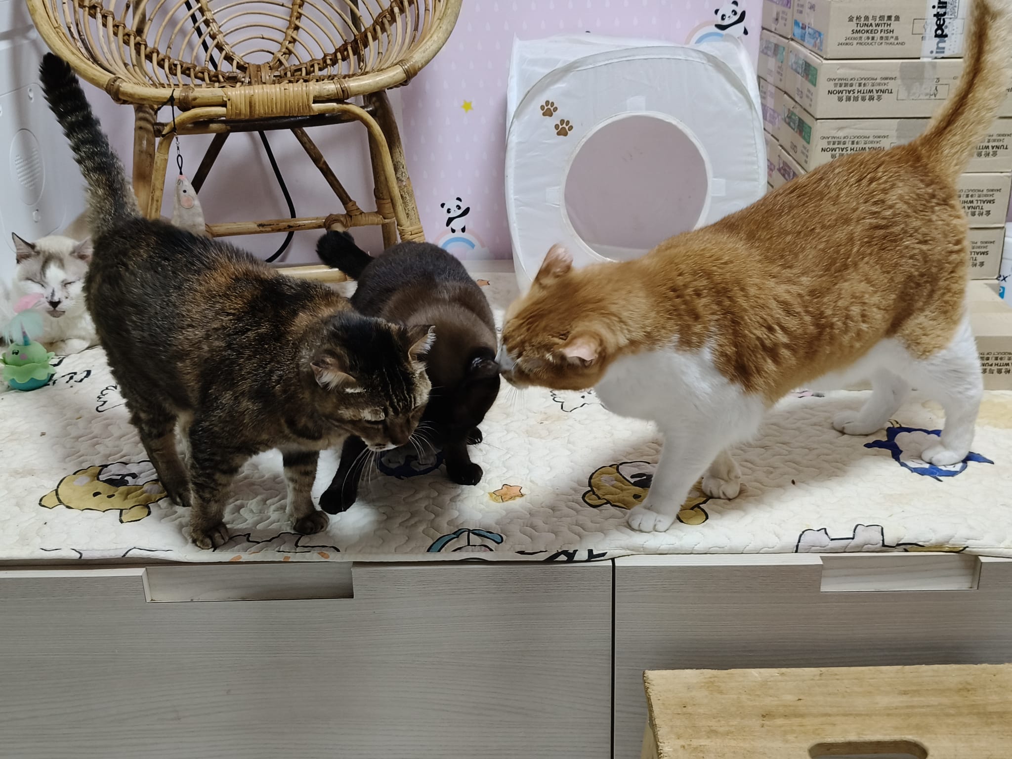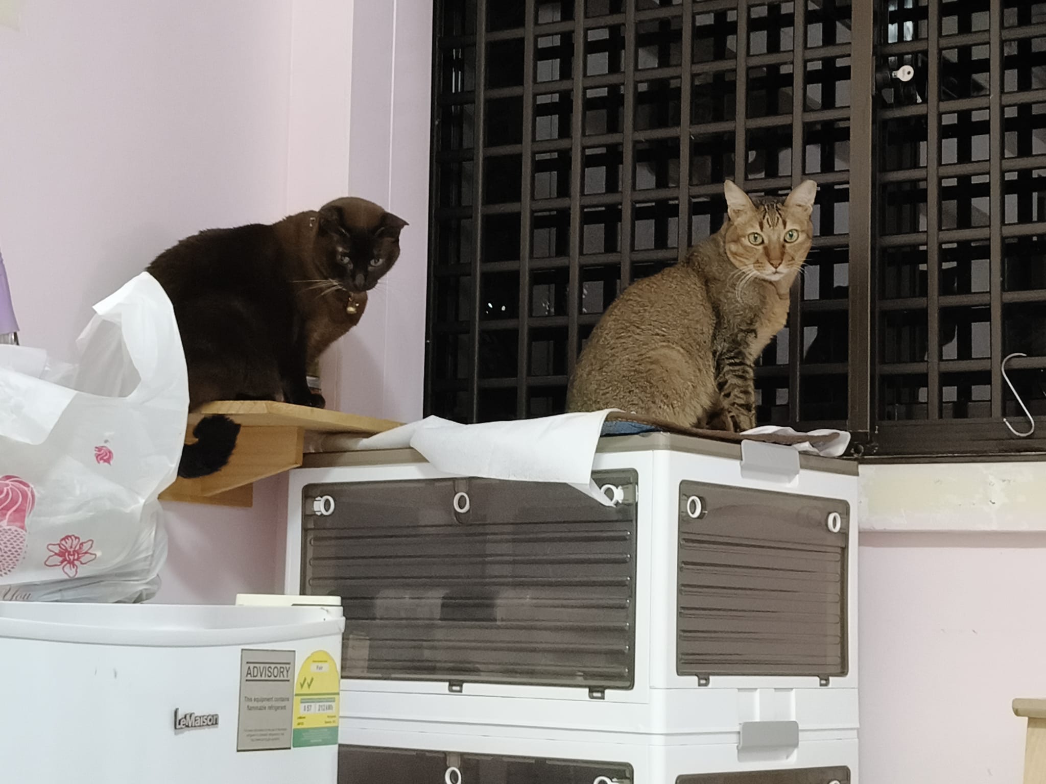 11am+: I go back 猫房 try to tell everyone n sayang everyone that ah mao love them and pamper them but I can’t come so frequent le, even come have to do medi n leave, they know I’m worry and love them can le. Sayang her and just saying her. She is the slow warm up type n I say to them as a group on the big bed. Just sayang her.