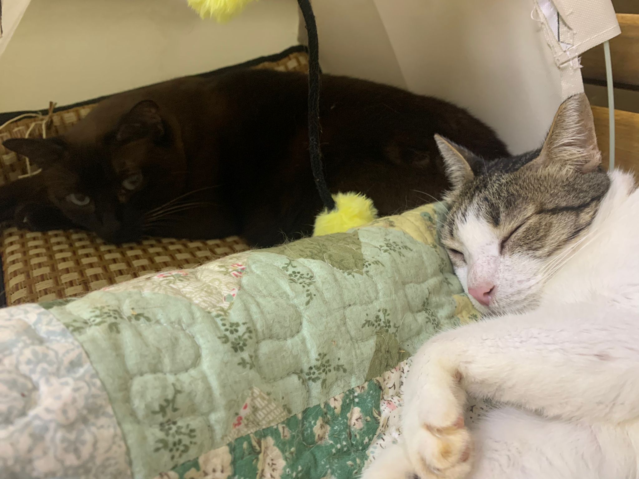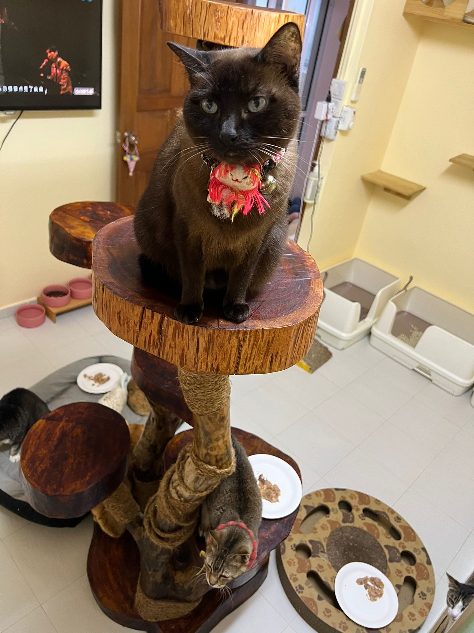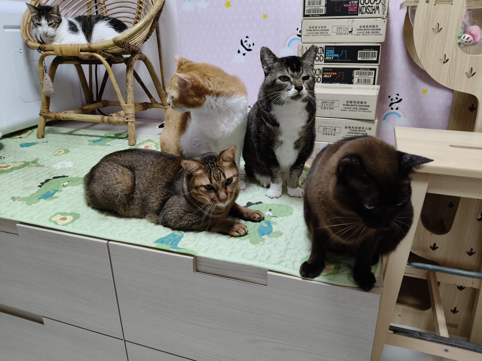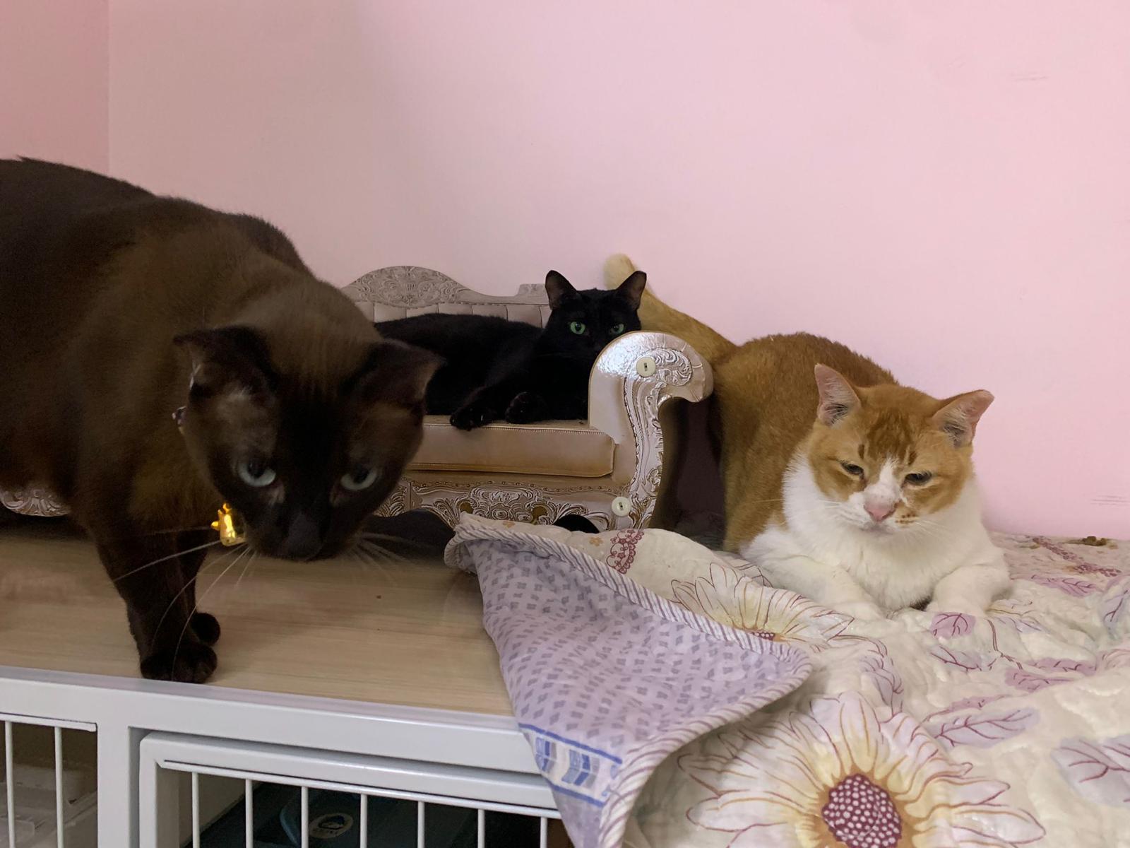 11am+: I go back 猫房 try to tell everyone n sayang everyone that ah mao love them and pamper them but I can’t come so frequent le, even come have to do medi n leave, they know I’m worry and love them can le. Sayang her and just saying her. She is the slow warm up type n I say to them as a group on the big bed. Just sayang her.