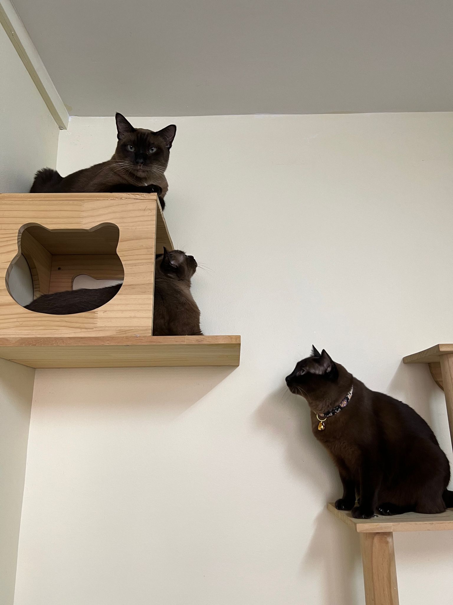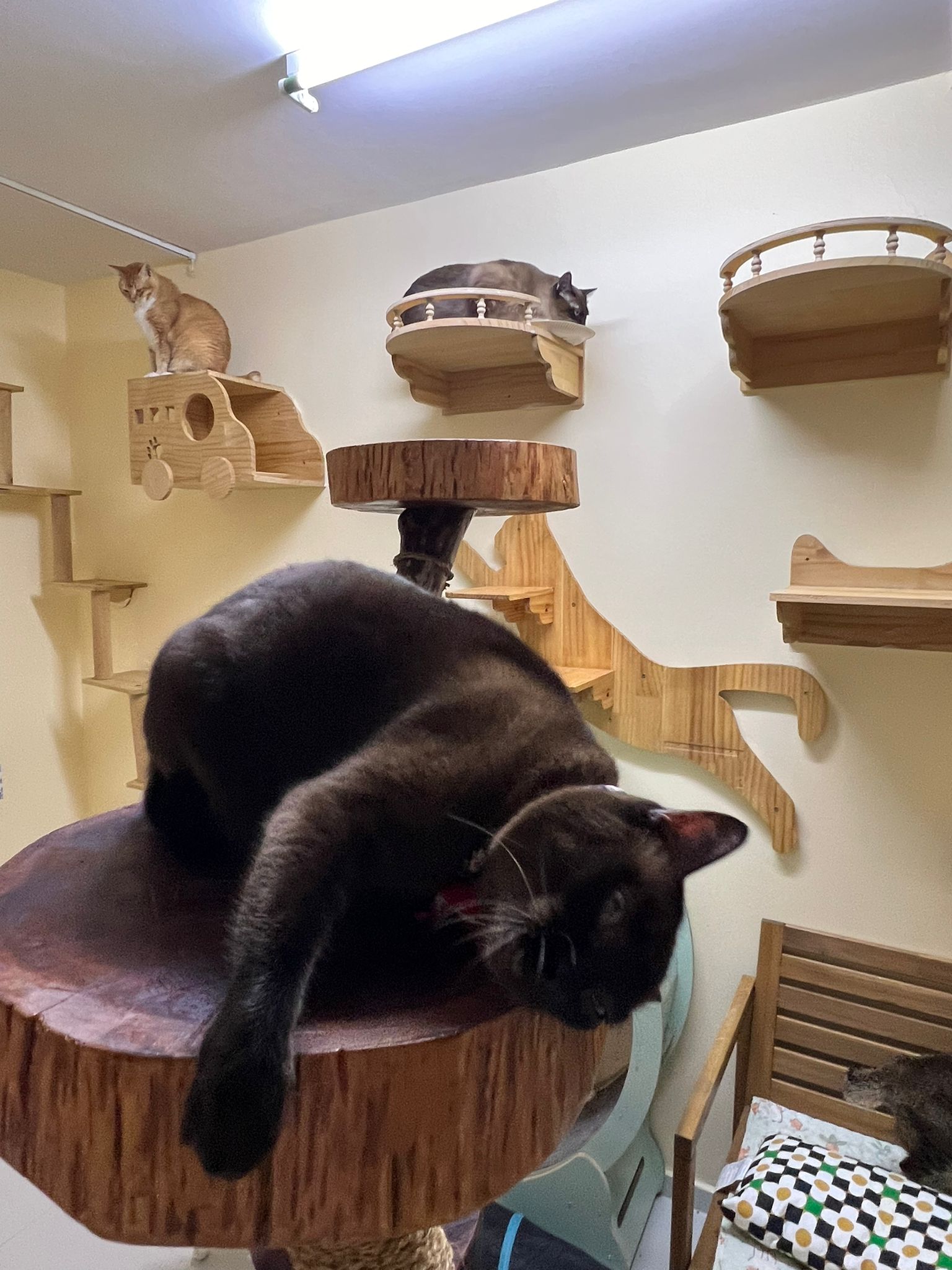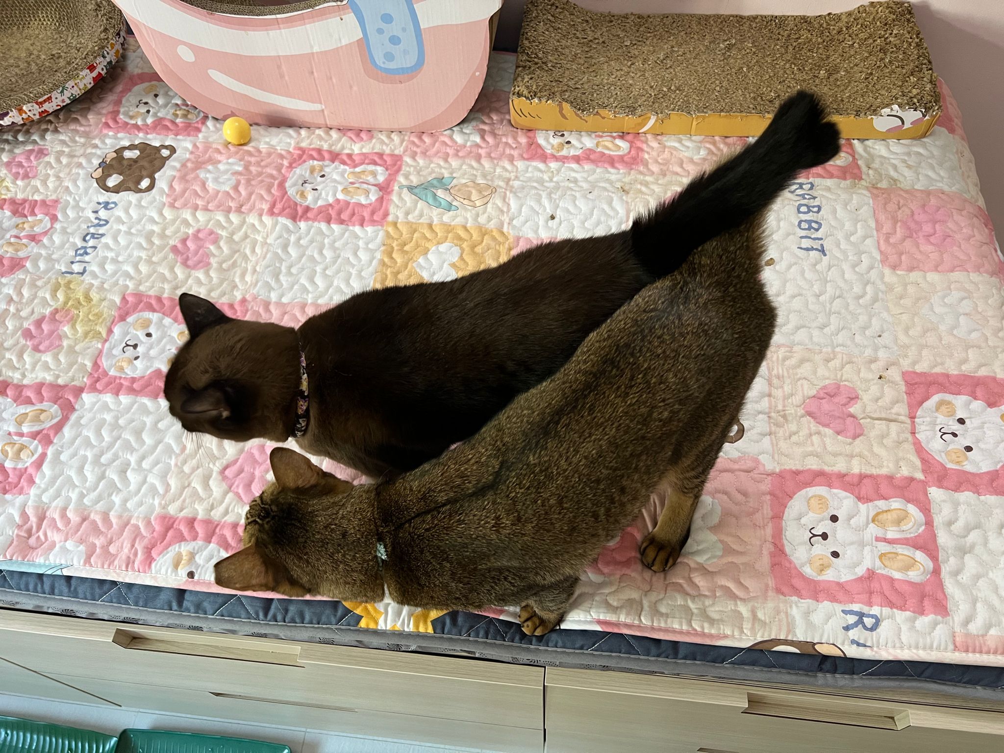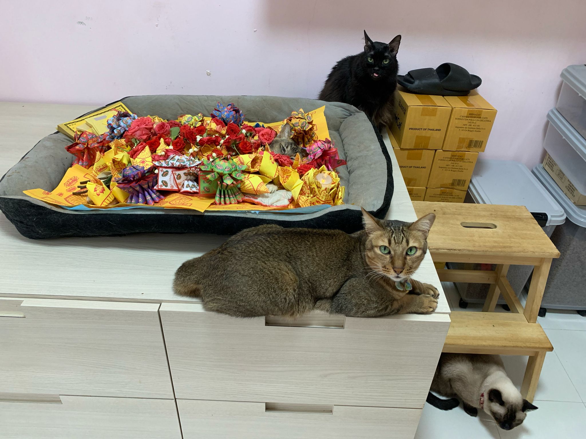 11am+: I go back 猫房 try to tell everyone n sayang everyone that ah mao love them and pamper them but I can’t come so frequent le, even come have to do medi n leave, they know I’m worry and love them can le. Sayang her and just saying her. She is the slow warm up type n I say to them as a group on the big bed. Just sayang her.