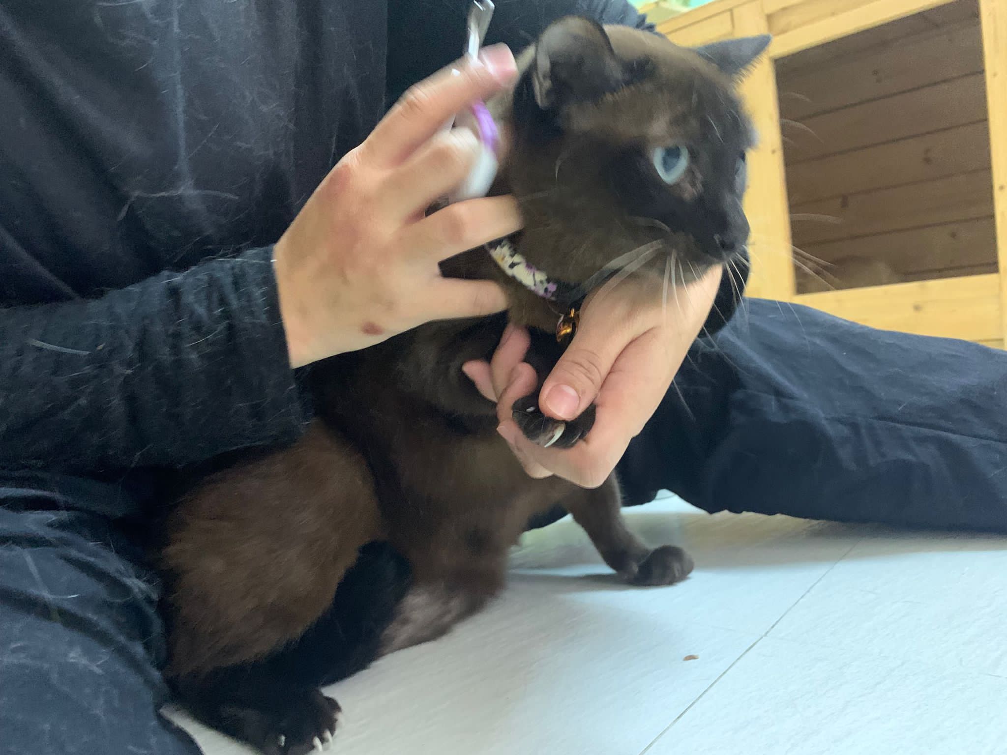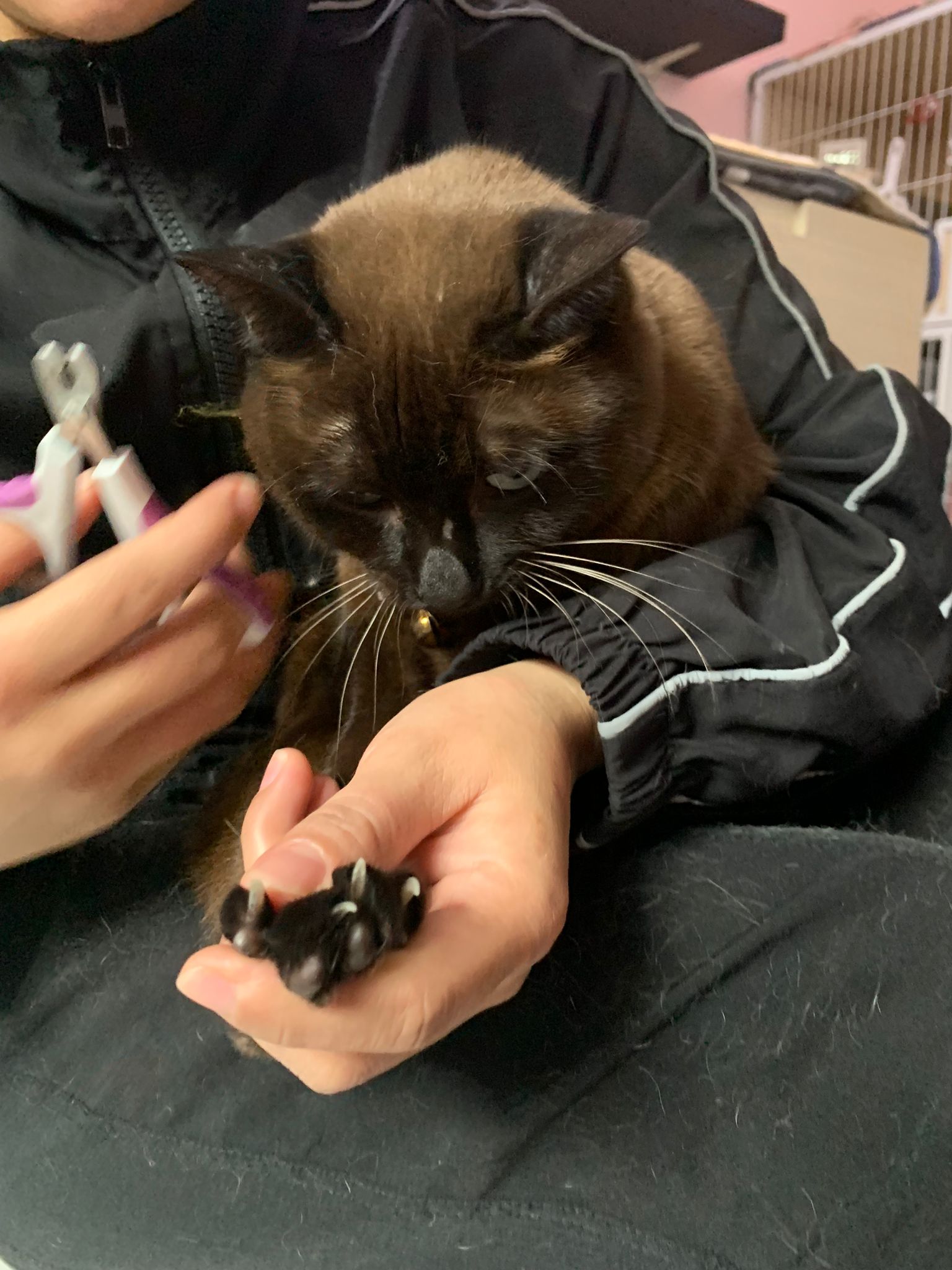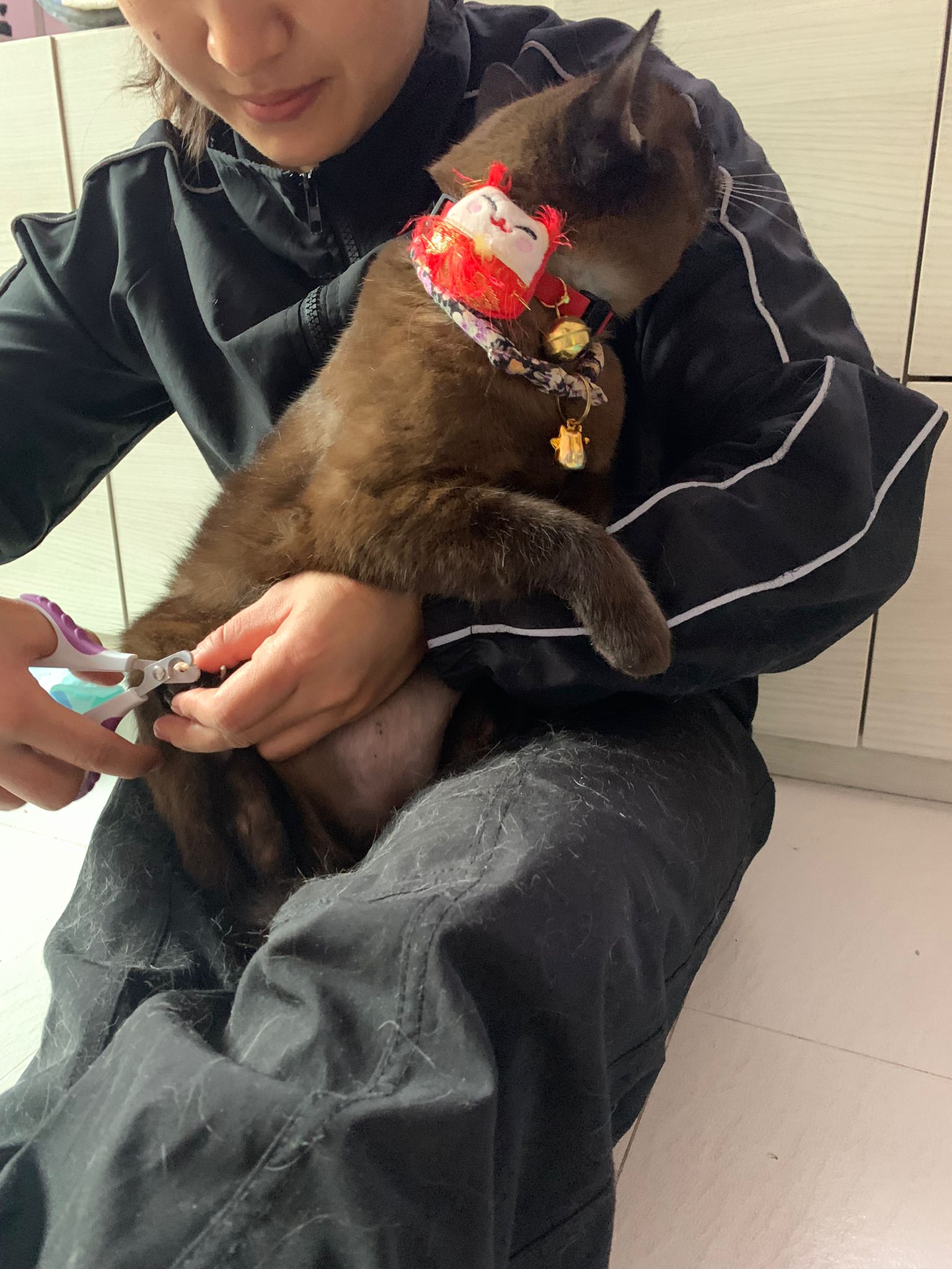 Morning: today basic grooming. Cut nails and clean ears and comb fur.