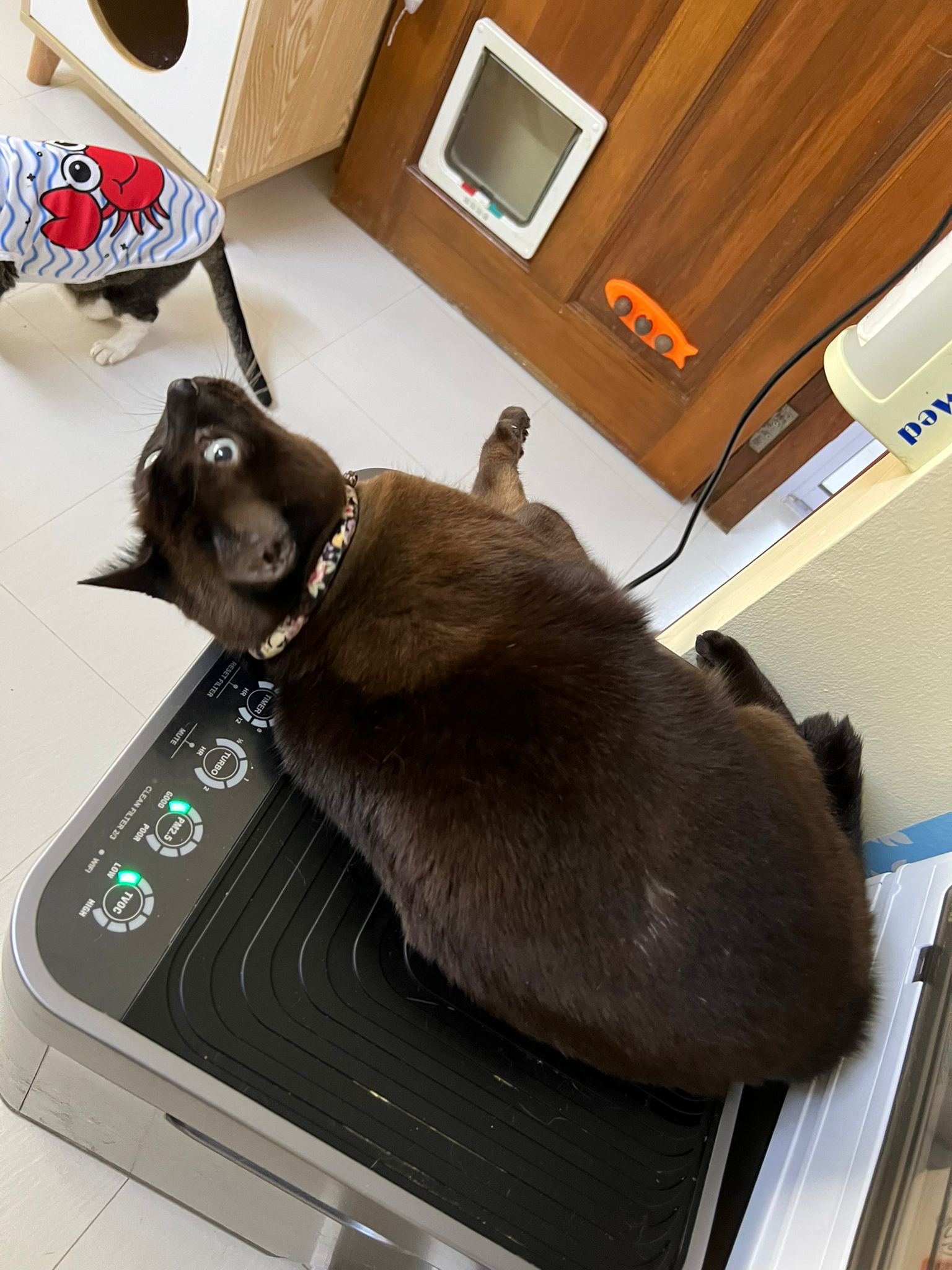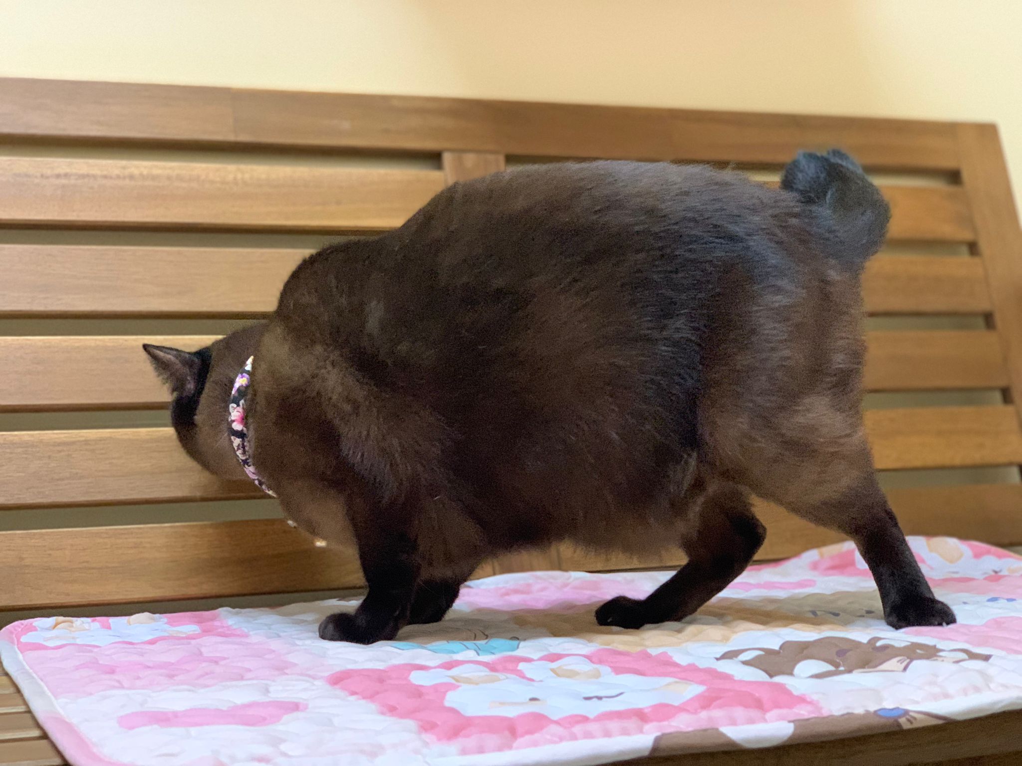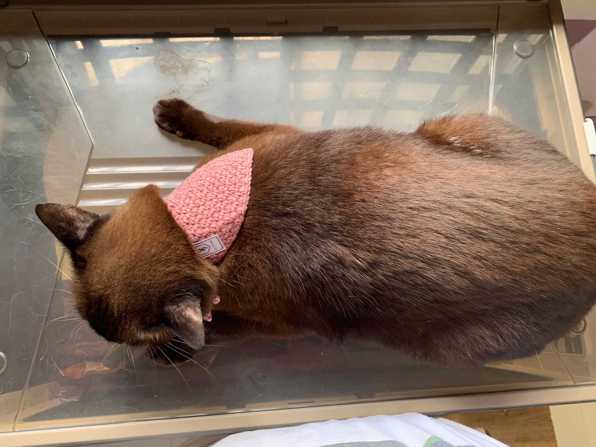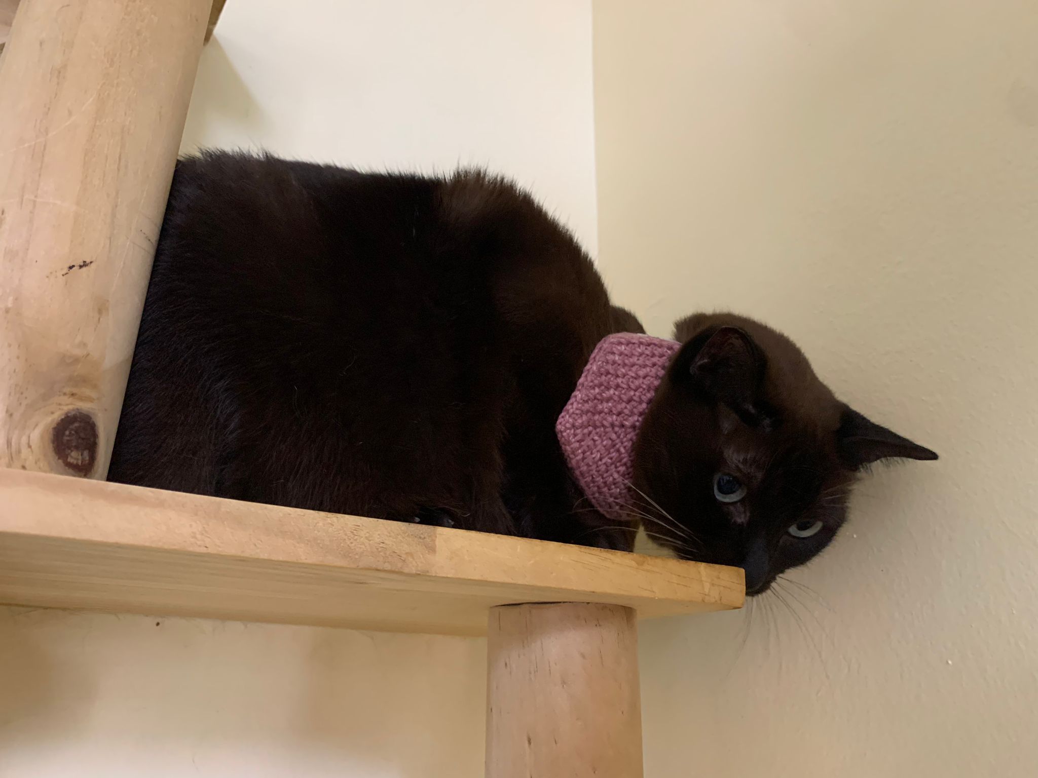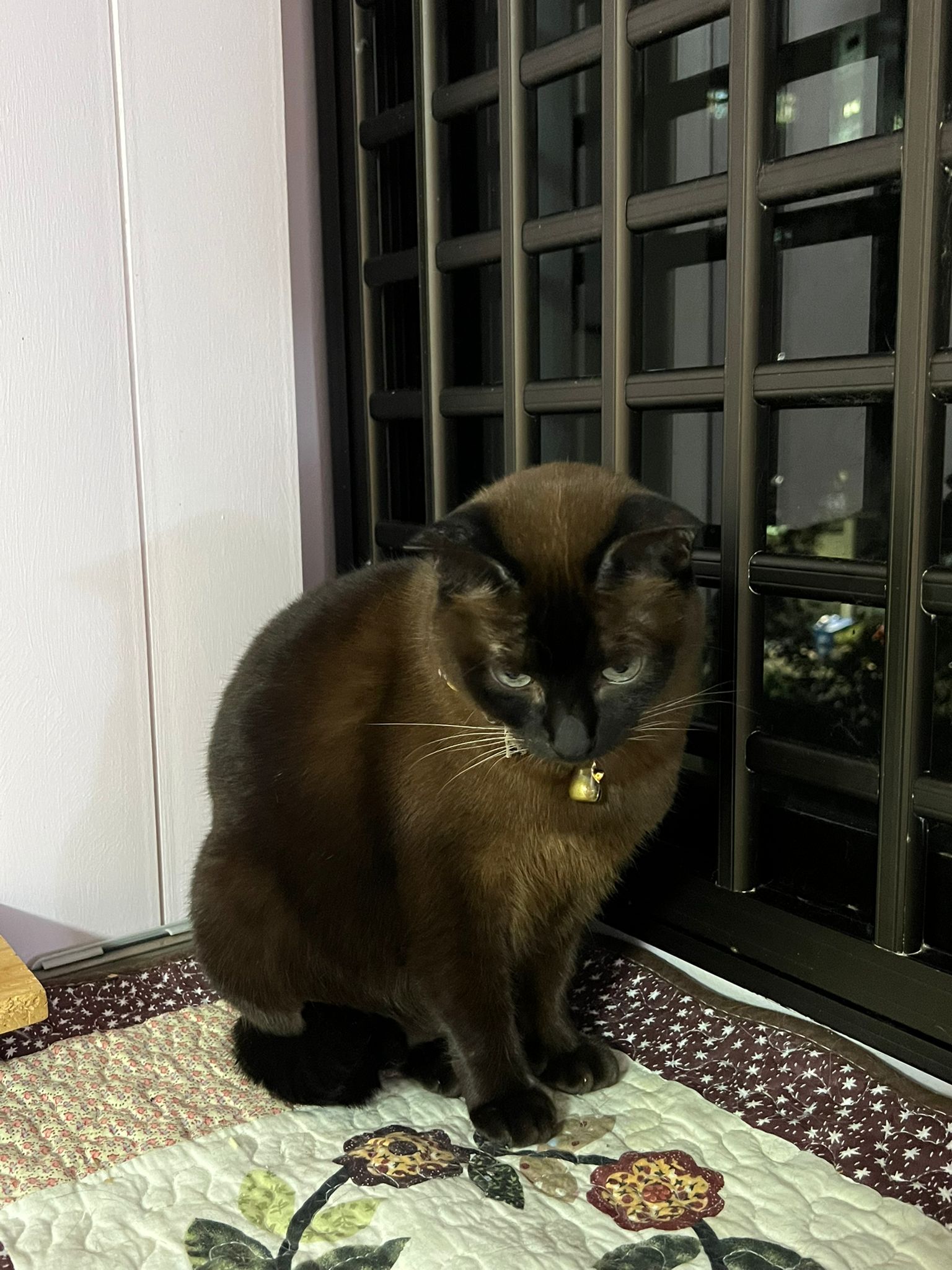 Night; today mmm cover jo. Think the cats happy. Mmm:”Couldn’t reach to pat. Asked her to come down. N then stick on me. Brownie – 2 nights not eating”