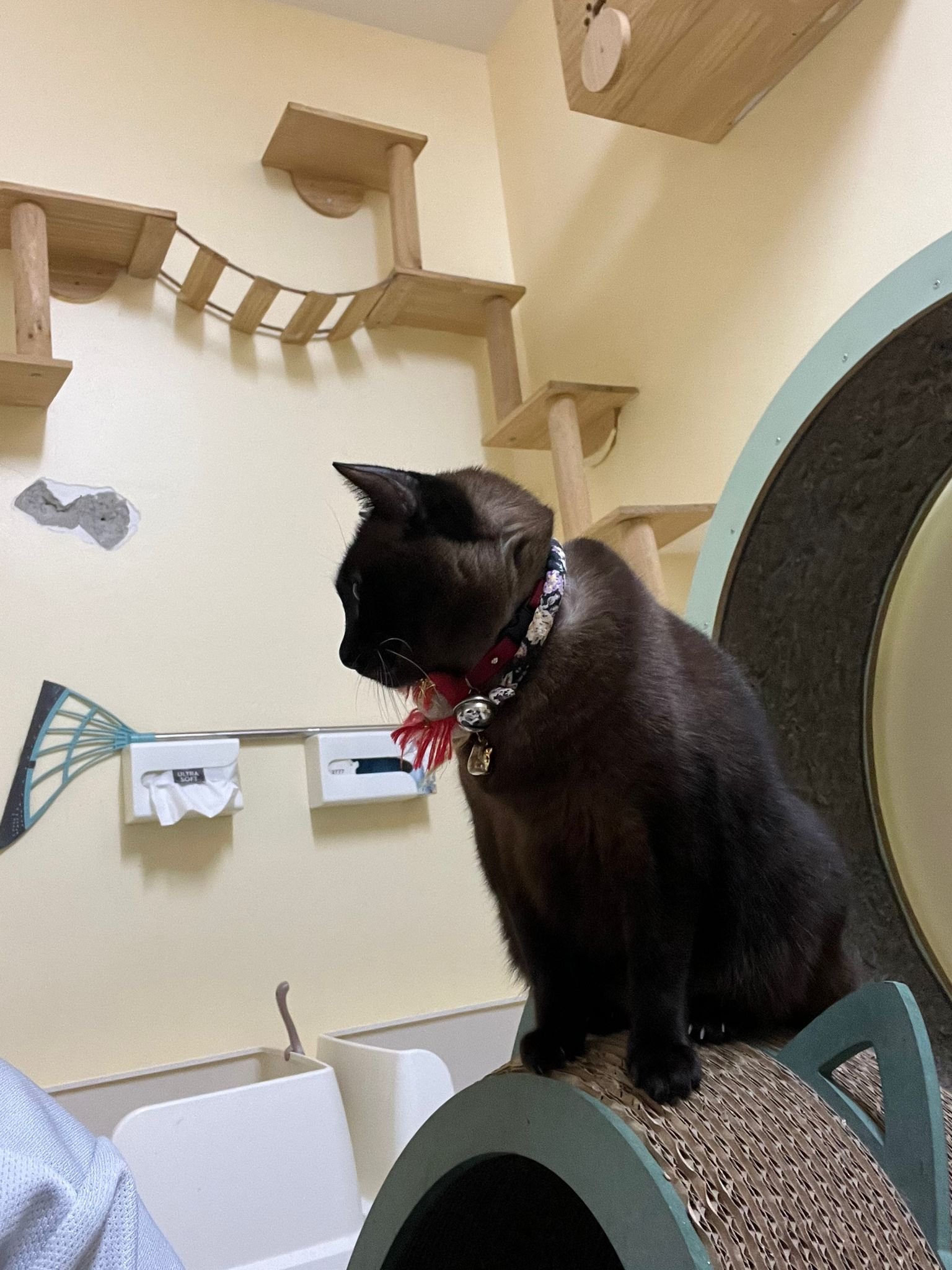 • confirmed fact; she can free roam whole 猫房 – neutral cat. No fights no provoke nothing – peaceful
