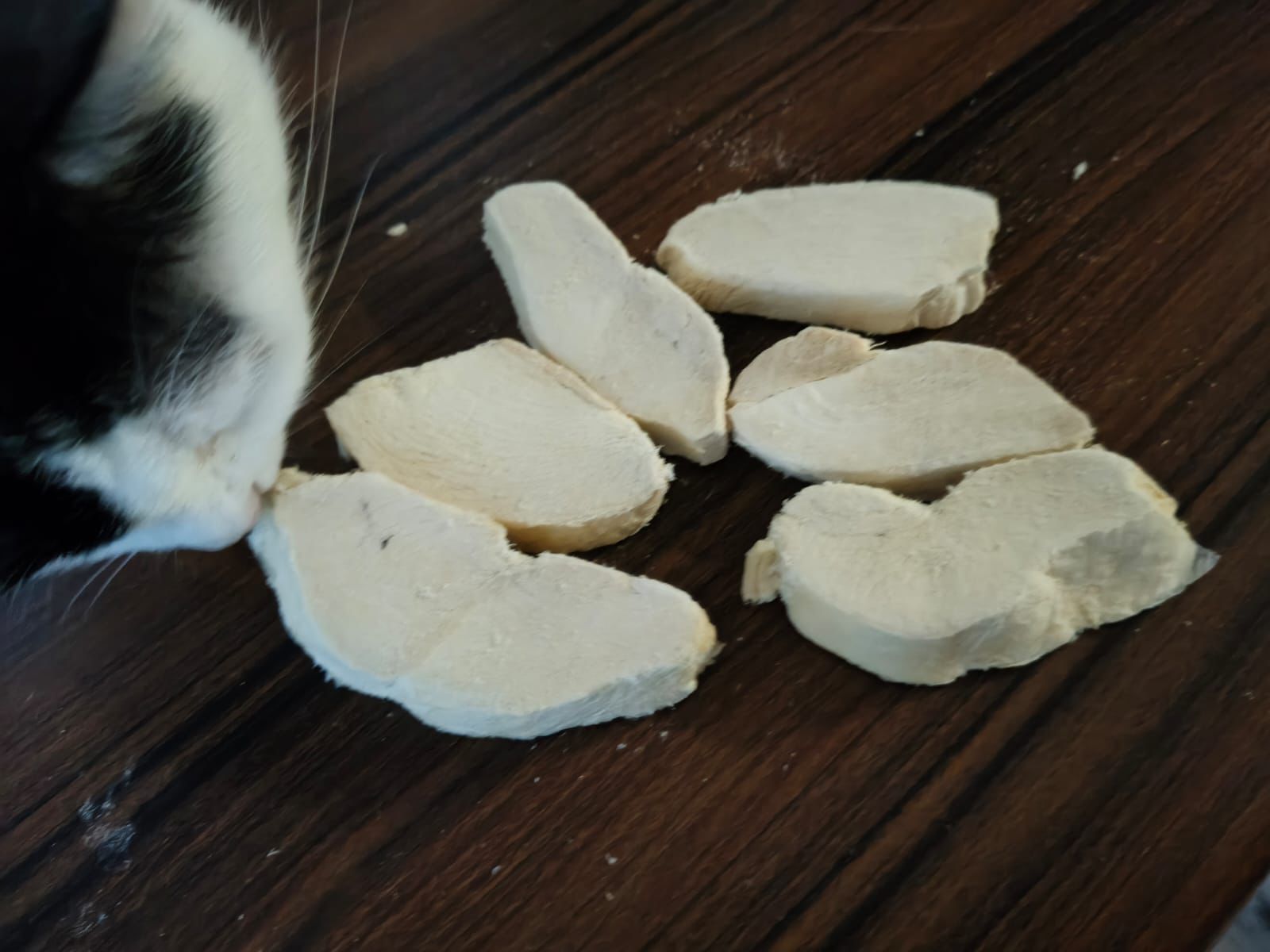 11.50pm: mmm give good for food chicken fillet treats: “Buddy, Jack, brownie, Bessie – give n will eat.”