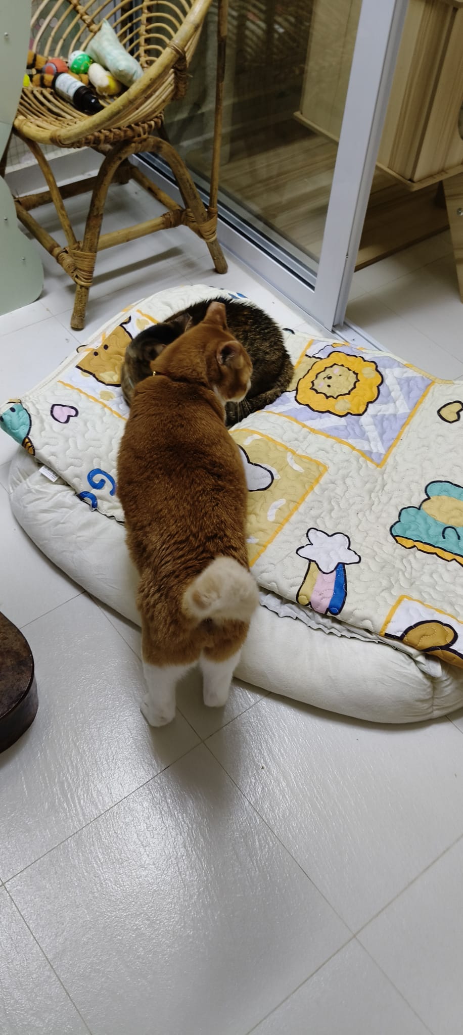 4.30pm+: sena and buddy still very loving will sit tgt on sofa. Sena groom gor gor