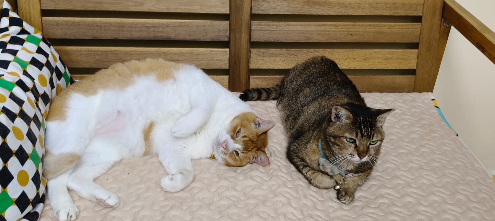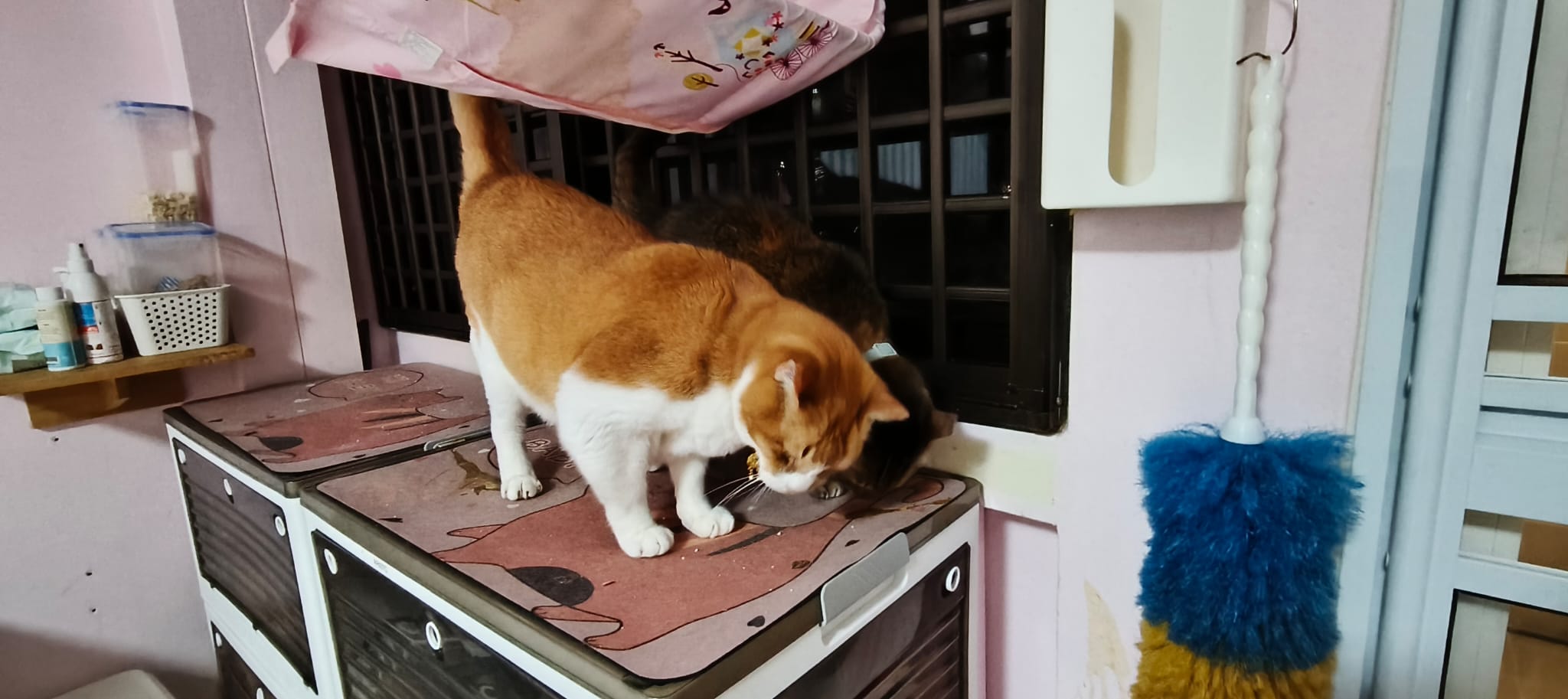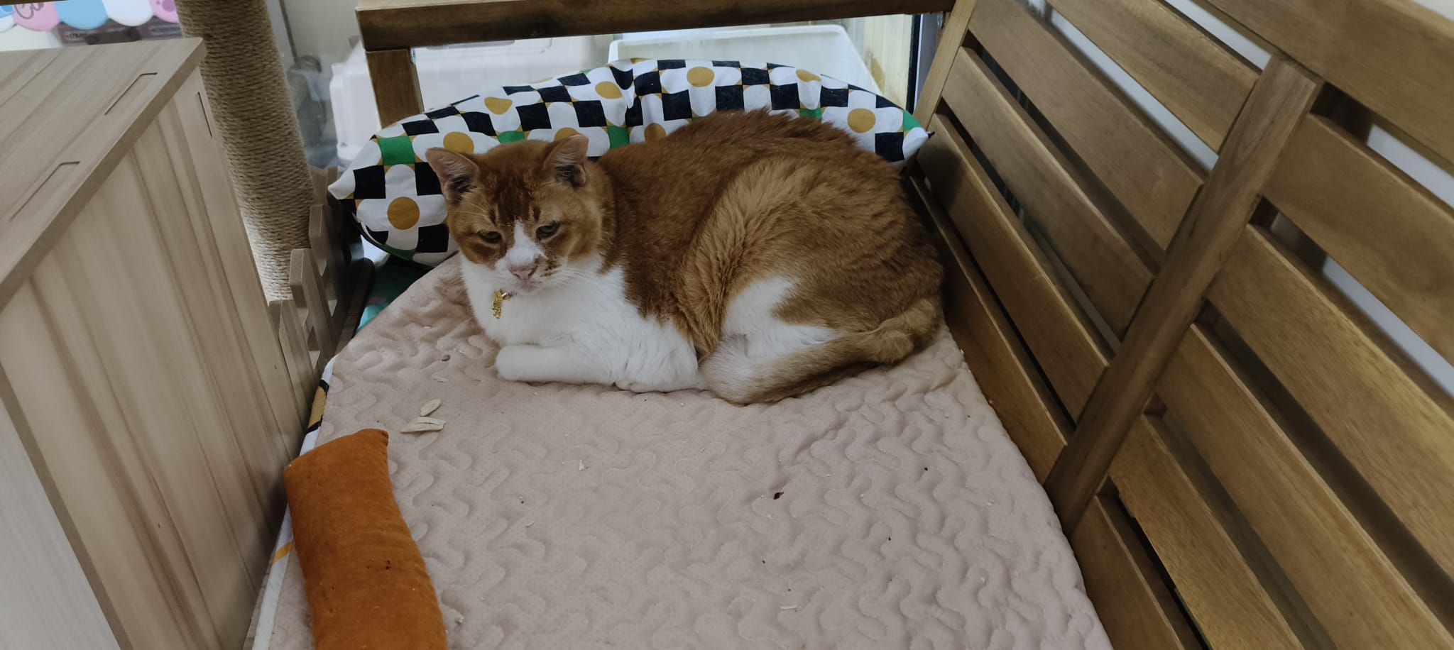 Bail him out from AVA on the date he is scheduled to be pts. I took him and Sena in and they r w me since then. Most pple want to adopt Buddy without Sena, it’s a no go cos they r extremely close to each other. Since now they had aged in 猫房 together, they will be up for separate E adoption only.