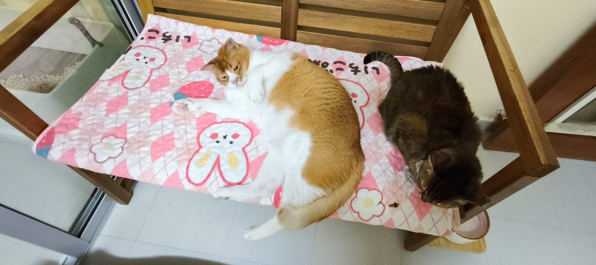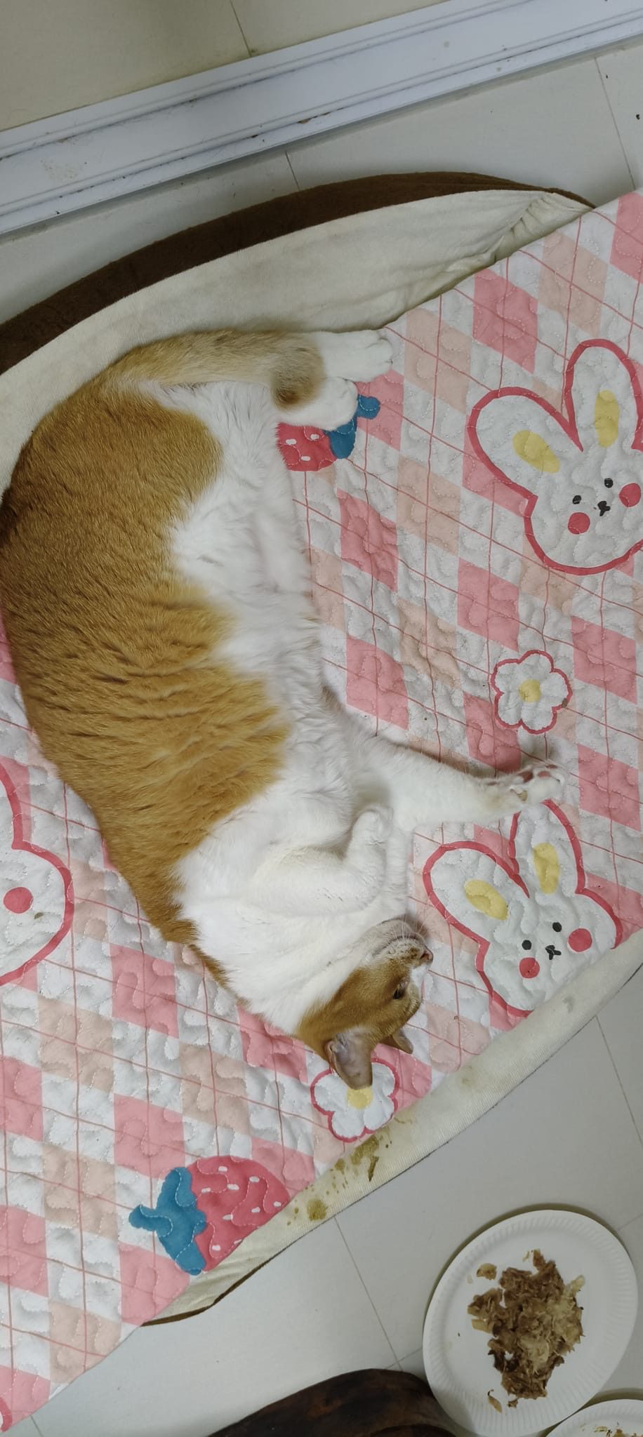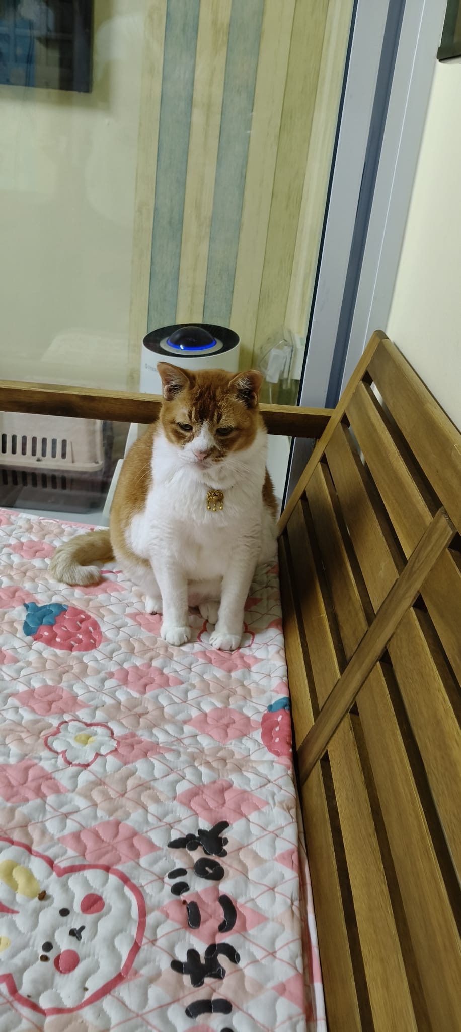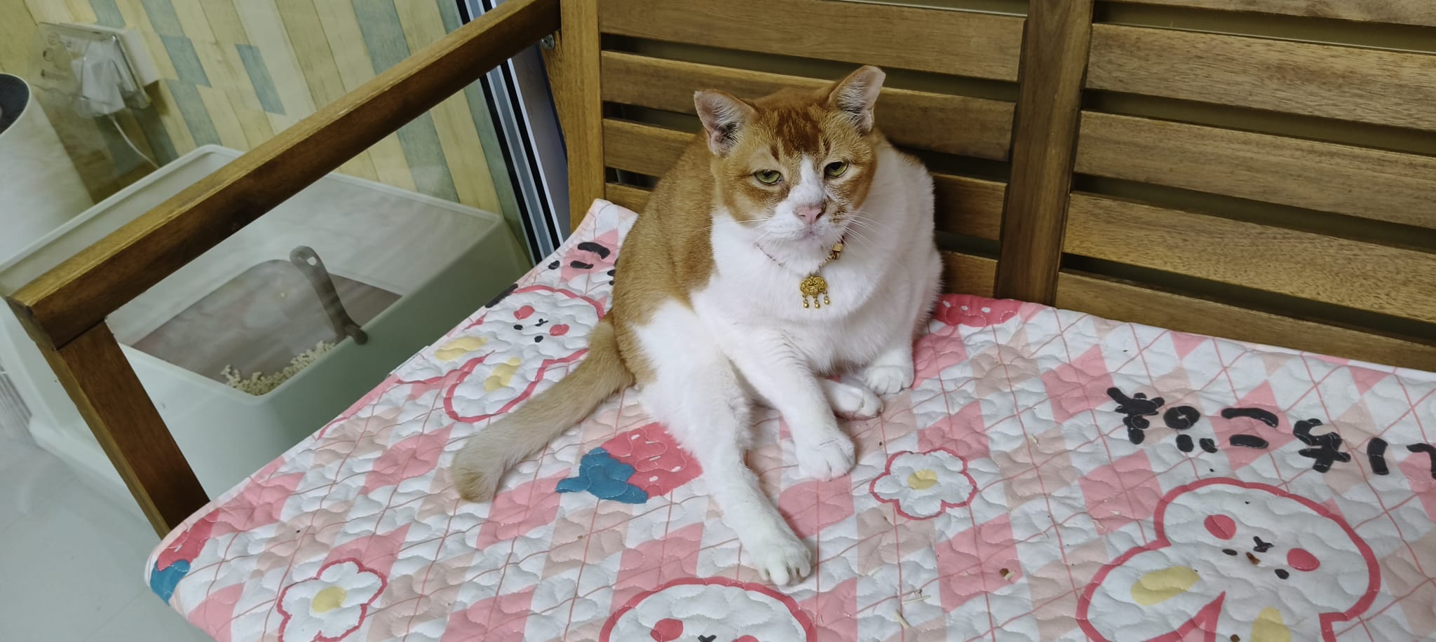 Morning: lay a towel mat on the big bed for him, he happy flop on it and I sayang him