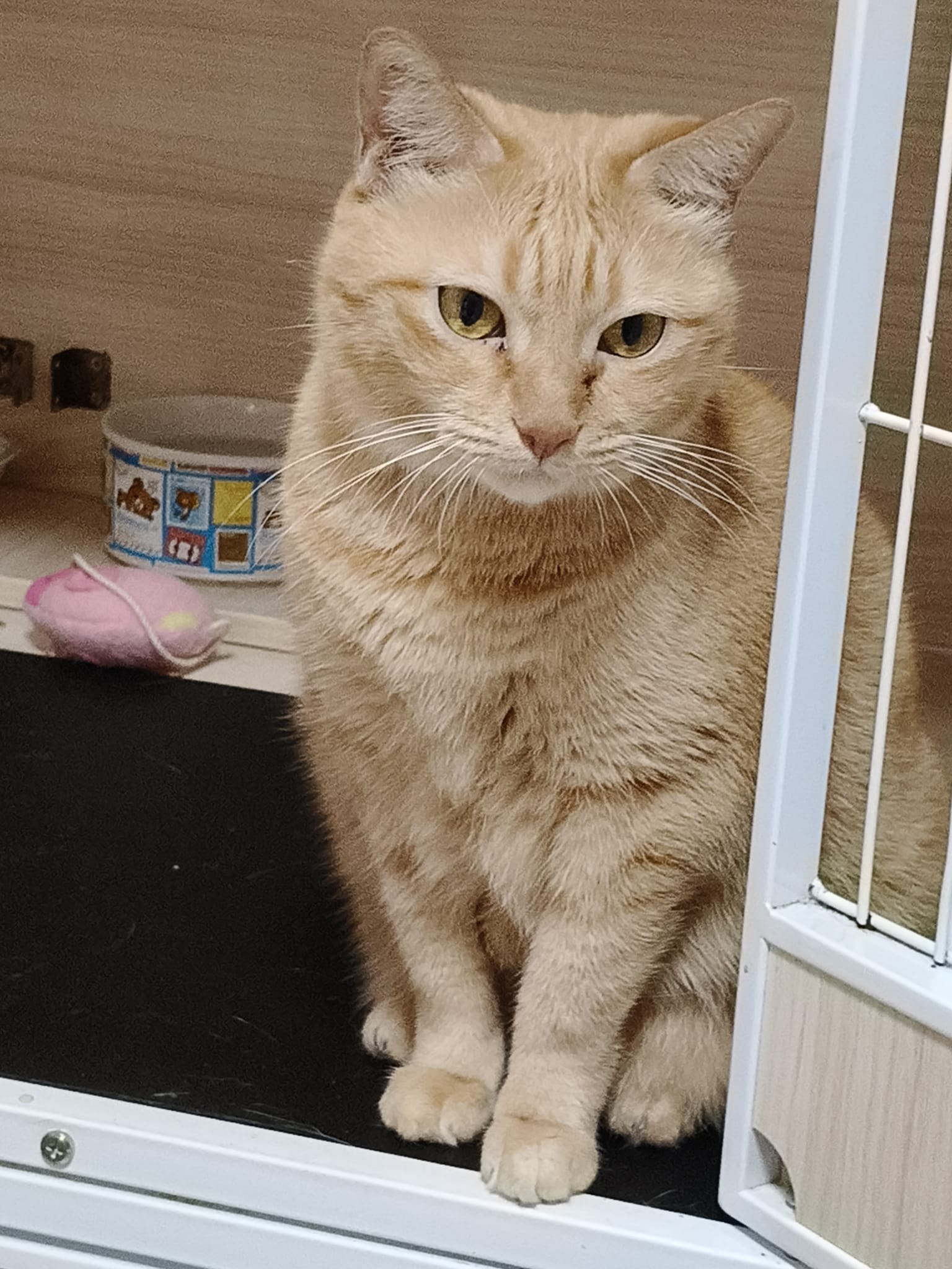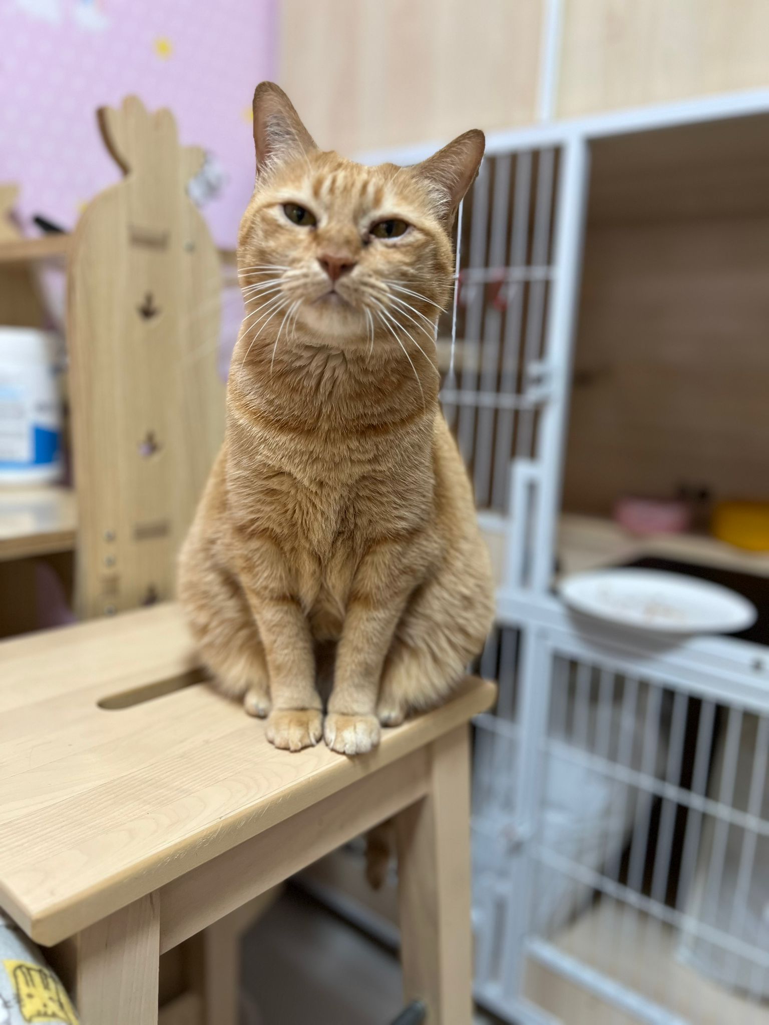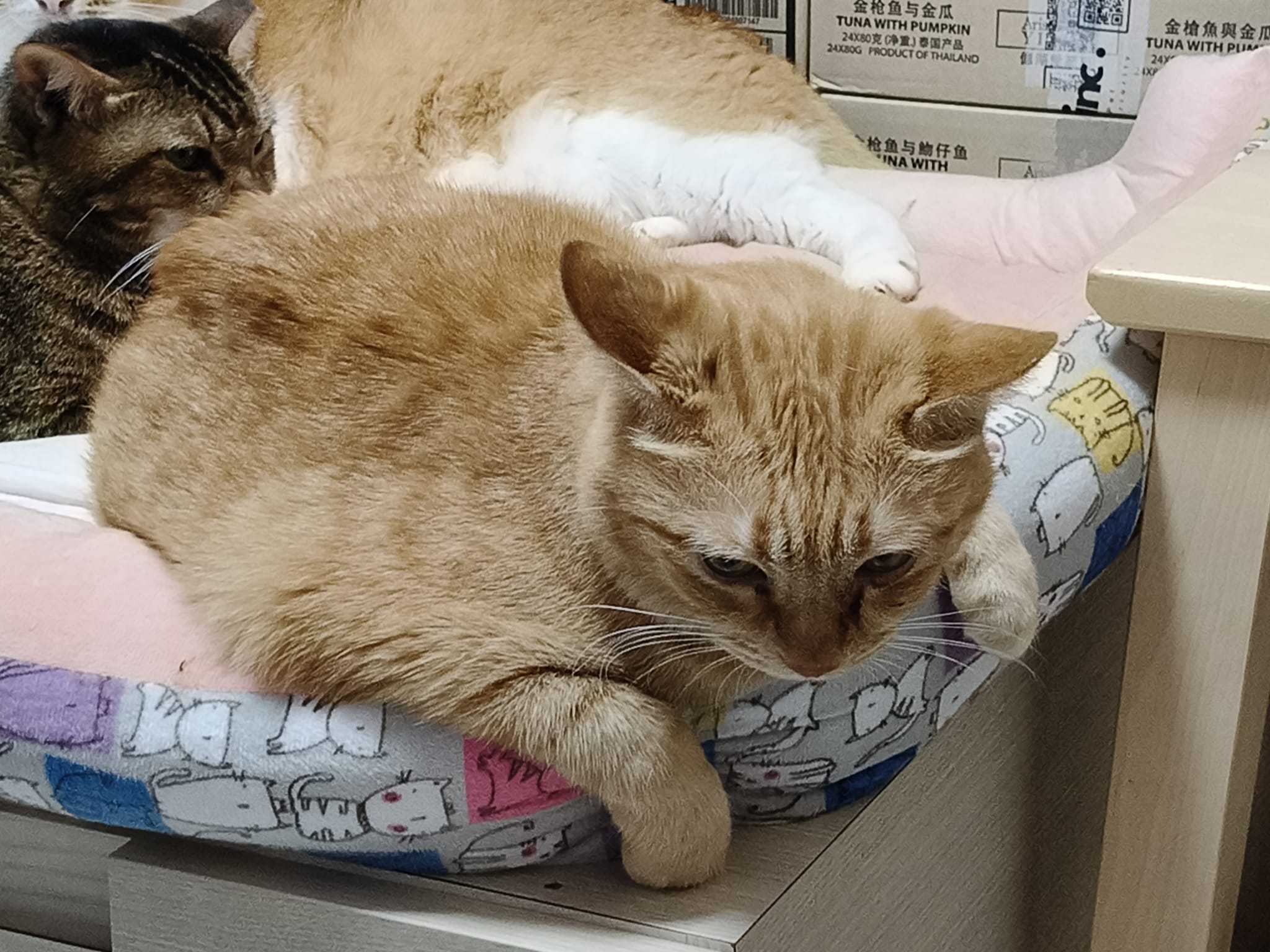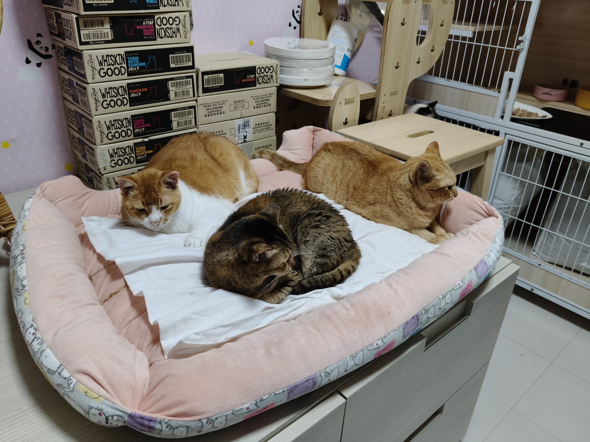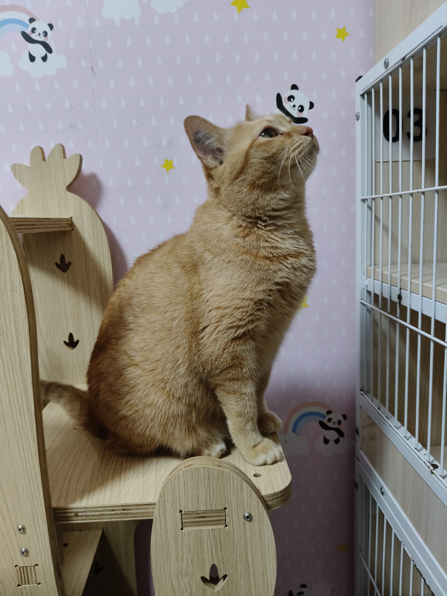 8am+-2.35pm: I’m a happy mao today. I stay in 猫房 for so long. Today all the cats staying in the food room for safety air reason. Cos new room need through and proper clean up first. I carried char to the cage and she had been there n quite ok w Teddy ard. boy didn’t disturb her as much cos so many of them in the room. She still active when it’s food time